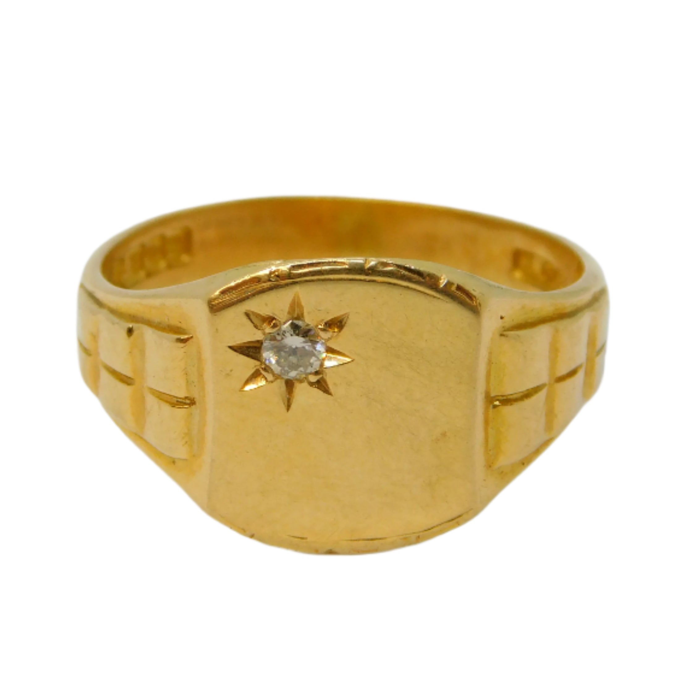 18ct Yellow Gold Star Set Diamond Signet Ring Vintage 1965 Birmingham