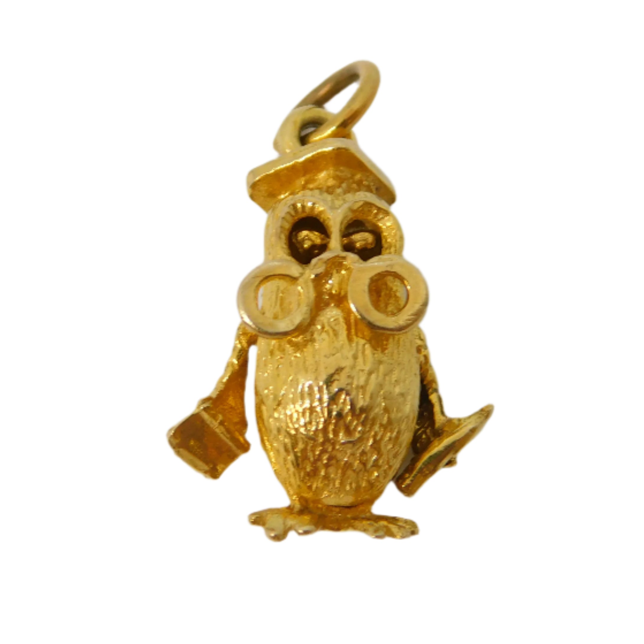 9ct Yellow Gold Wise Owl Articulated Charm Pendant Vintage 1973 Birmingham