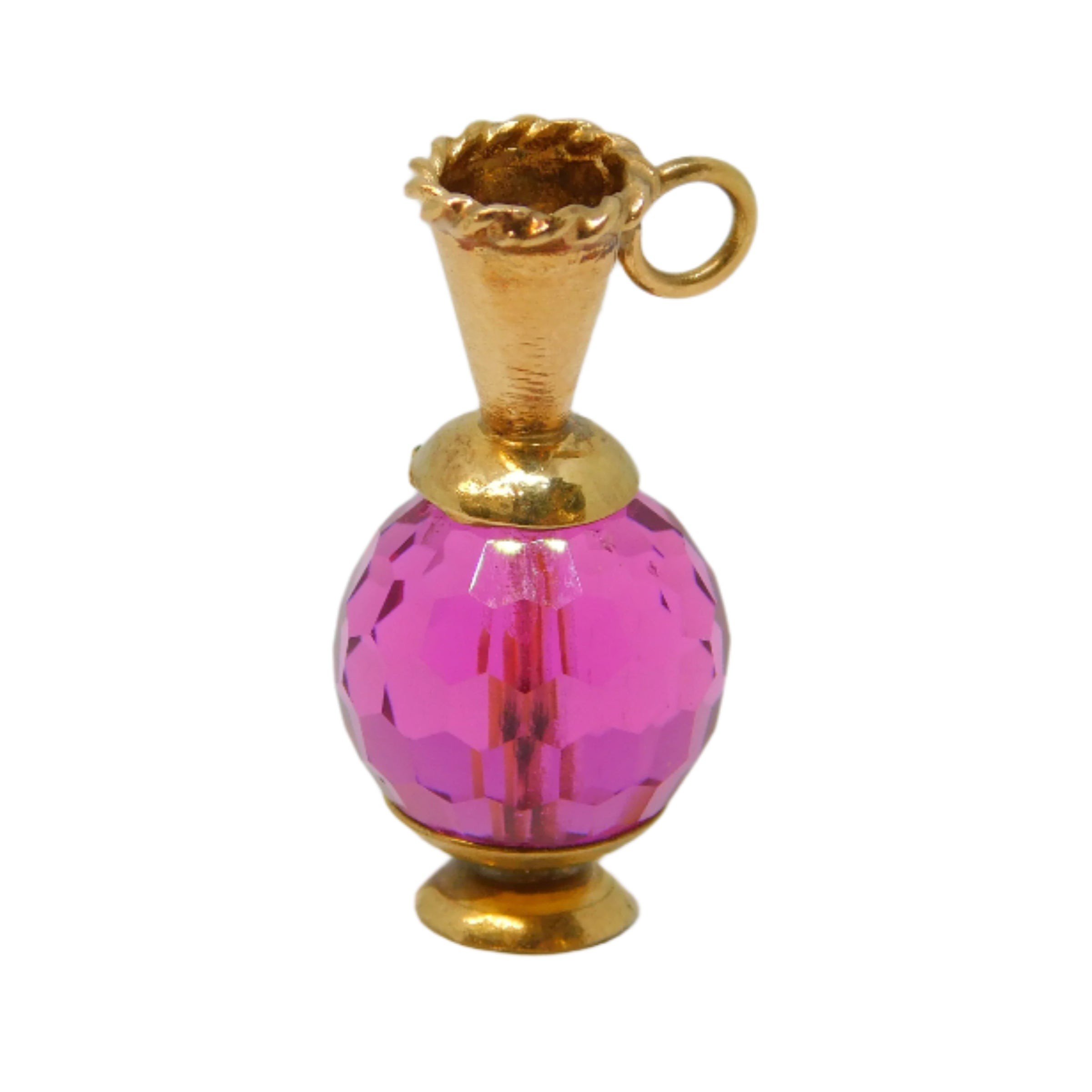 9ct Yellow Gold & Cut Pink Glass Wine Jug Charm Pendant Vintage 1973 London