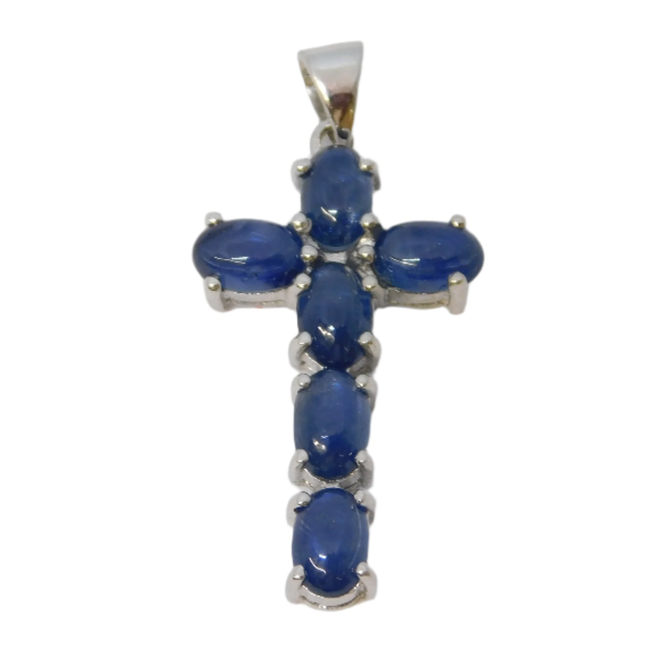 9ct White Gold Cabochon Cut Sapphire Cross Pendant Vintage c1990 Birmingham