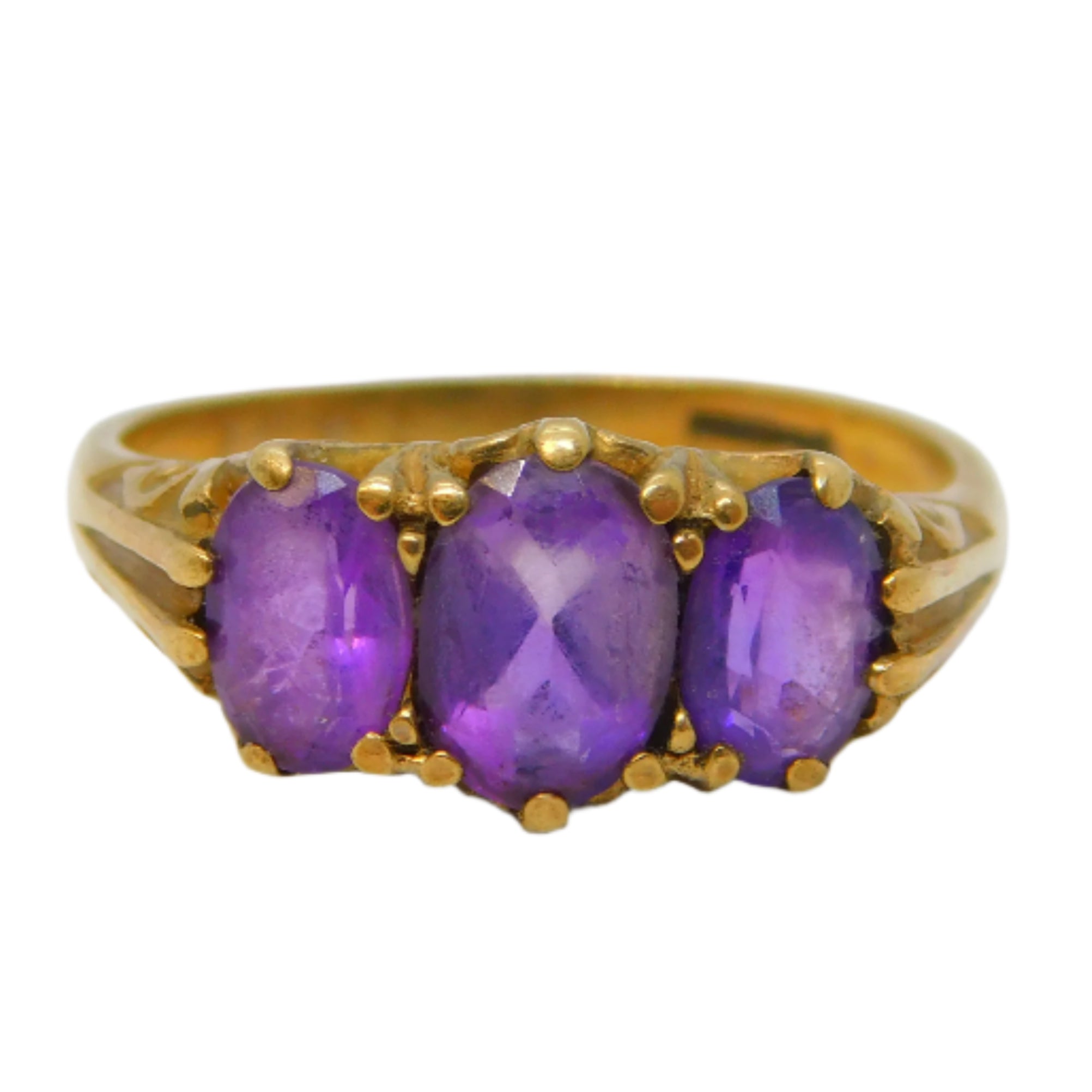 9ct Yellow Gold Three-Stone Graduating Boat Ring Vintage c1970