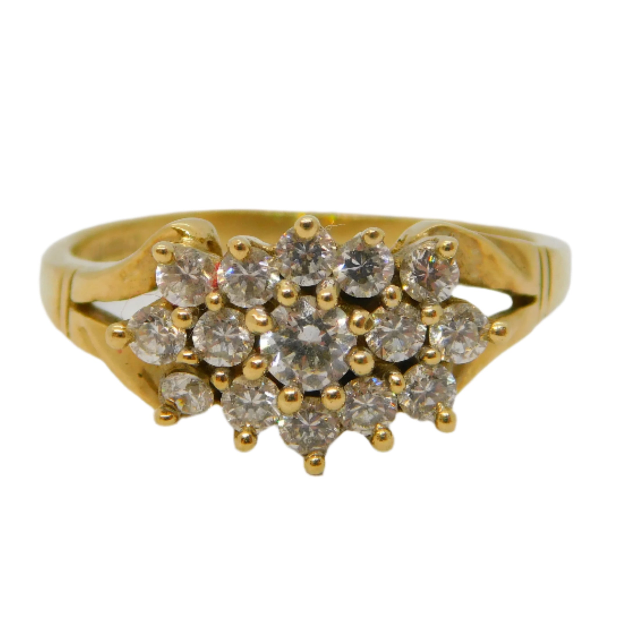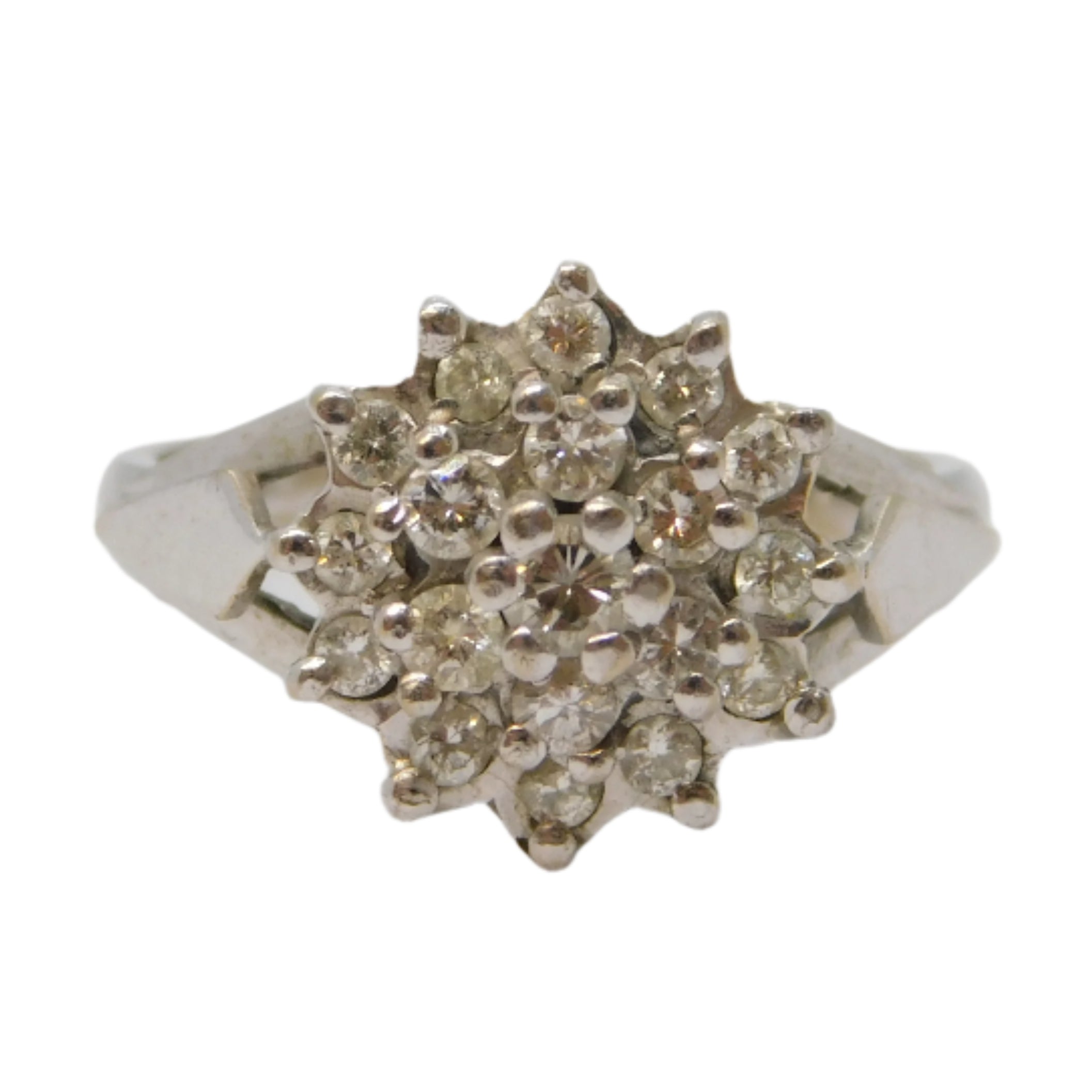 18ct White Gold 18-Stone Diamond Floral Cluster Ring Vintage 1975 London