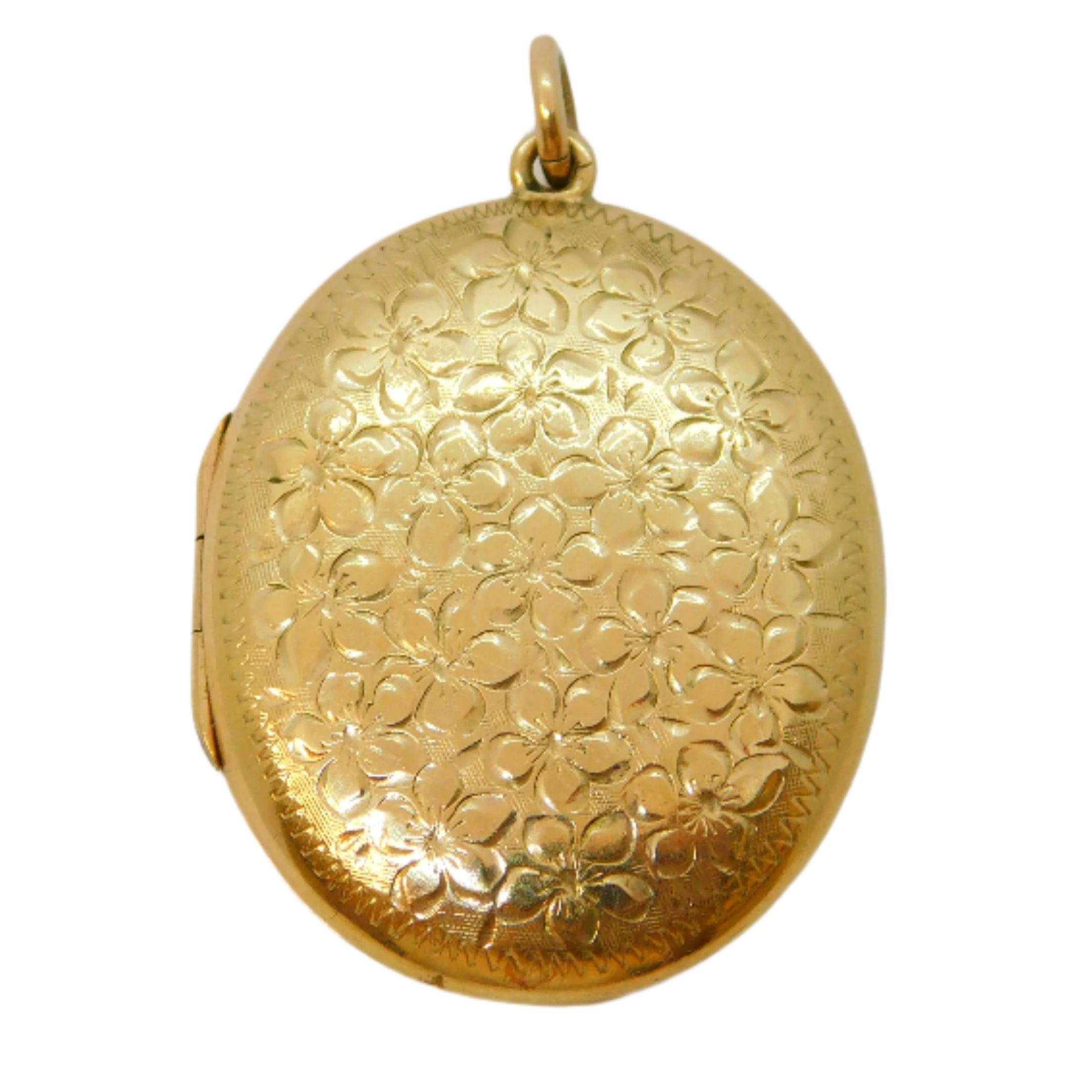 9ct Yellow Gold Floral Pattern Sweetheart Locket Pendant Vintage 1994 Birmingham