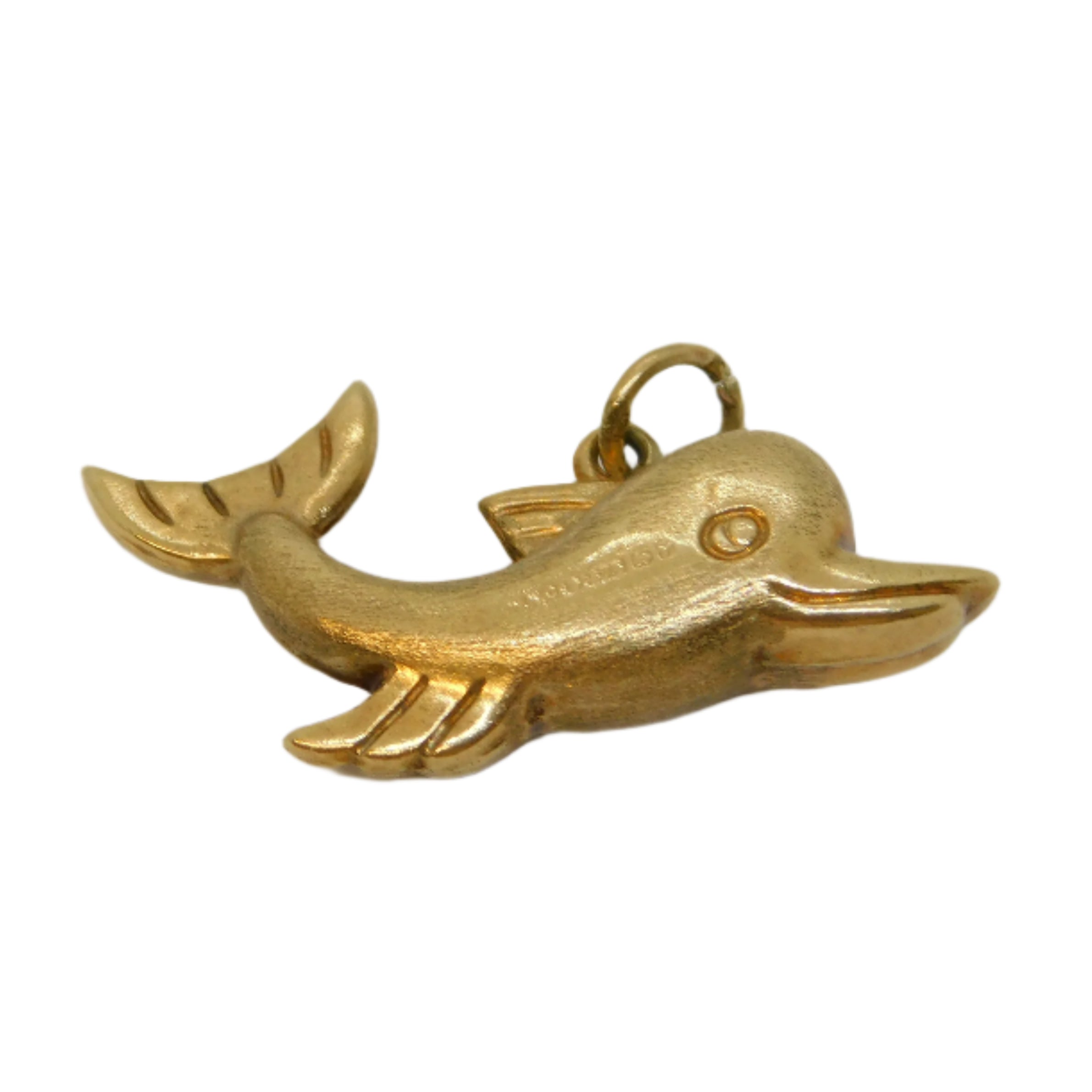 9ct Yellow Gold Happy Dolphin Charm Pendant Vintage 1973 Birmingham