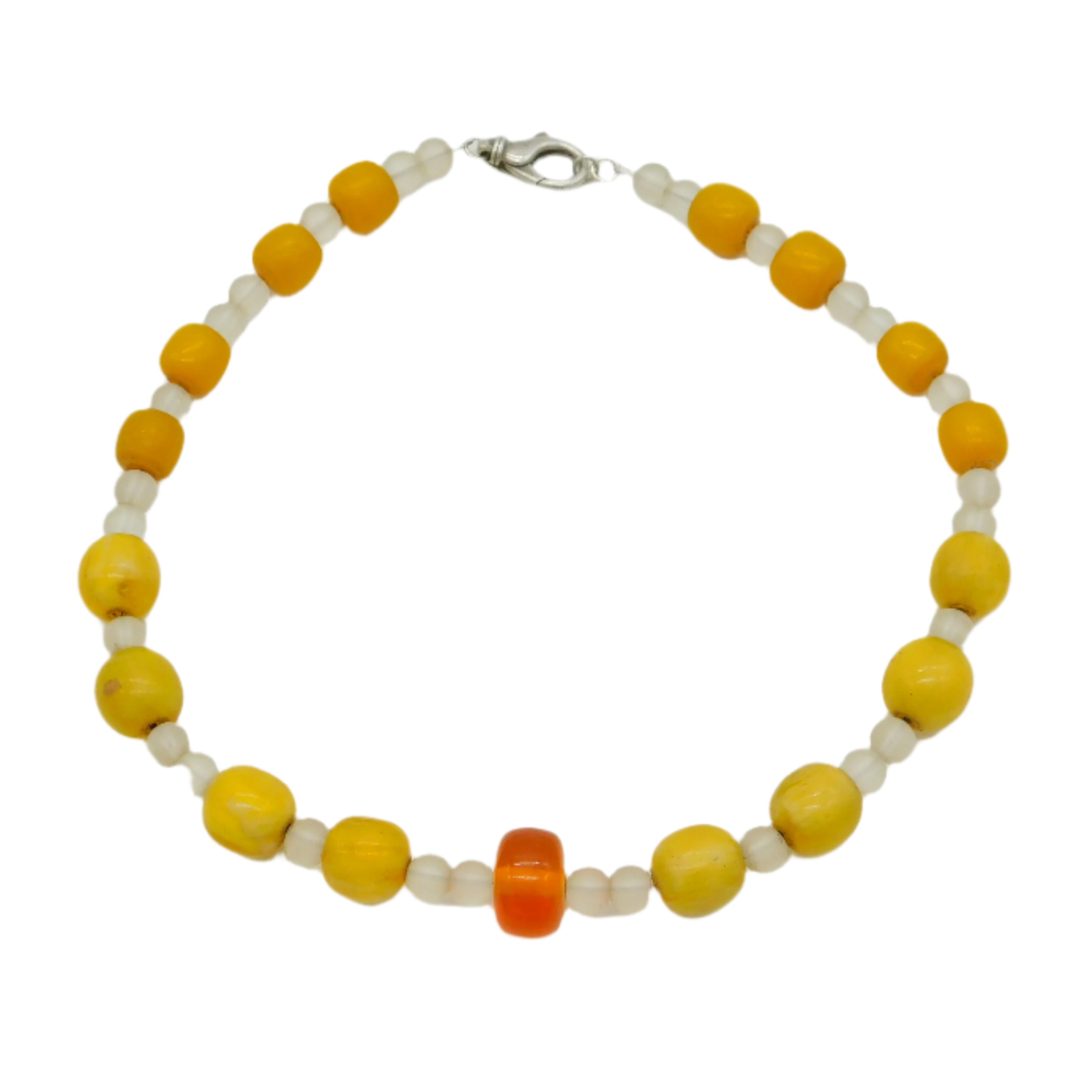 Sterling Silver, Amber & Crystal Beaded Necklace Vintage c1970 48cm