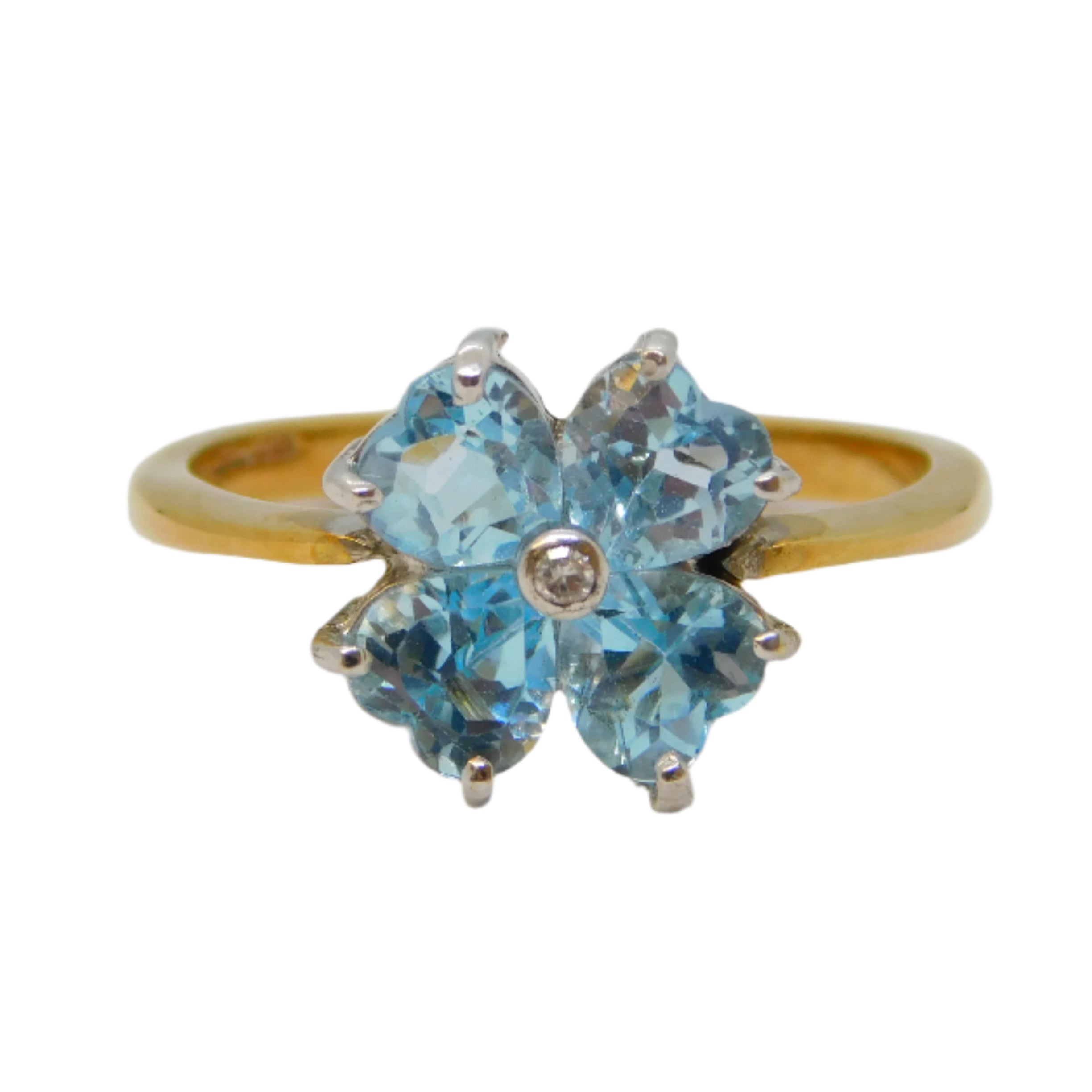 9ct Yellow Gold, Aquamarine, Diamond Heart Cut Ring Vintage 1994 Birmingham