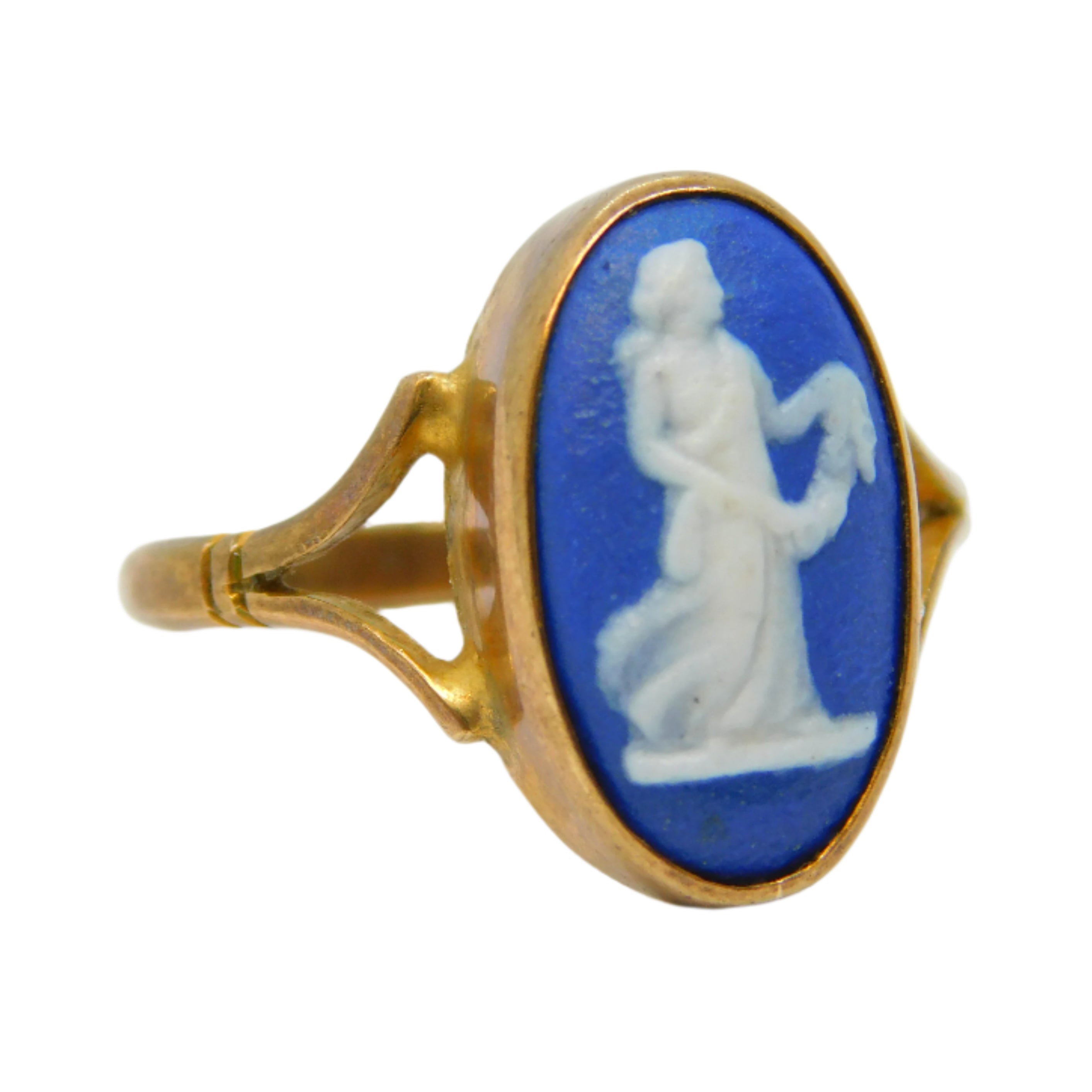 9ct Yellow Gold Wedgwood Athena Cameo Set Ring Vintage 1978 Birmingham
