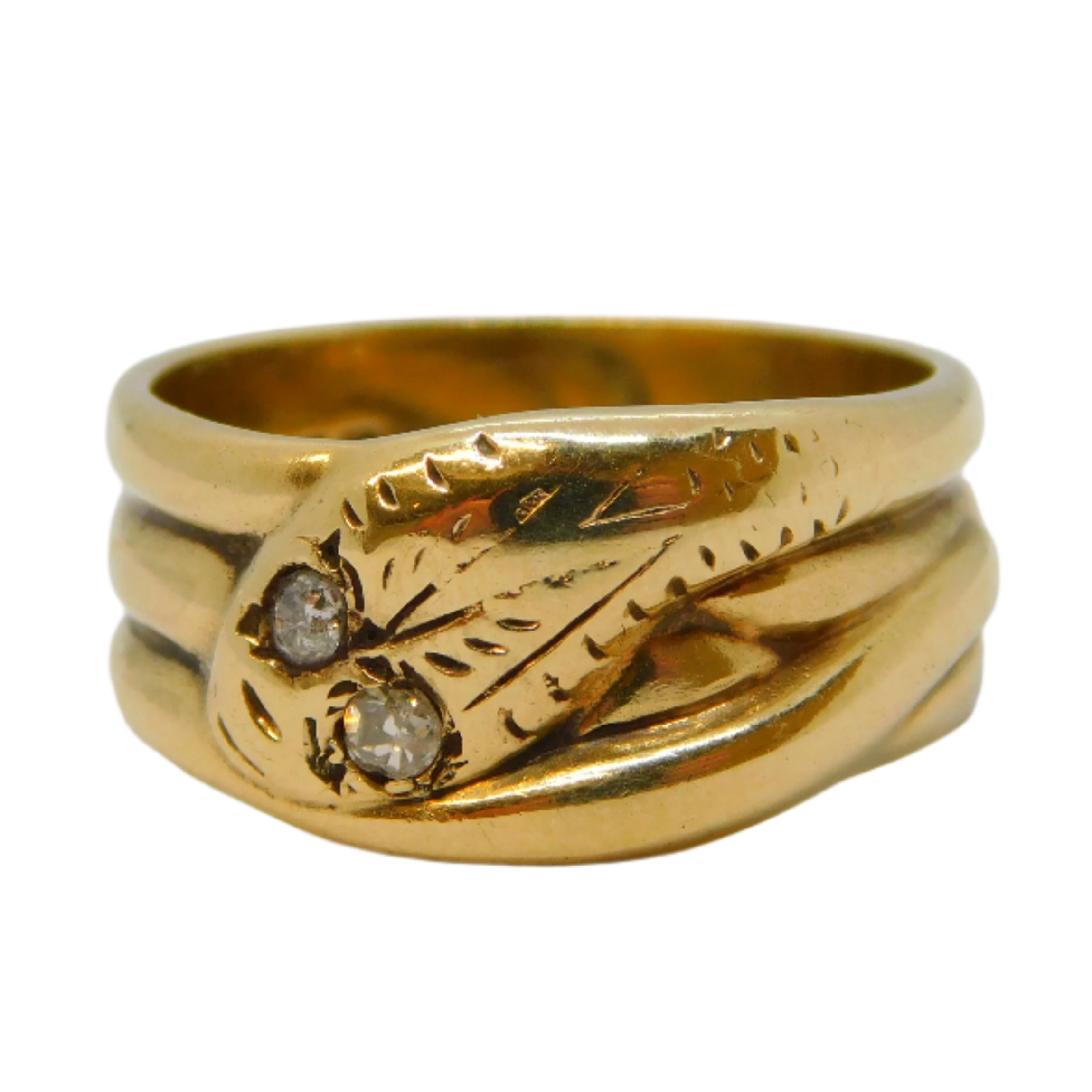 9ct Yellow Gold 0.1ct Diamond Snake Serpent Ring Vintage 1967 Birmingham