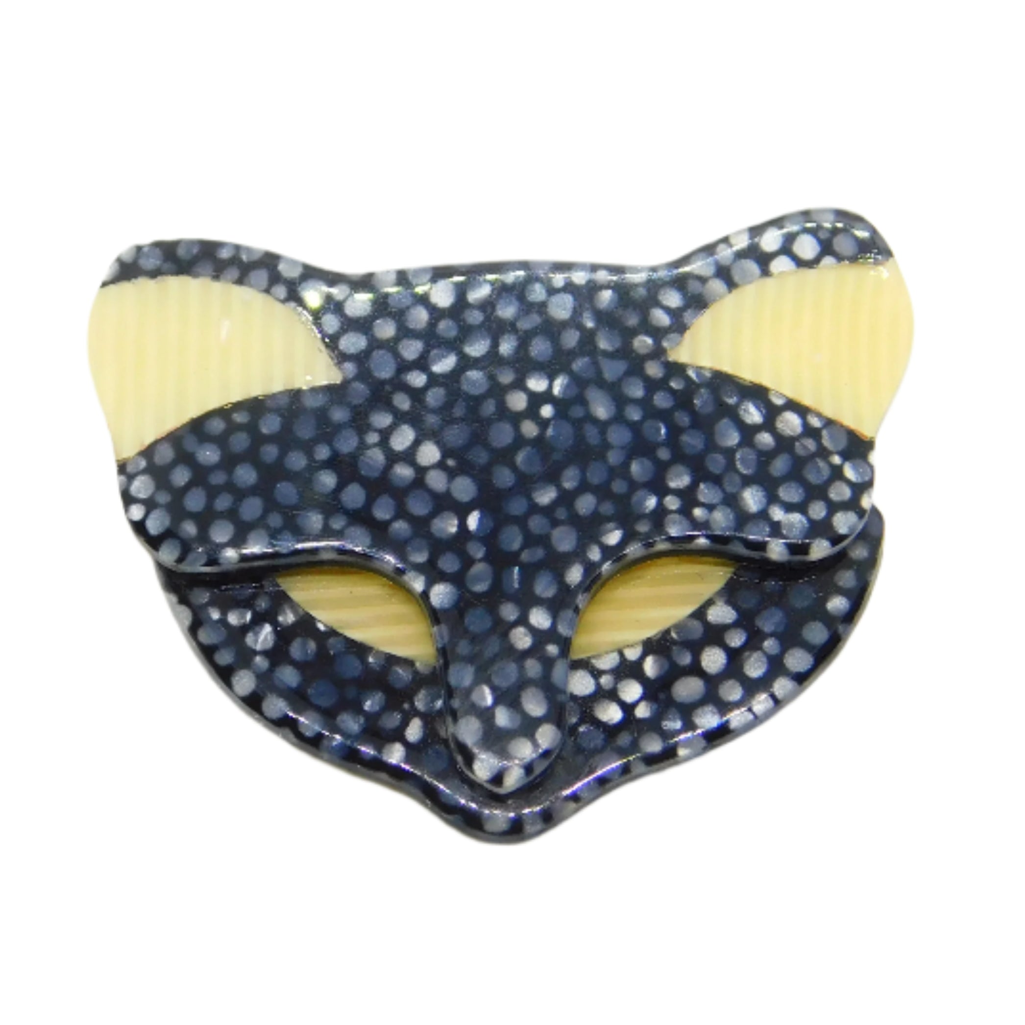 Lea Stein Paris Early Plastic Cat Face Mask Stylistic Brooch Vintage c1950