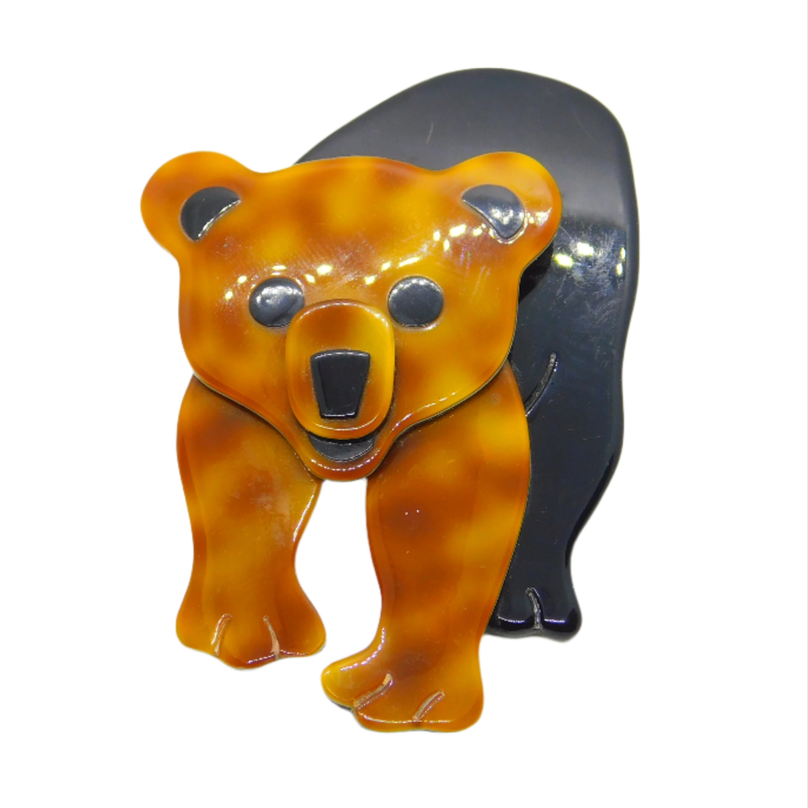 Lea Stein Paris Early Plastic Stylistic Bear Form Brooch Pin Vintage c1950