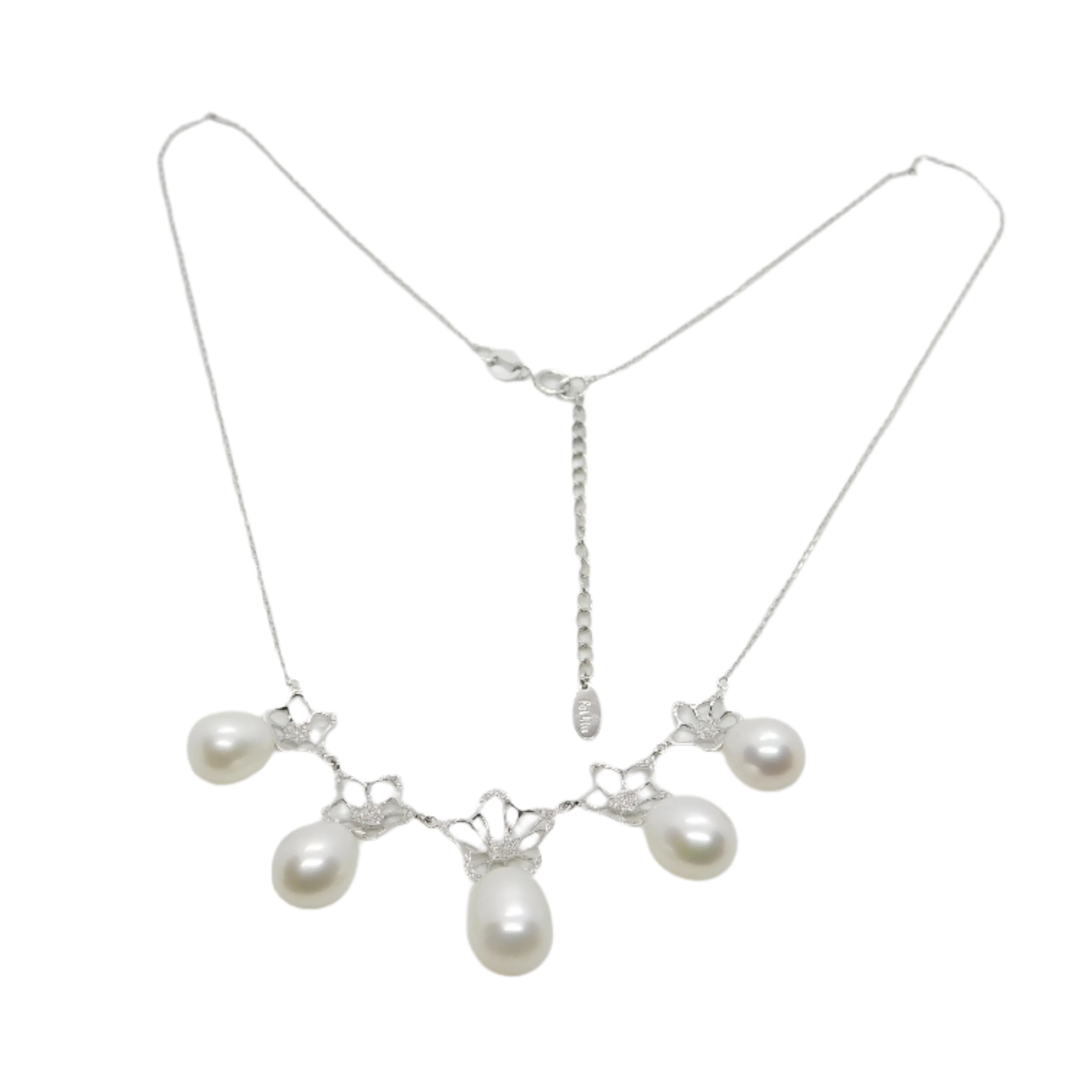 Fei Leu 18ct White Gold, Diamond & Cultured Pearl Floral Necklace Vintage c2000