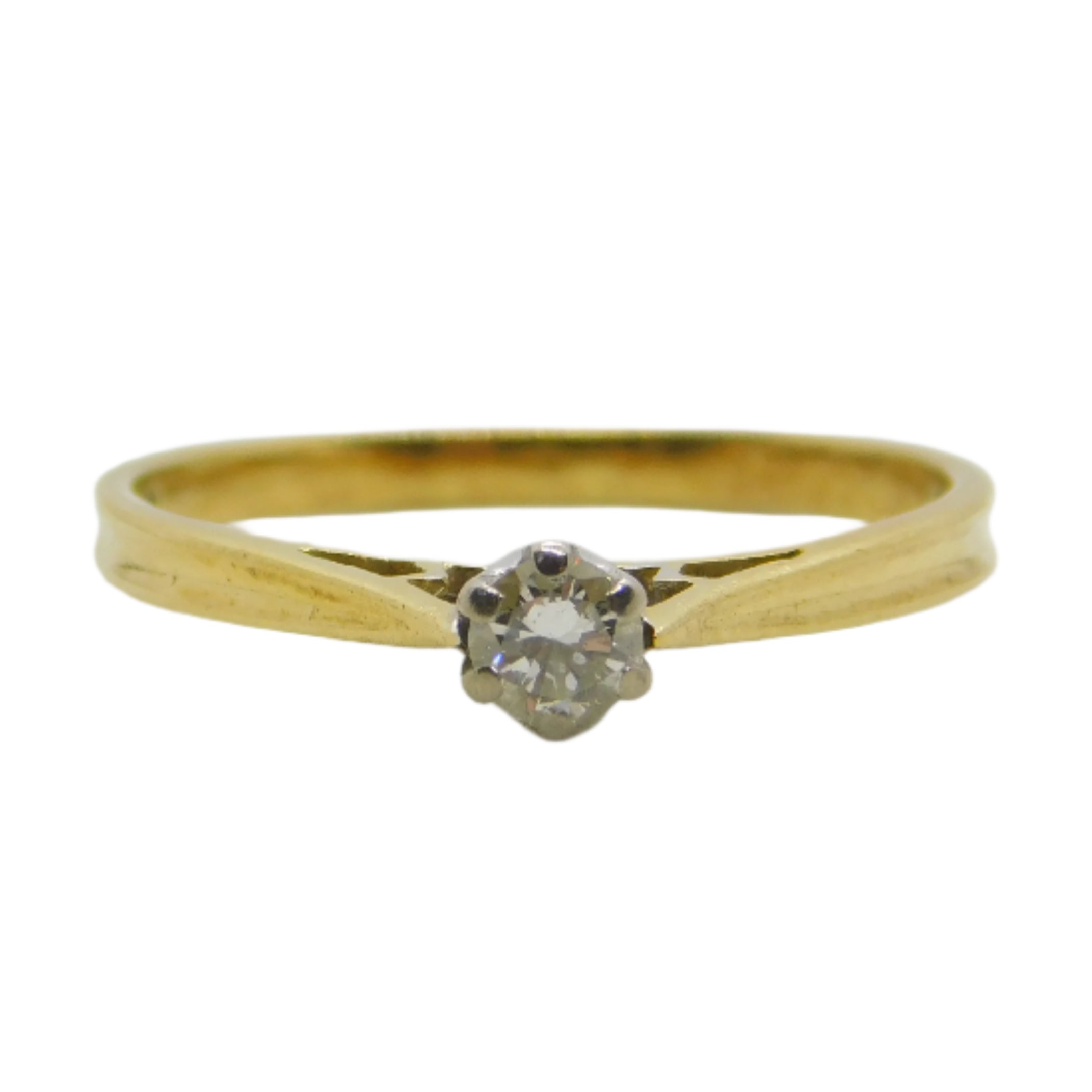18ct Yellow Gold & 0.1ct Diamond Solitaire Ring Vintage 1983 London
