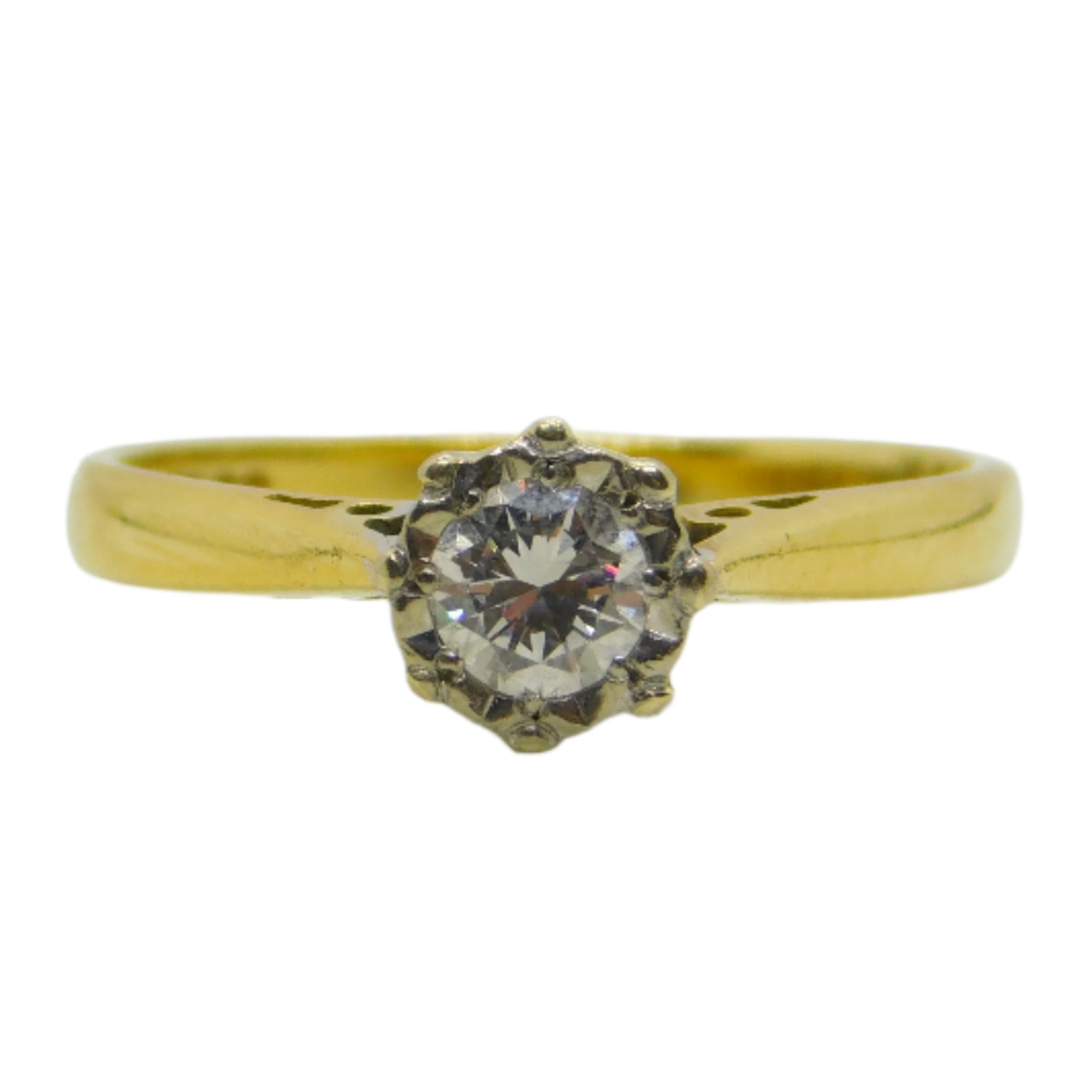 18ct Yellow Gold & 0.25ct Brilliant Cut Diamond Solitaire Ring Vintage 1992 Birmingham
