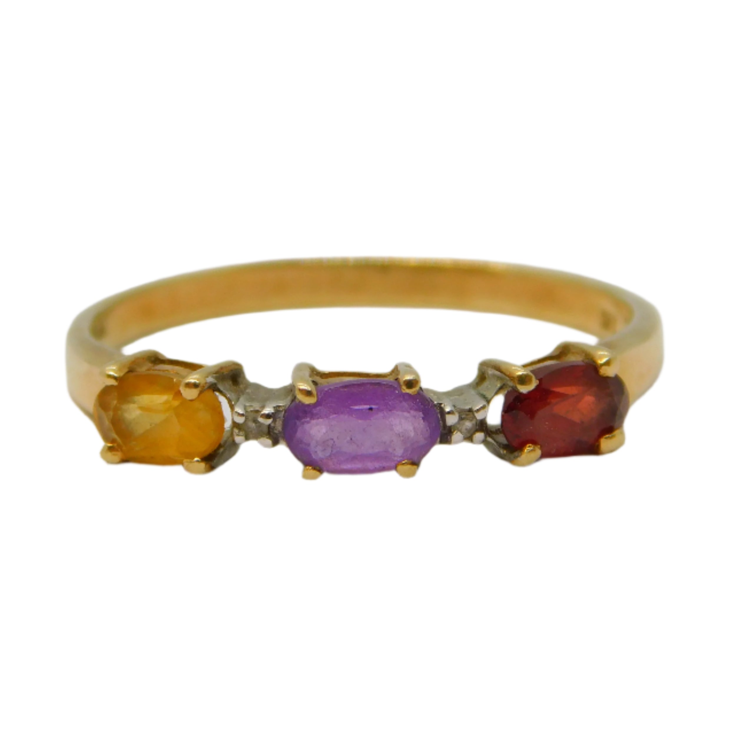 9ct Yellow Gold, Garnet, Amethyst, Citrine, Diamond Dress Ring Vintage 1996 London