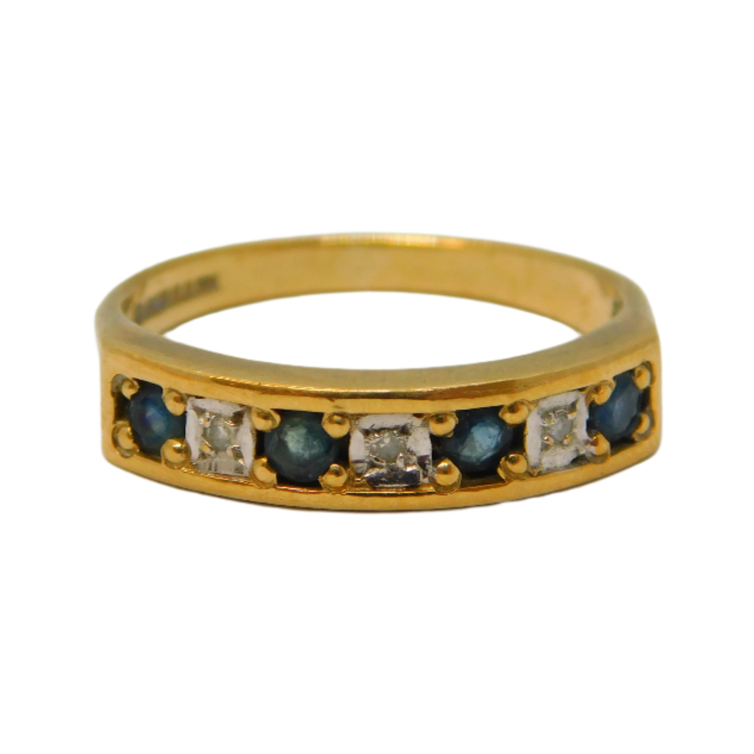 9ct Yellow Gold, Sapphire & Diamond Half-Eternity Ring Vintage 1994 Birmingham