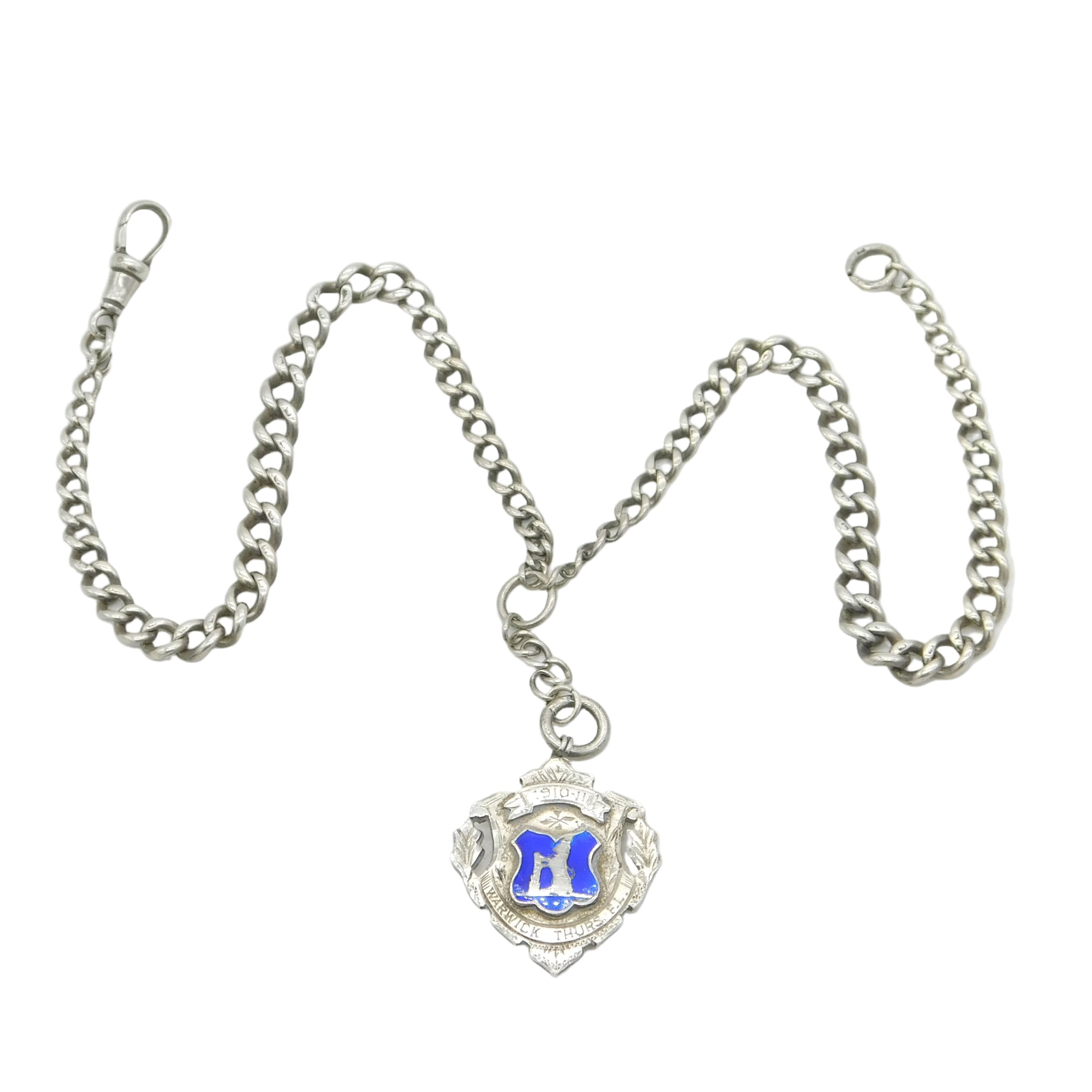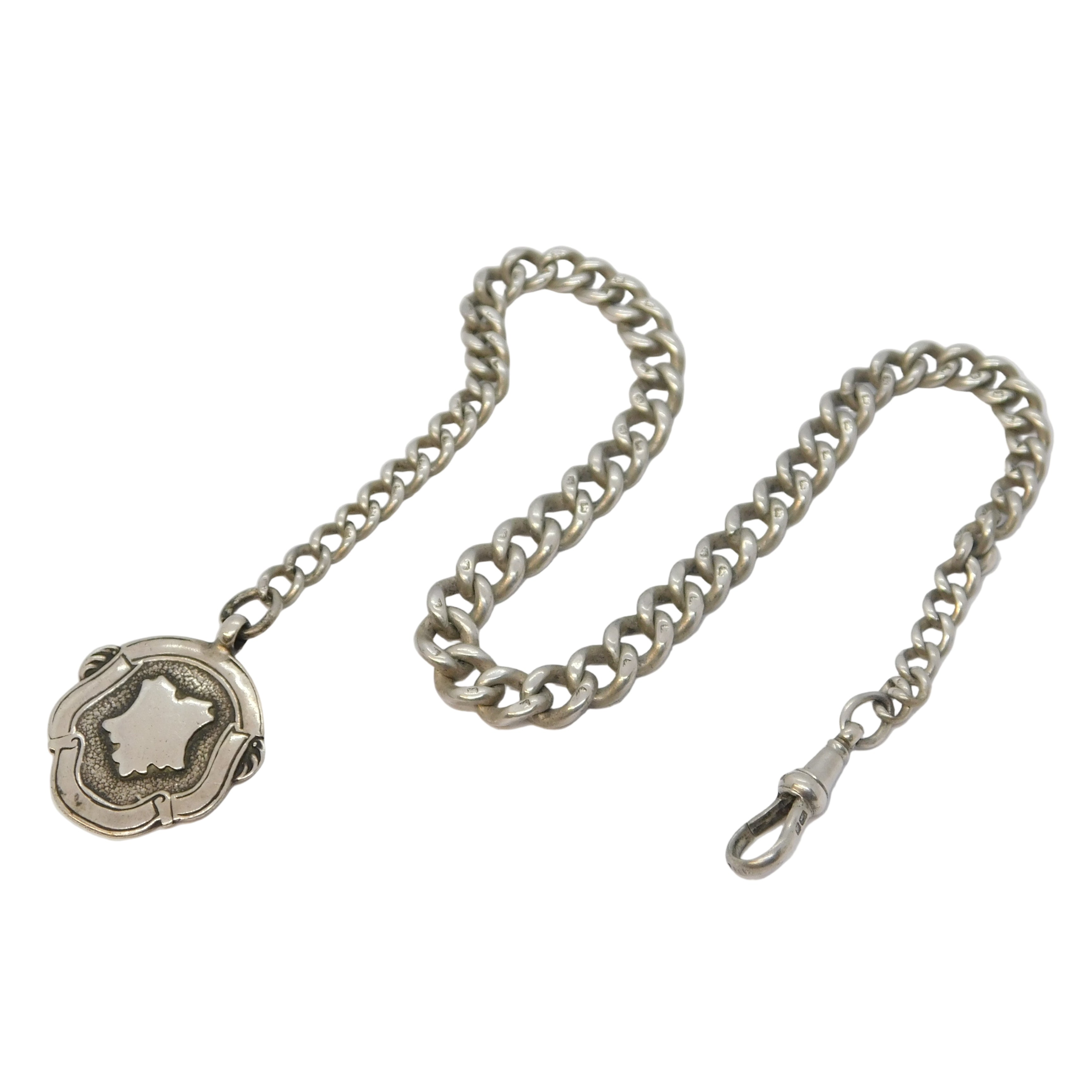 Edwardian Sterling Silver Graduating Albert Watch Chain & Fob Antique 1910 Birmingham