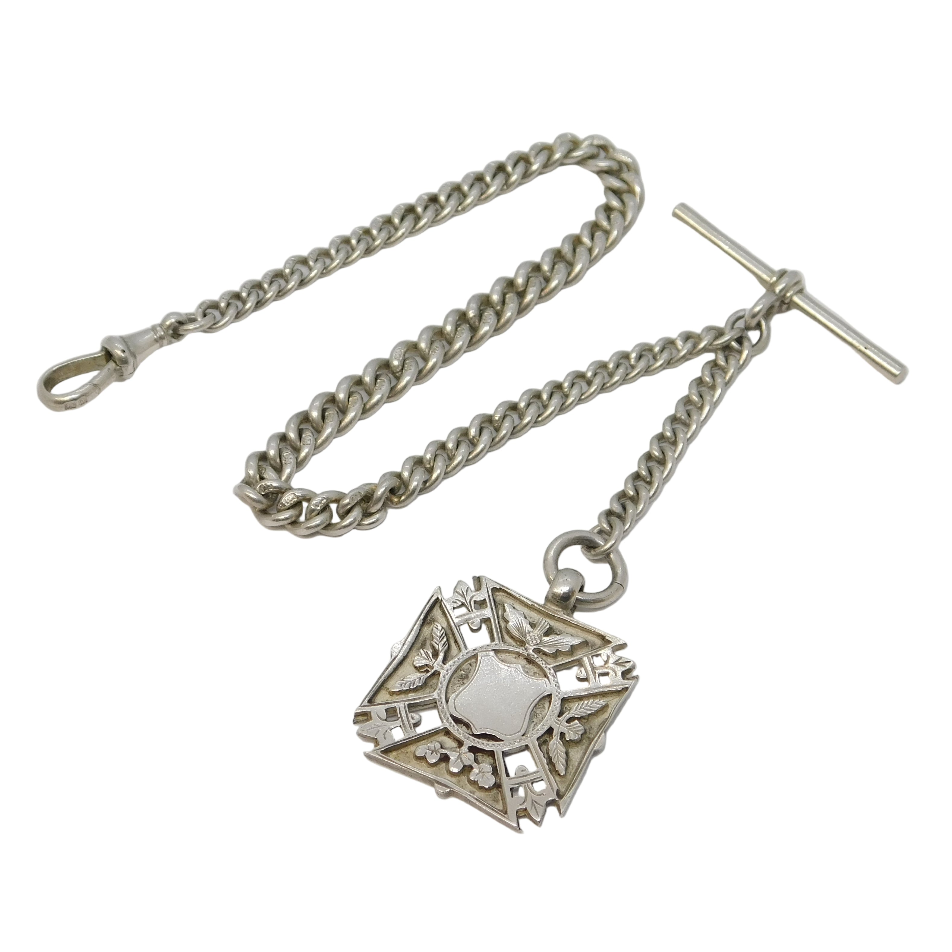 Victorian Sterling Silver Albert Watch Chain & Coin Fob Antique c1890