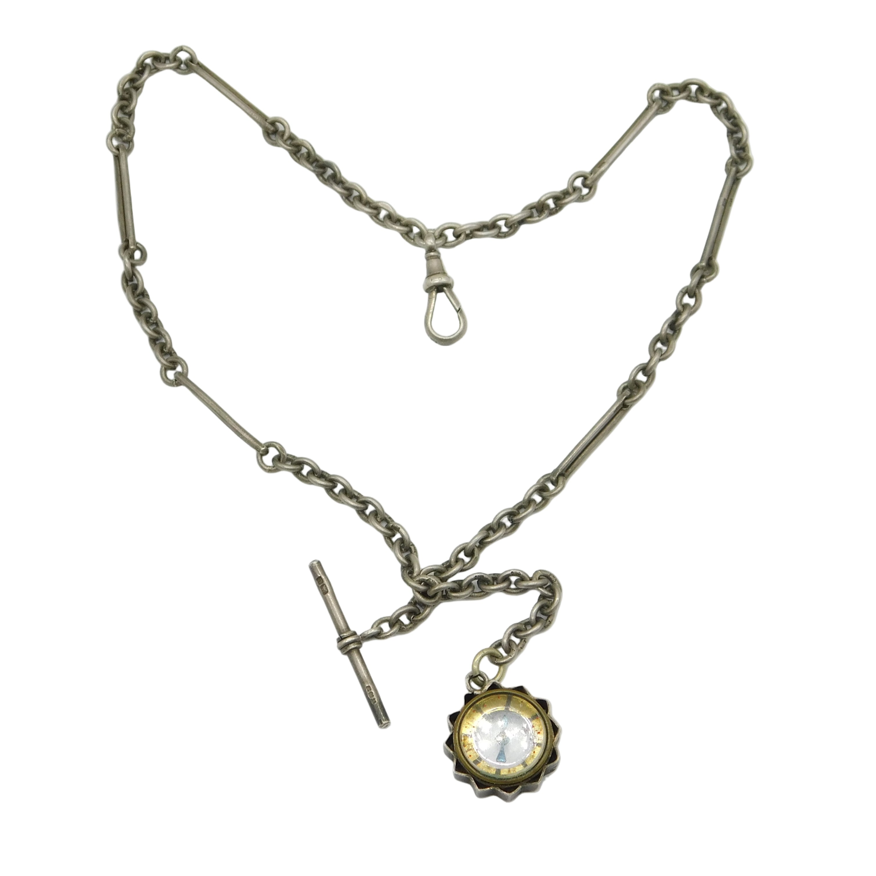 Victorian Sterling Silver Trombone Albert Watch Chain, Compass Antique 1894 London