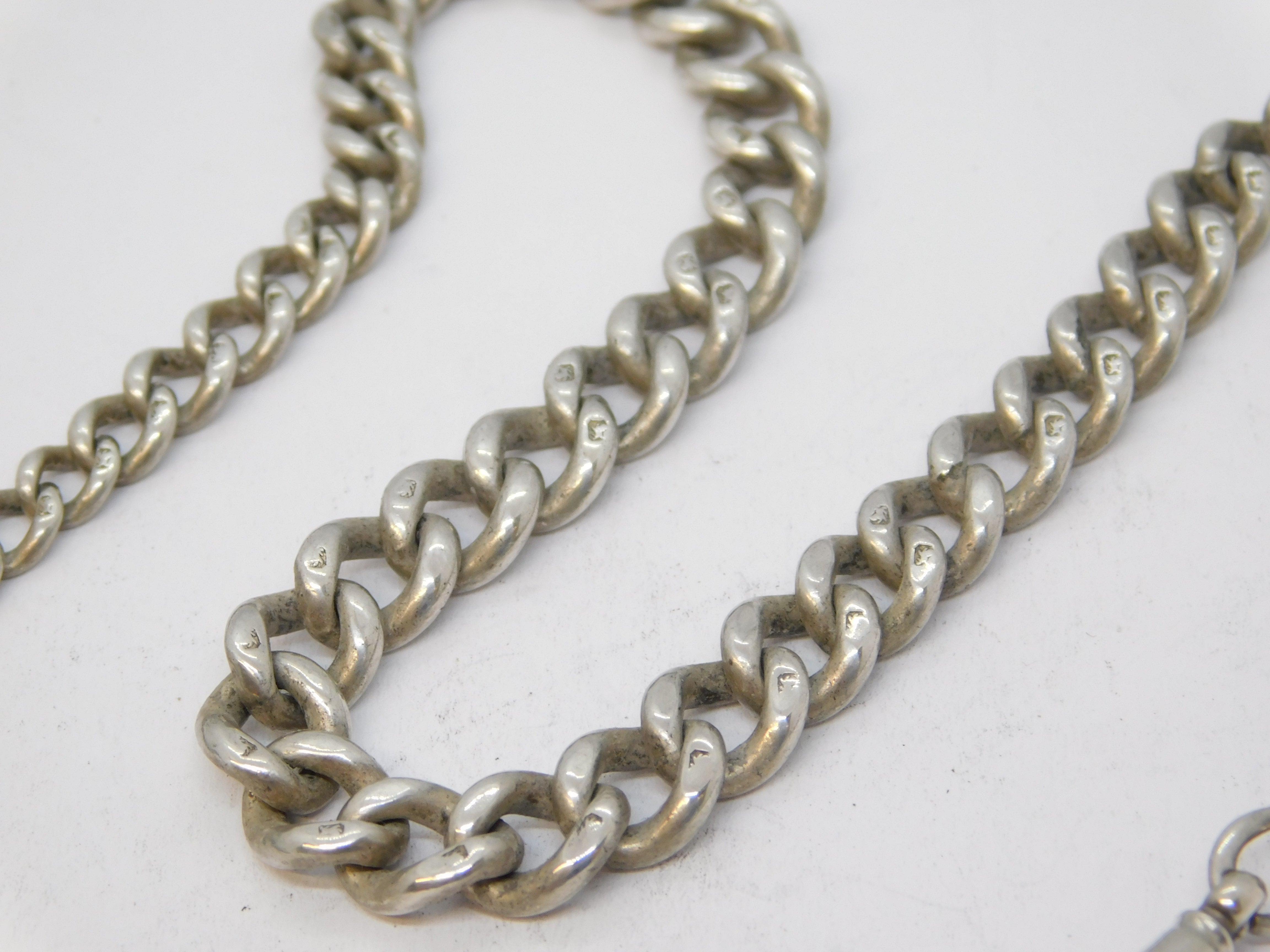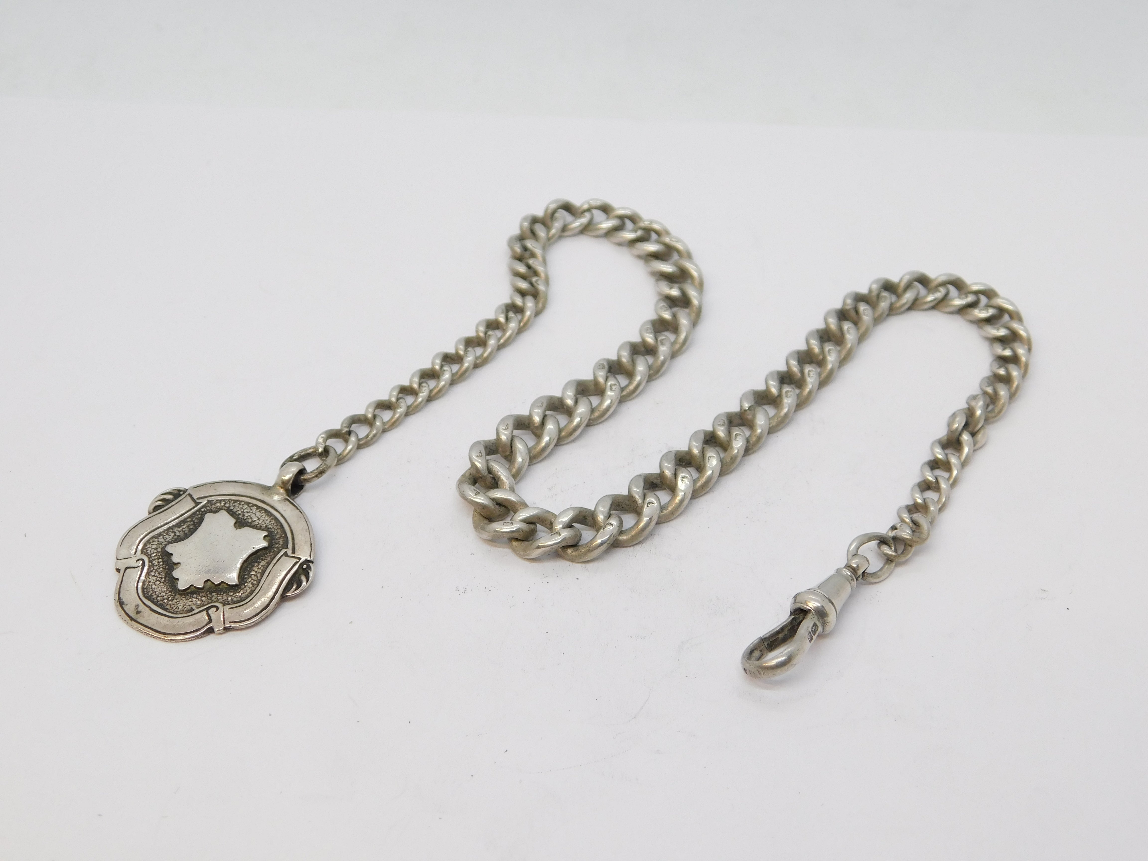 Edwardian Sterling Silver Graduating Watch Chain & Fob Antique 1902 Chester