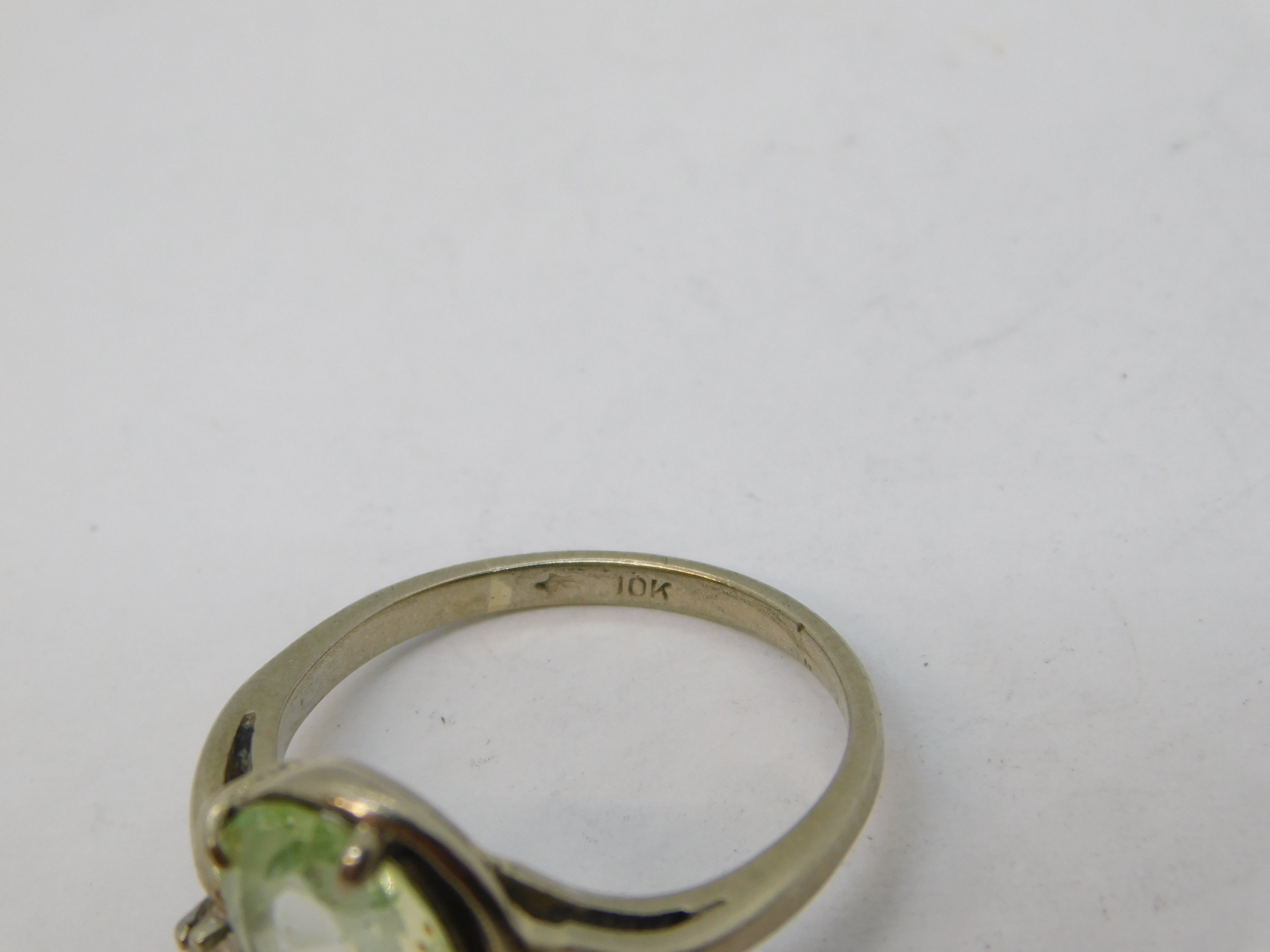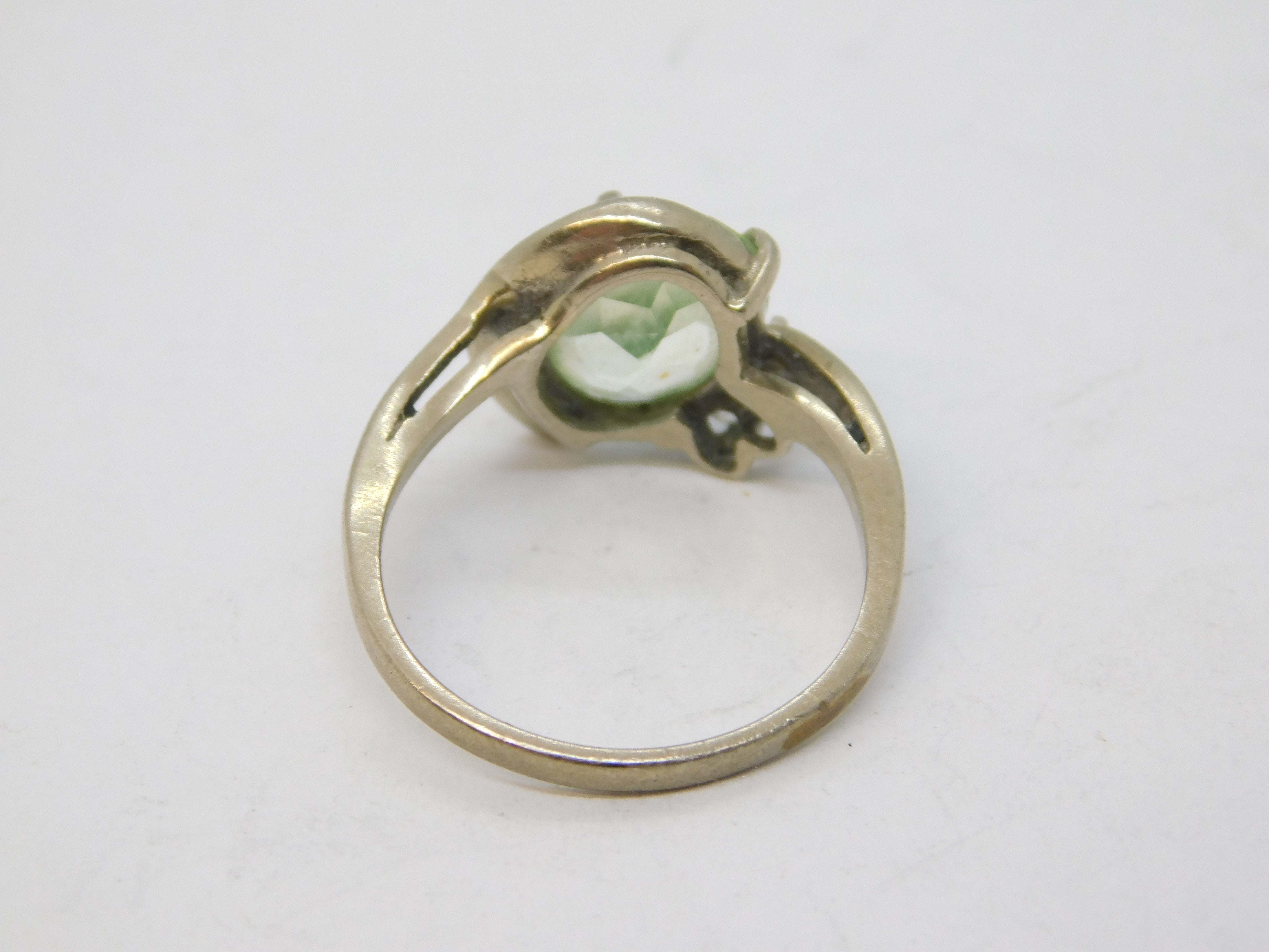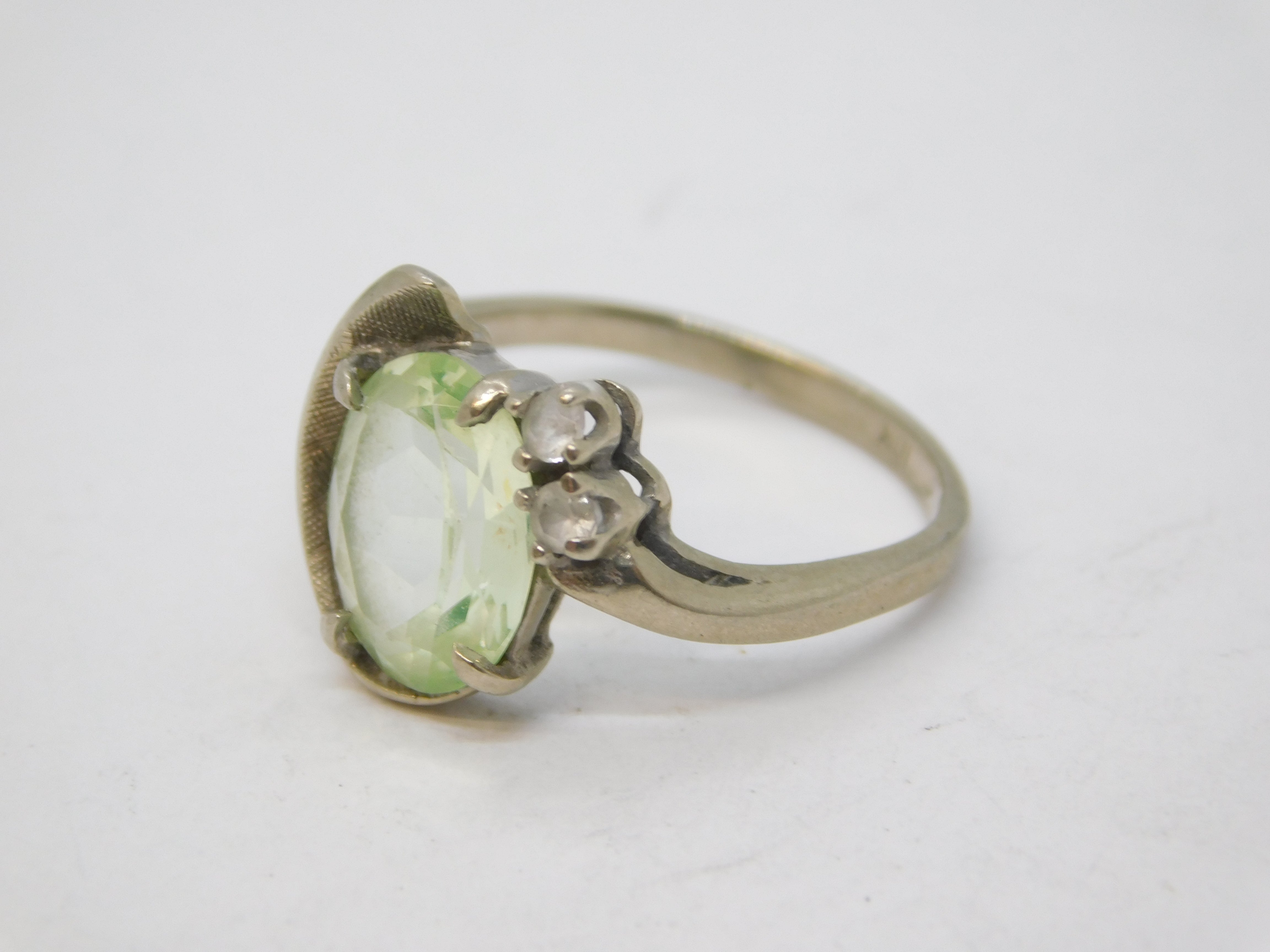 10ct White Gold, Oval-Cut Peridot & Spinel Floral Dress Ring Vintage c1970s