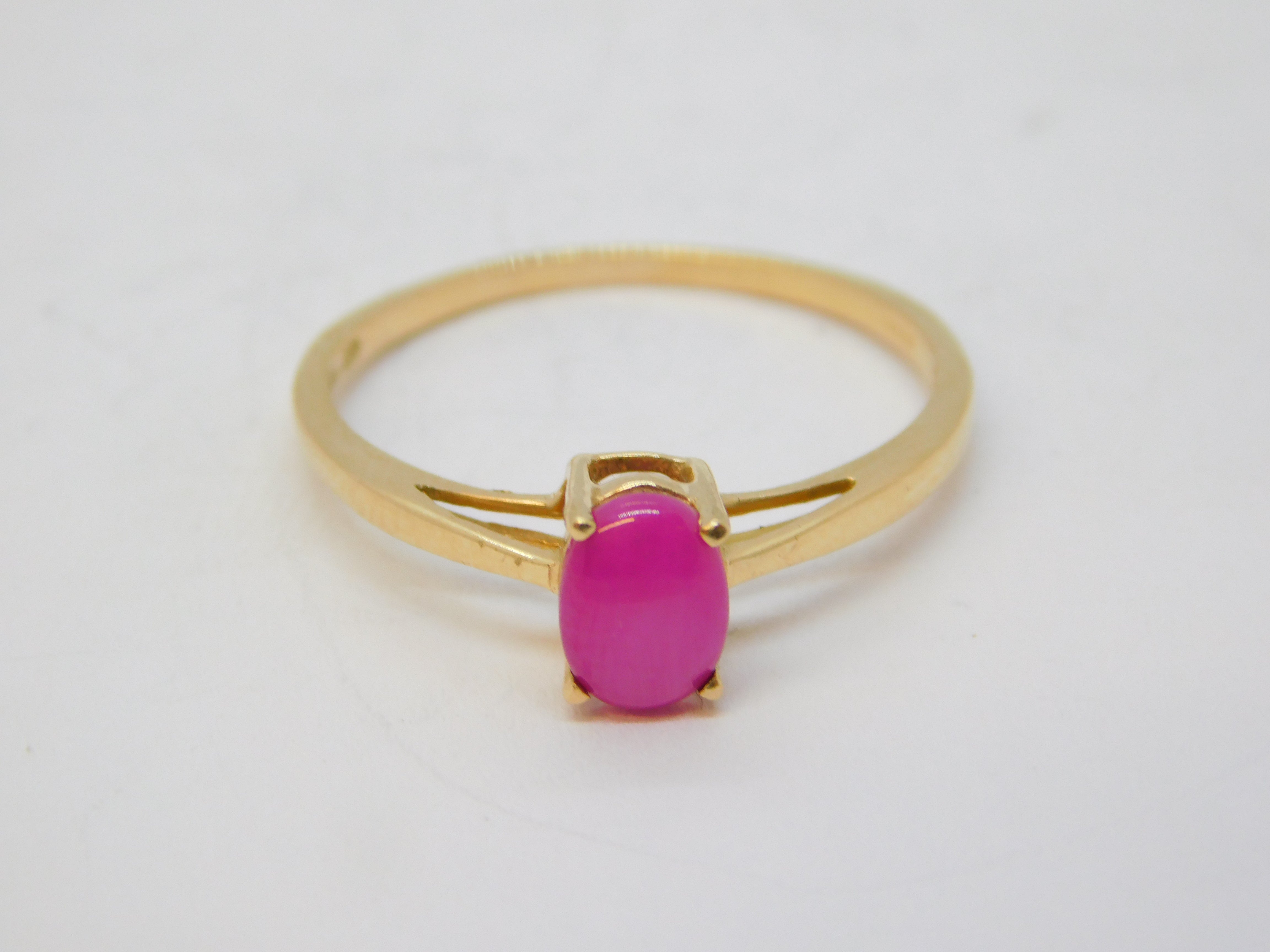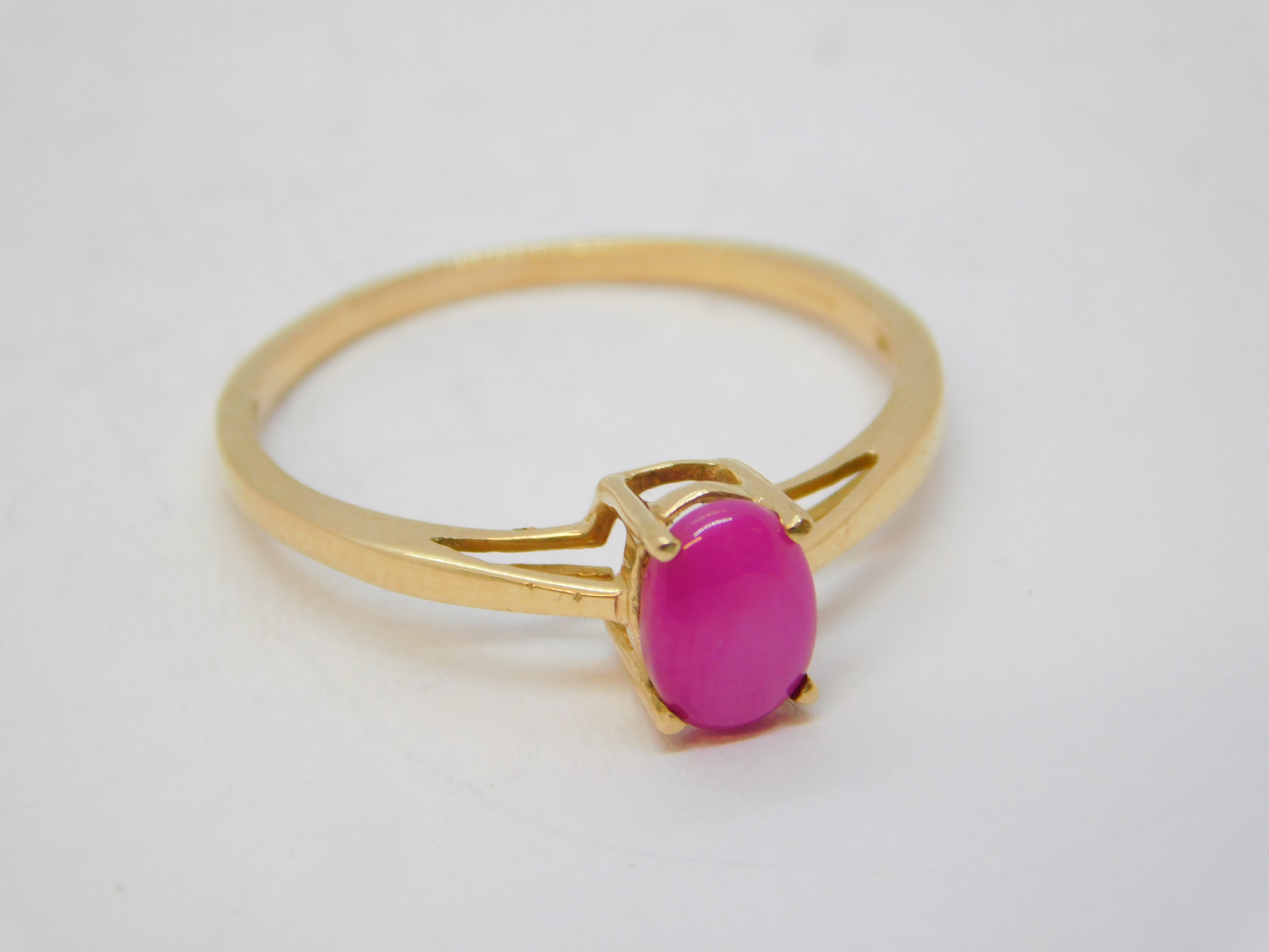 10ct Yellow Gold Cabochon Cut 0.4ct Star Ruby Solitaire Ring Vintage c1990