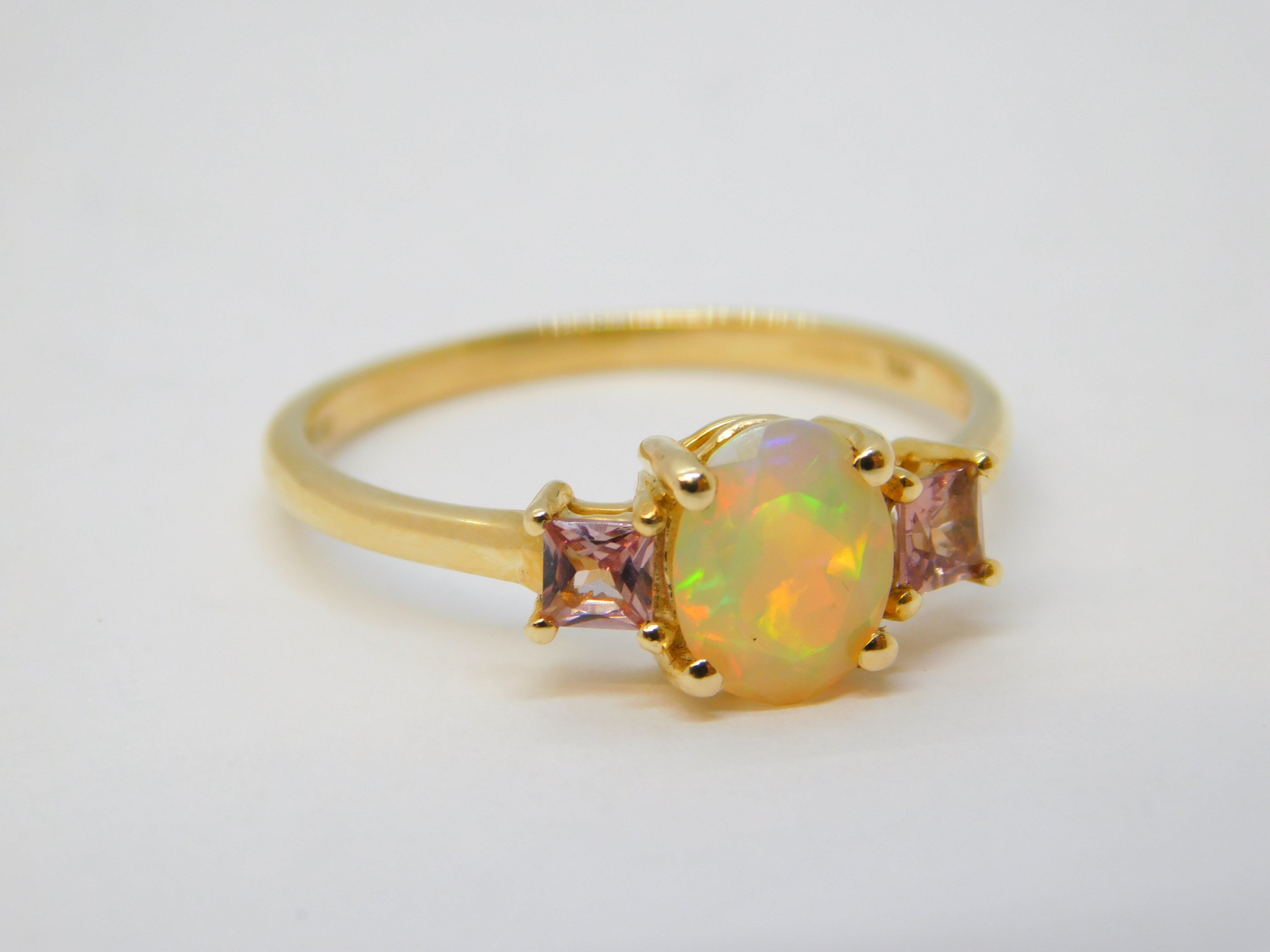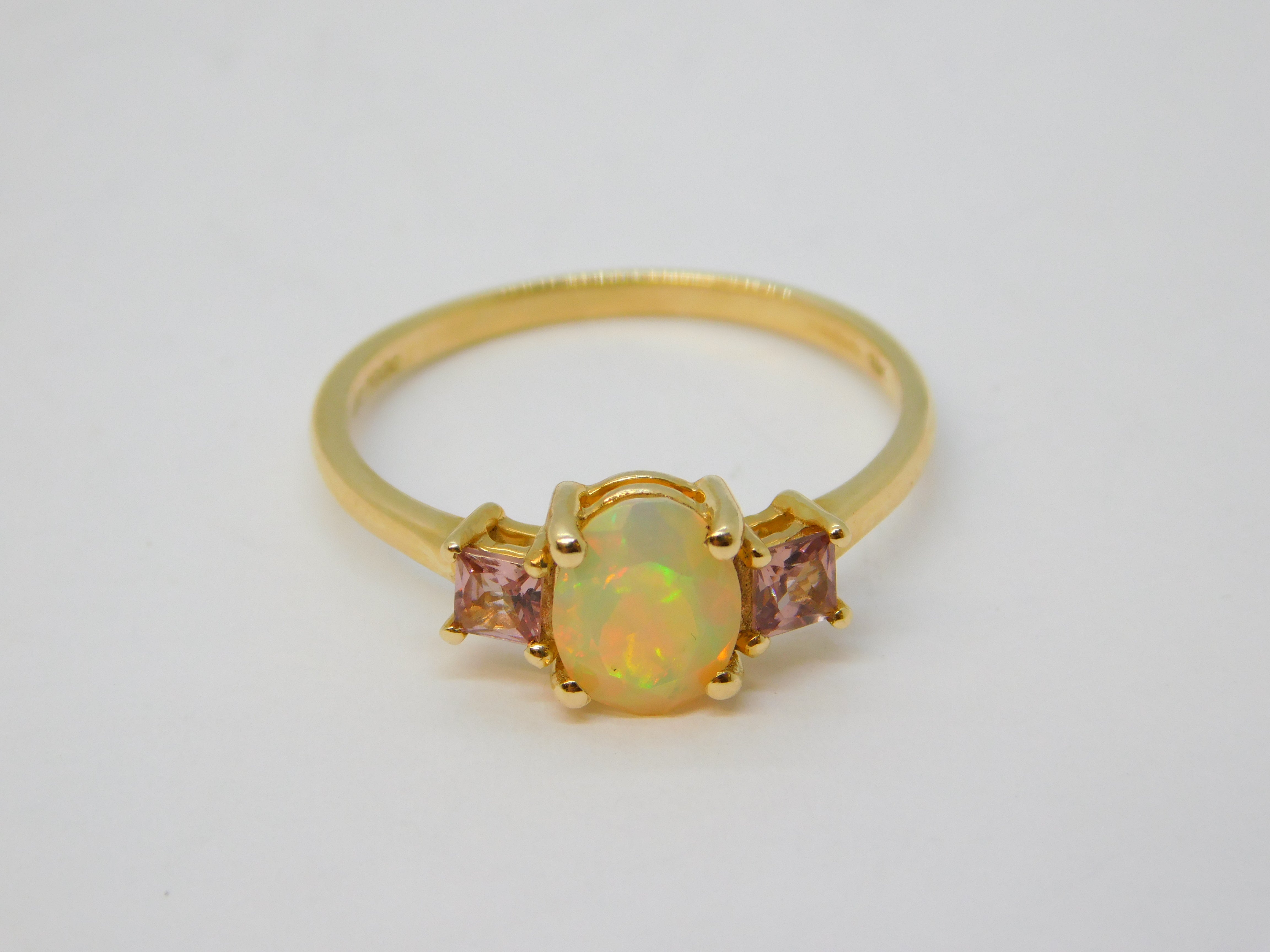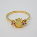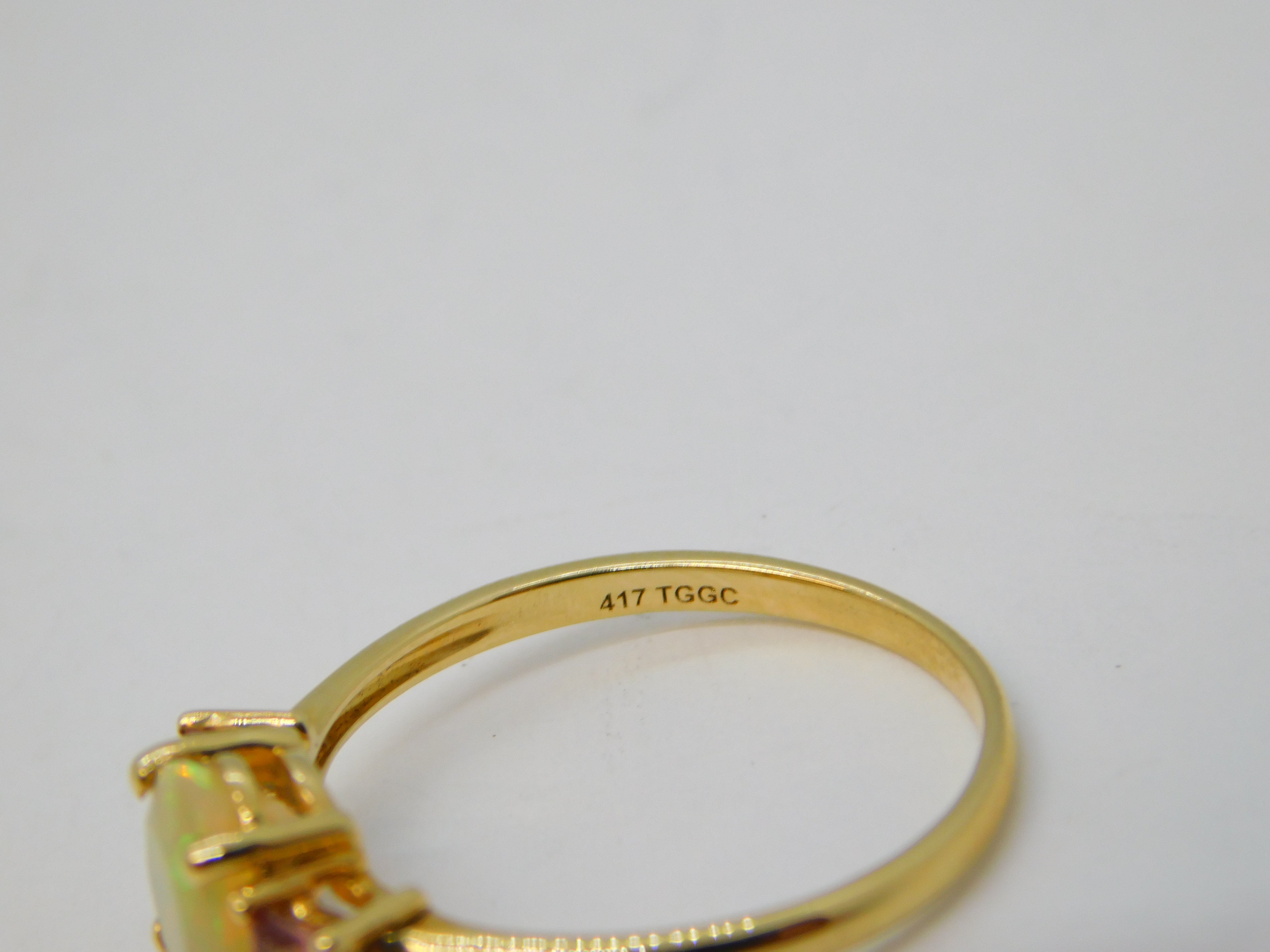 10ct Yellow Gold, Ethiopian Opal & Garnet Dress Ring Vintage Birmingham