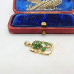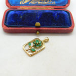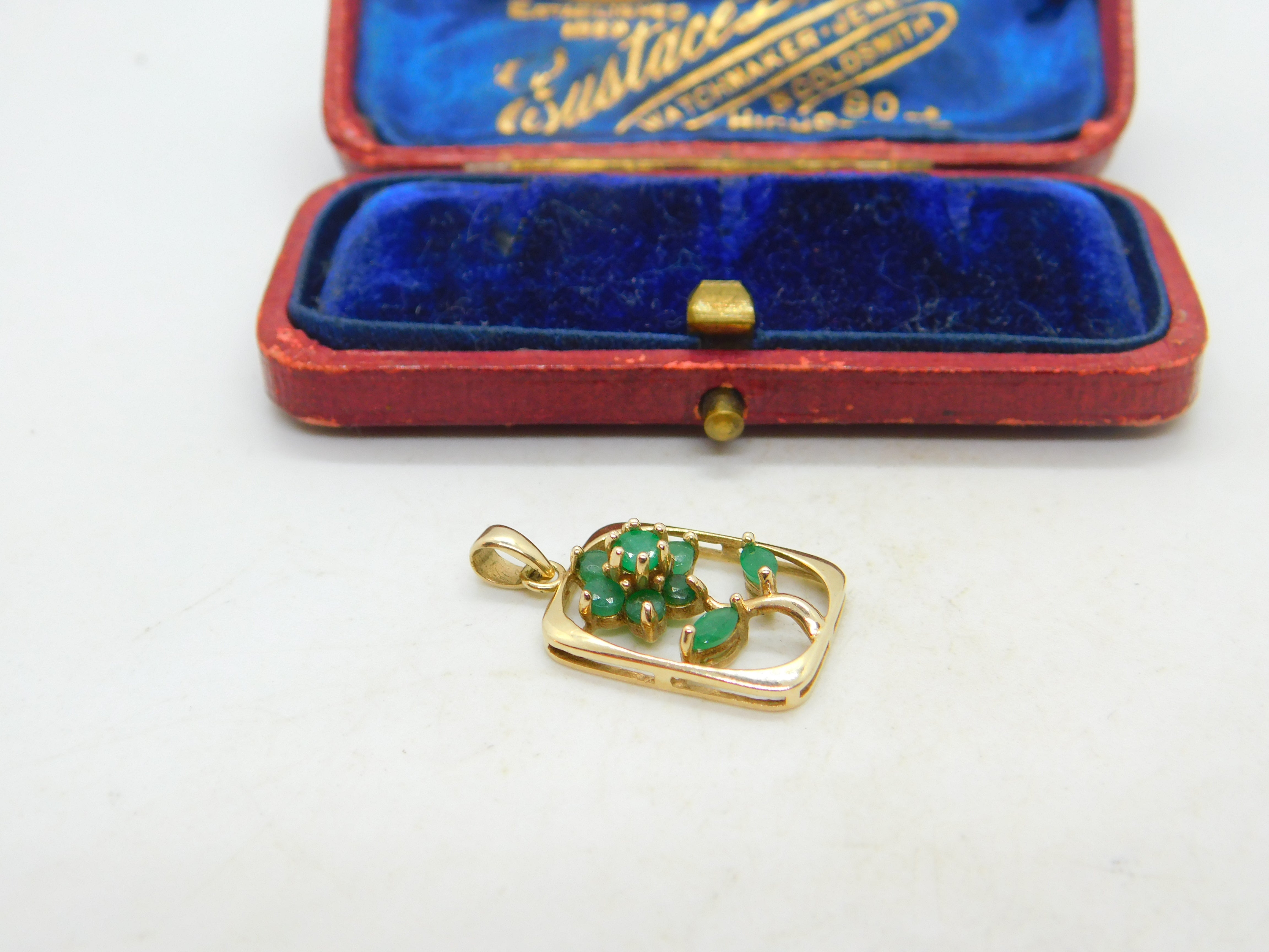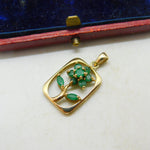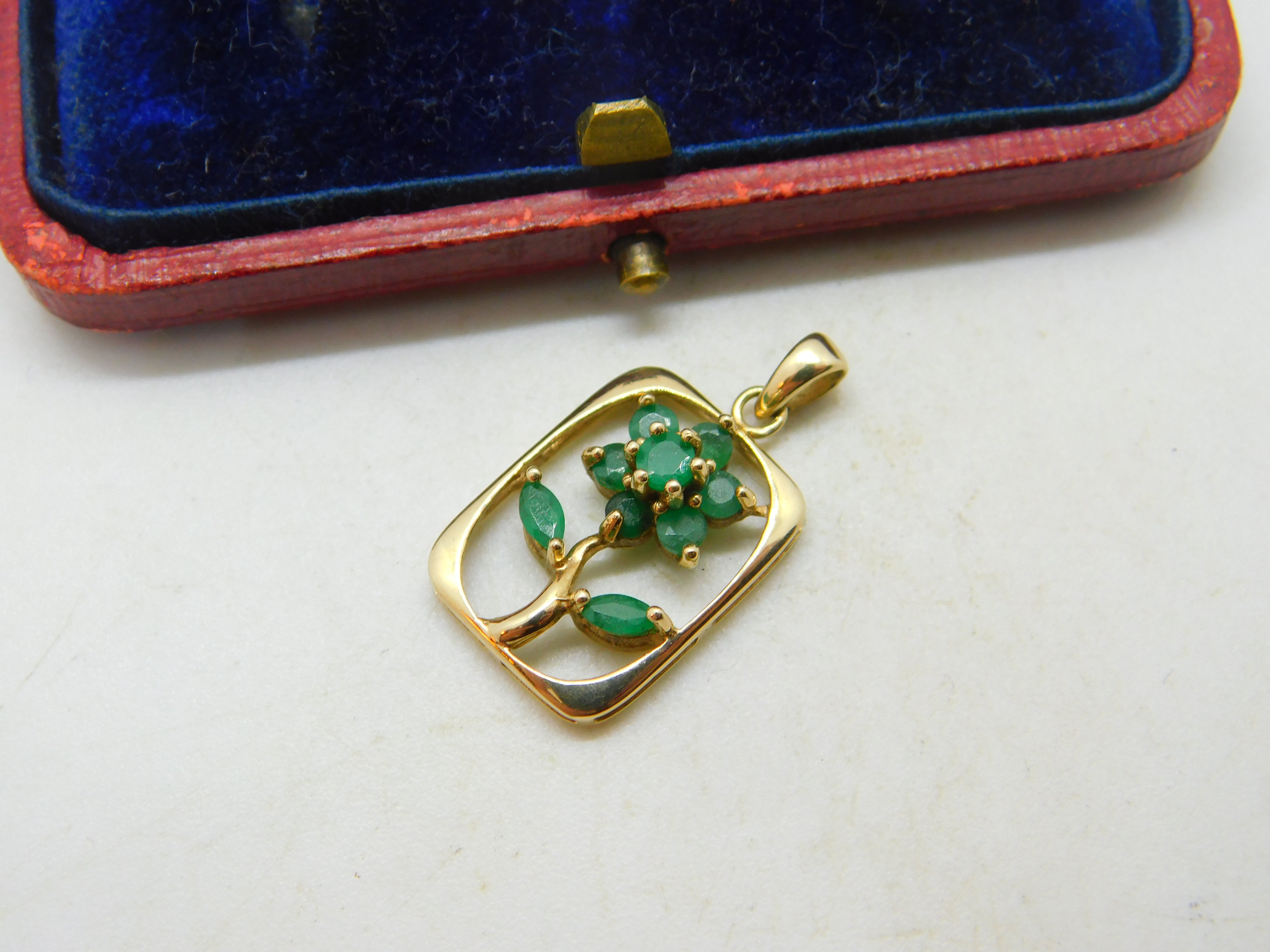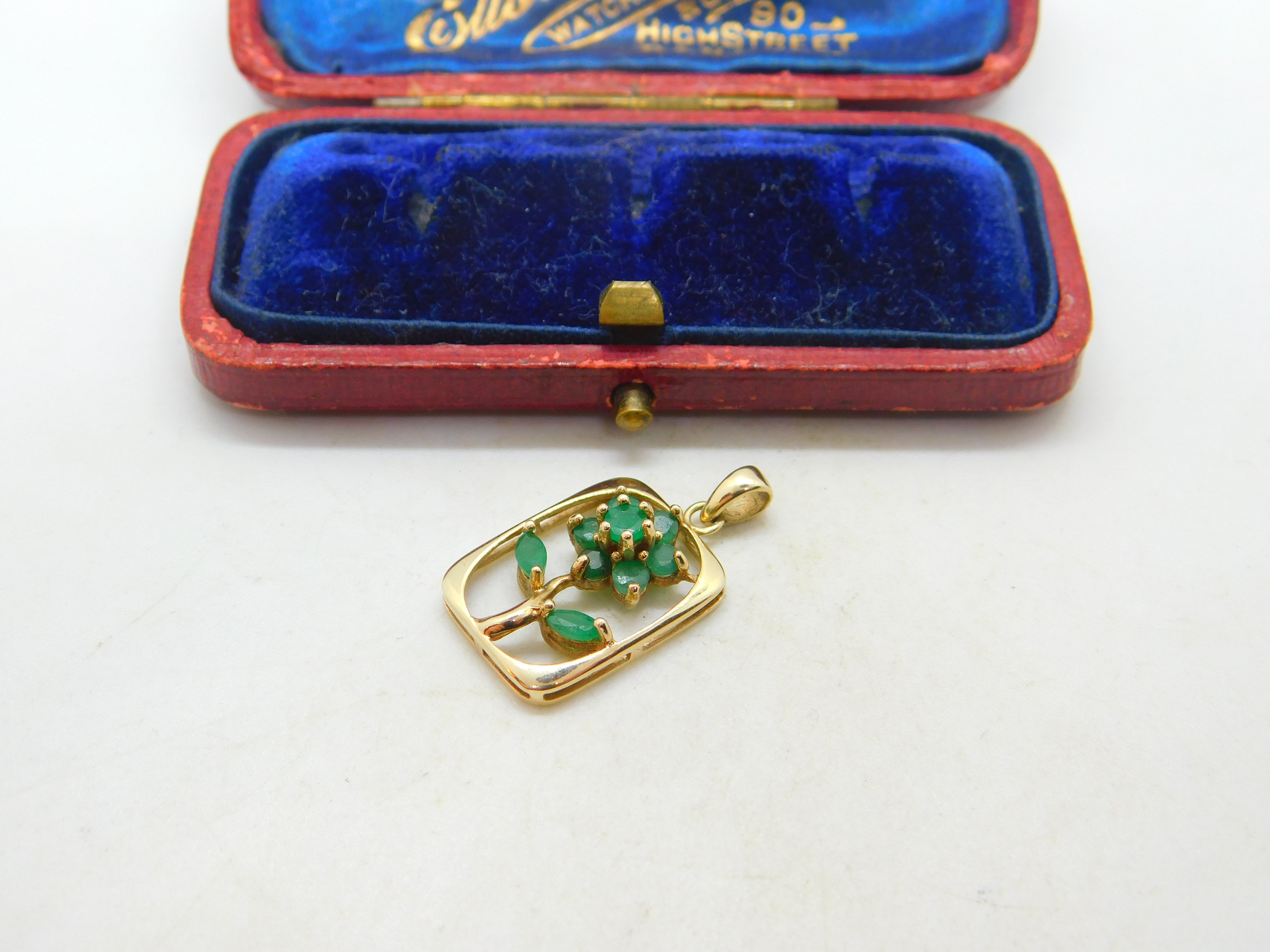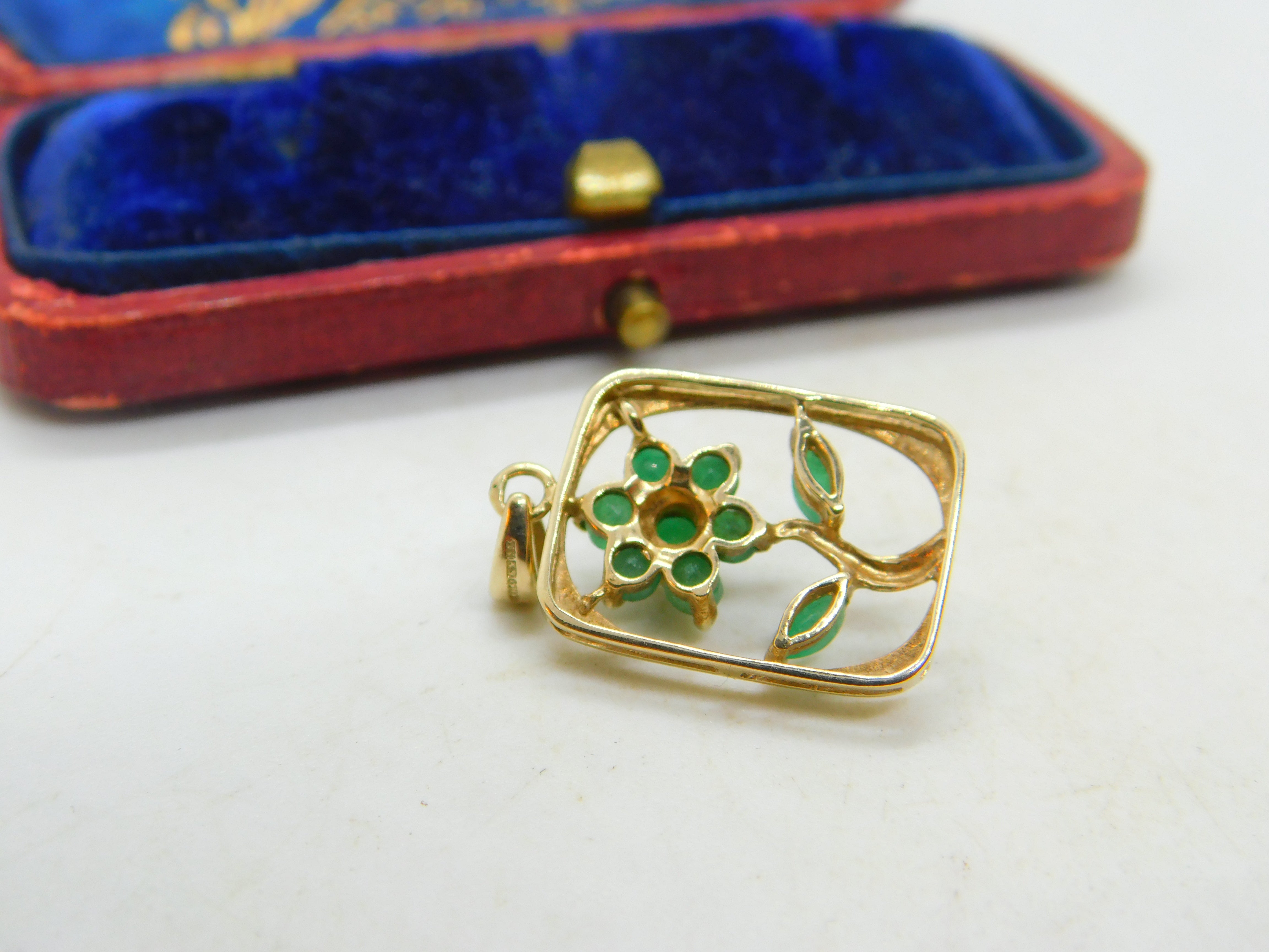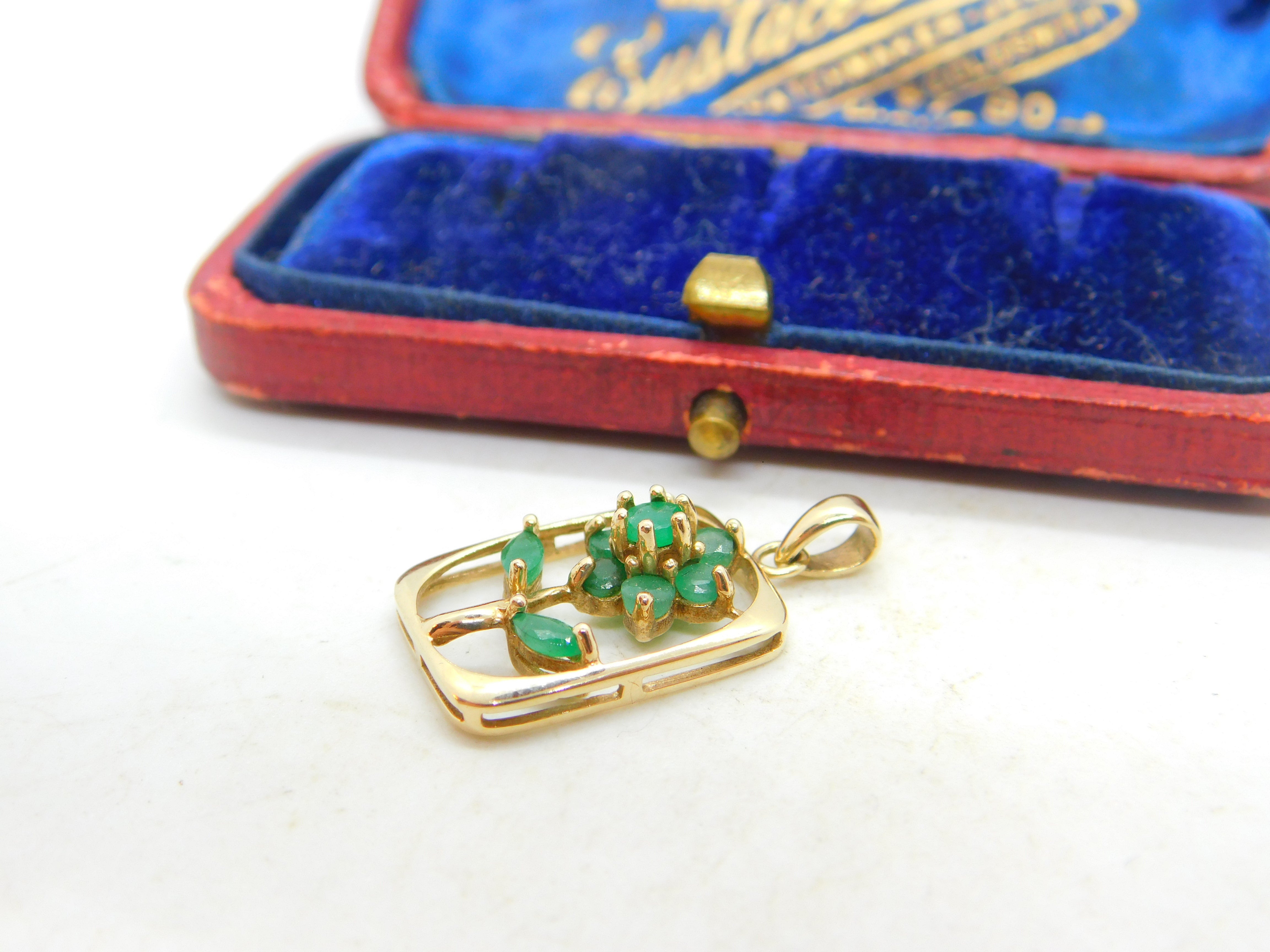 10ct Yellow Gold & Natural Emerald Flower Drop Pendant Vintage c1980