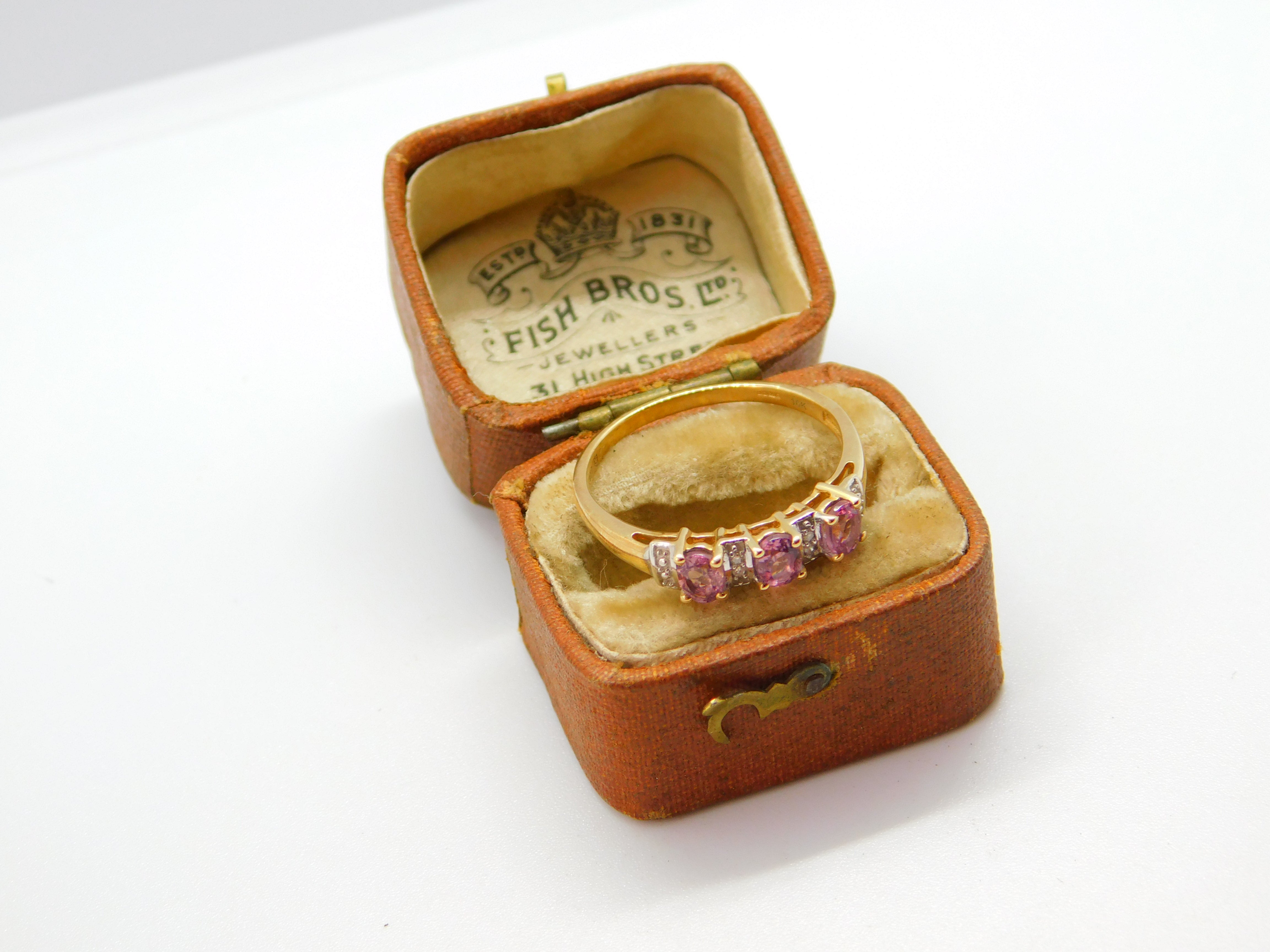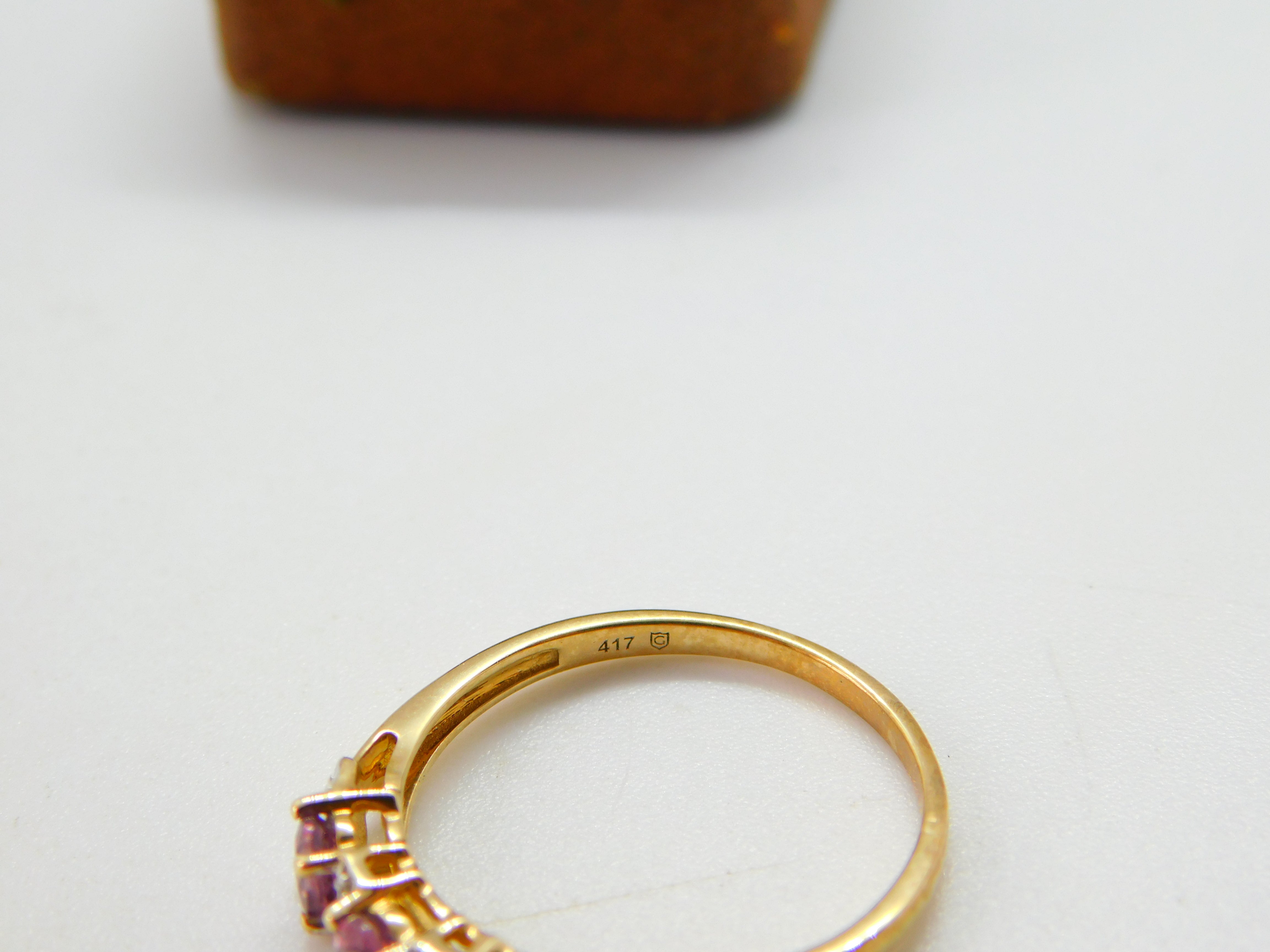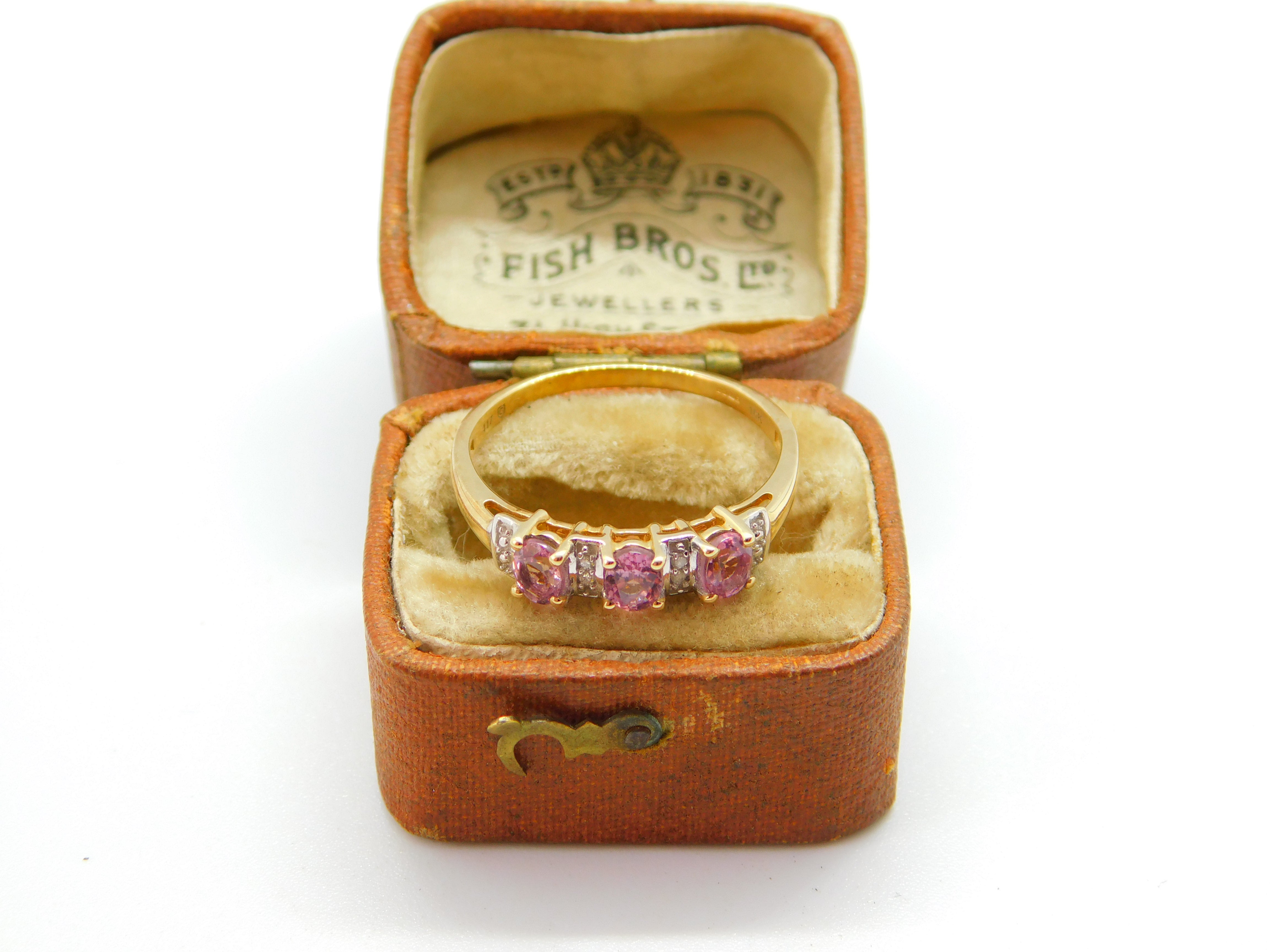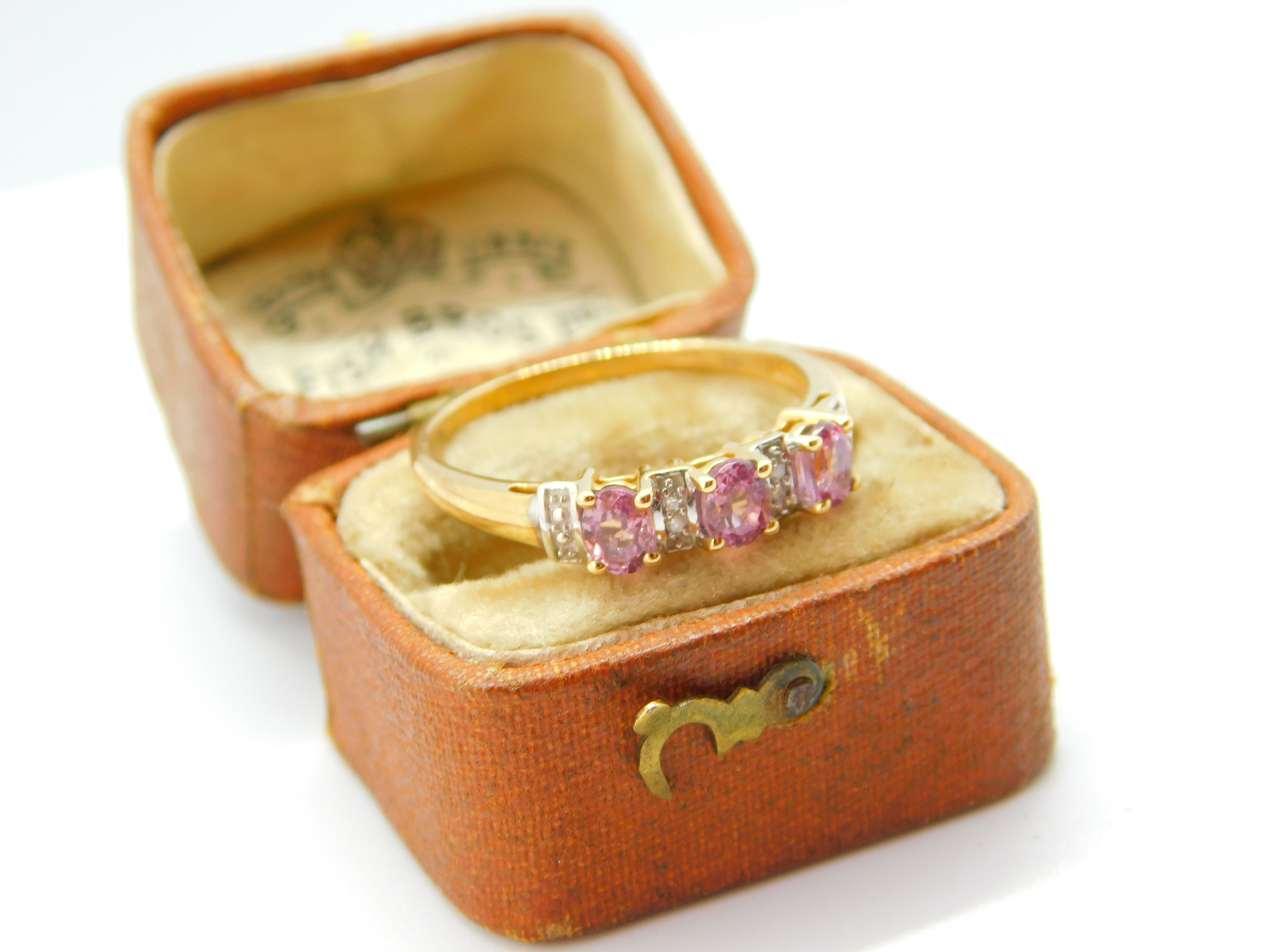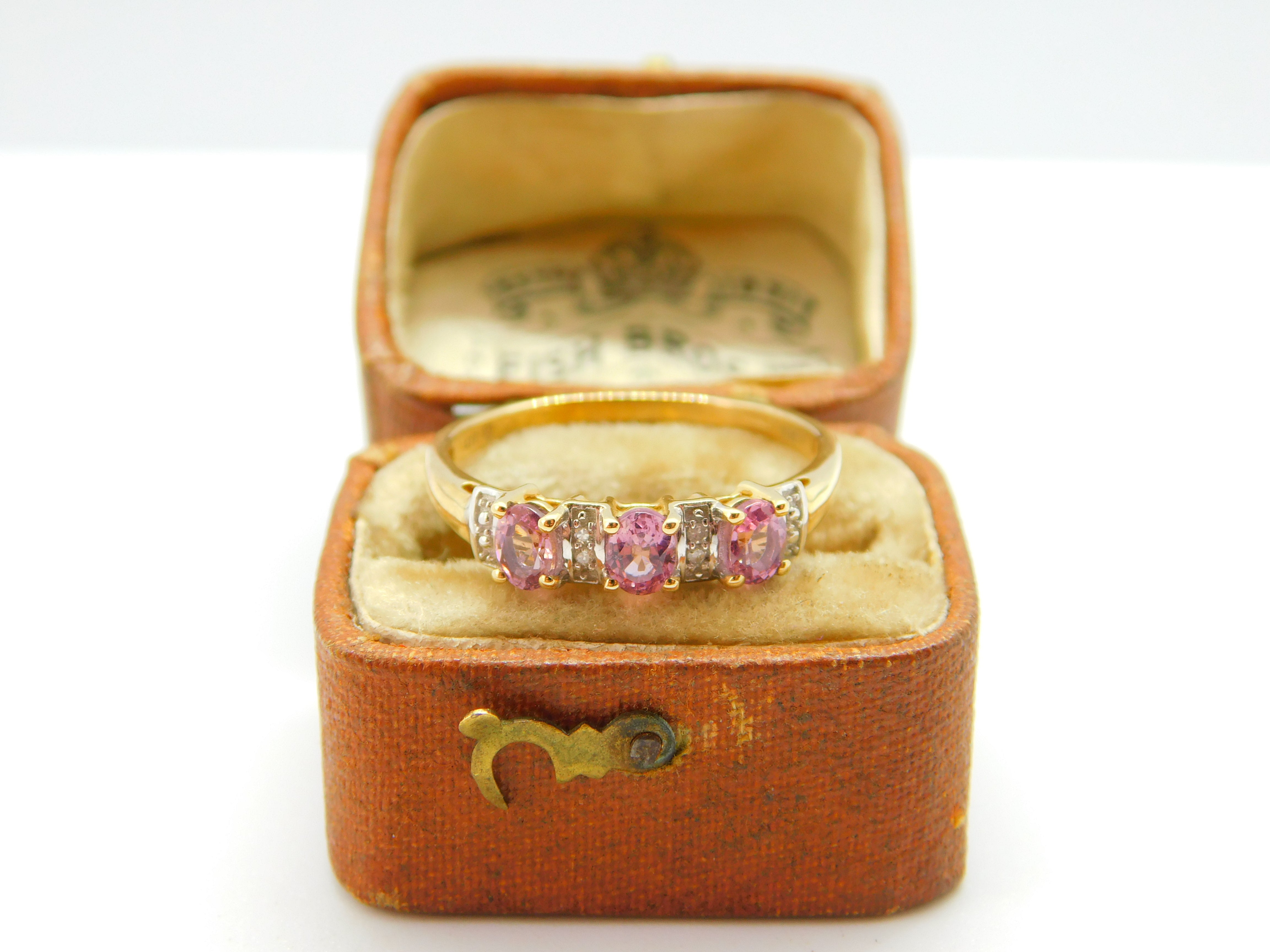 10ct Yellow Gold, Pink Topaz & Diamond Dress Ring Vintage c1990