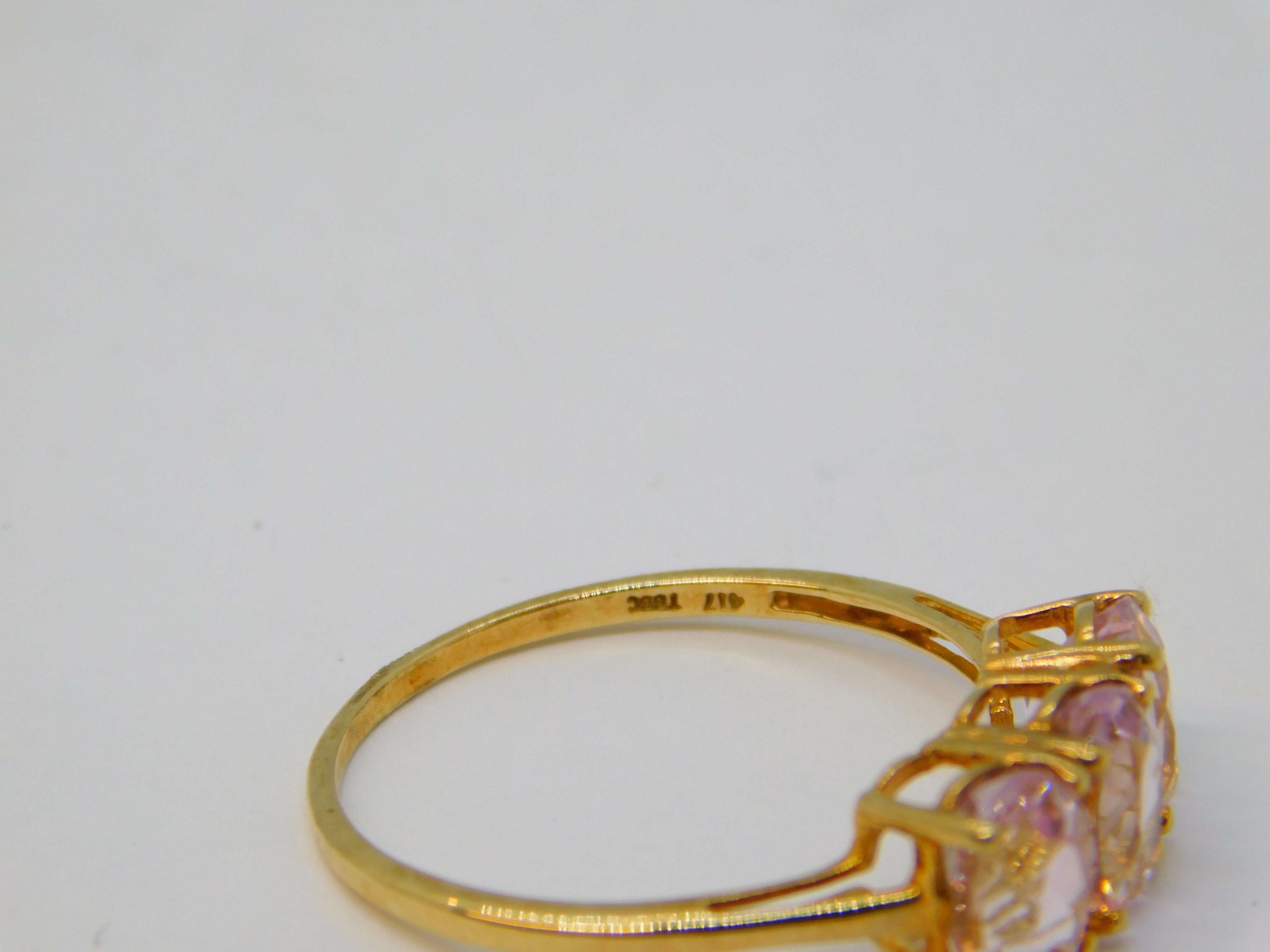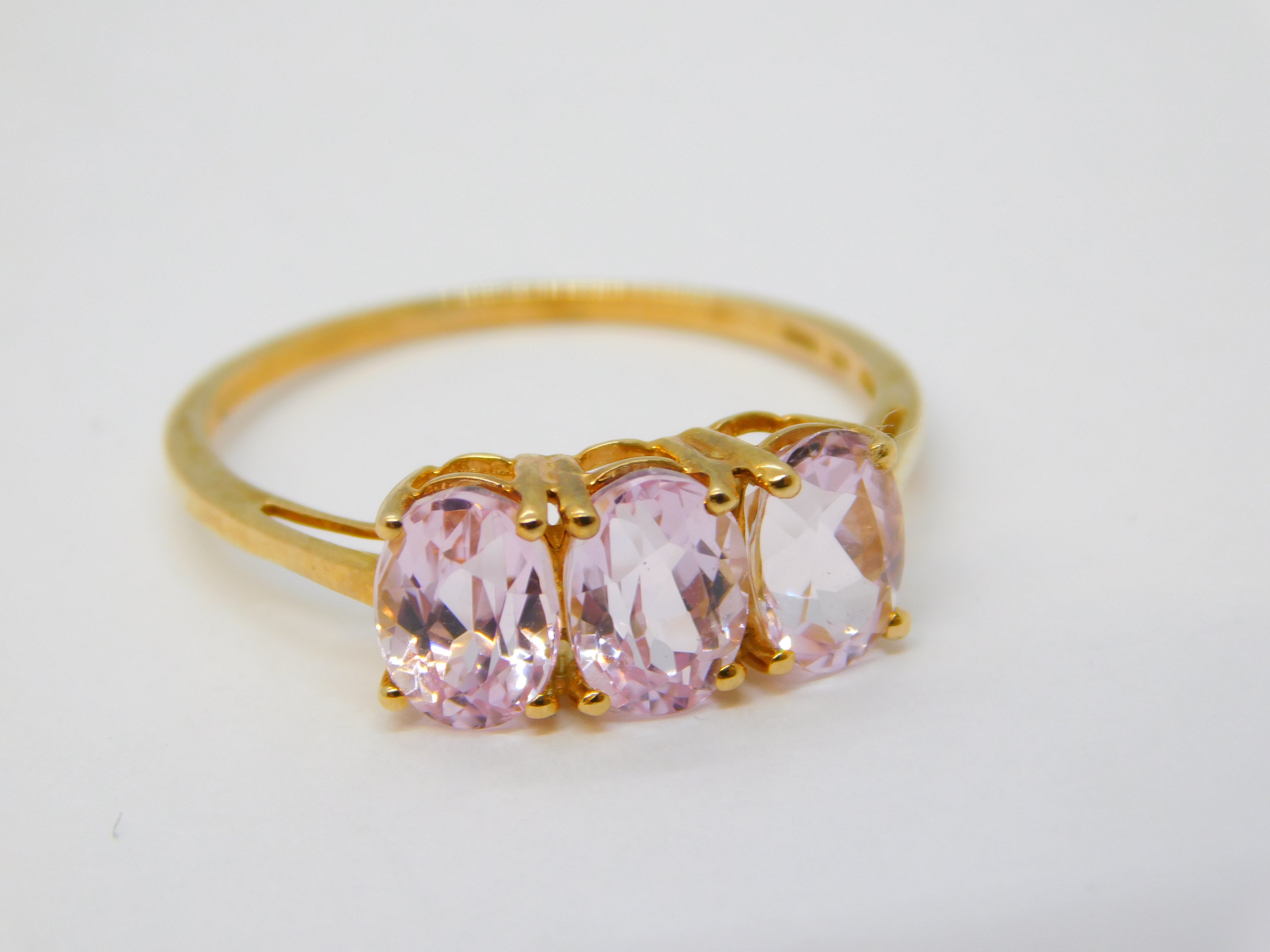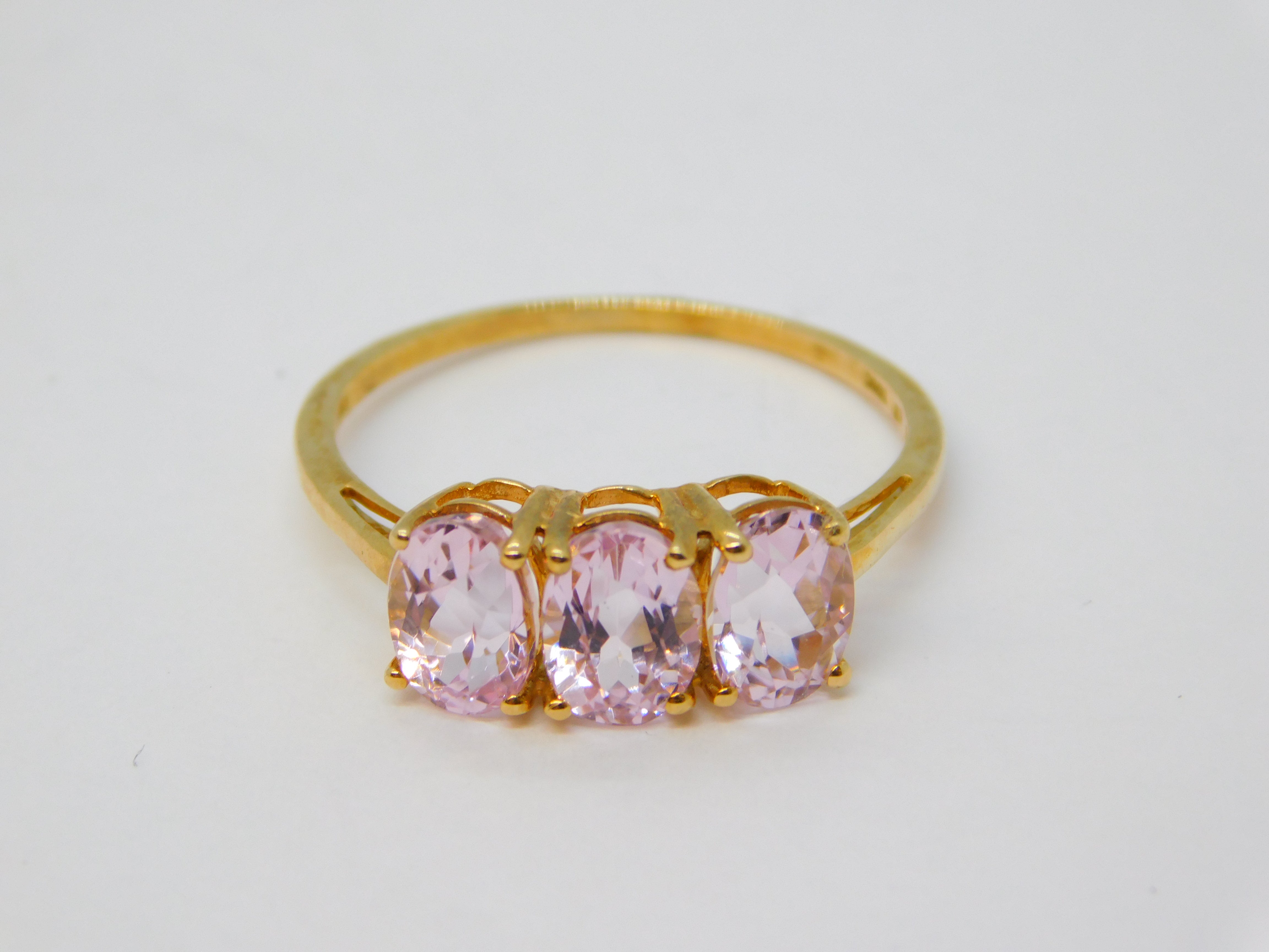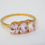 10ct Yellow Gold Three-Stone Kunzite Gold Dress Ring Vintage Birmingham