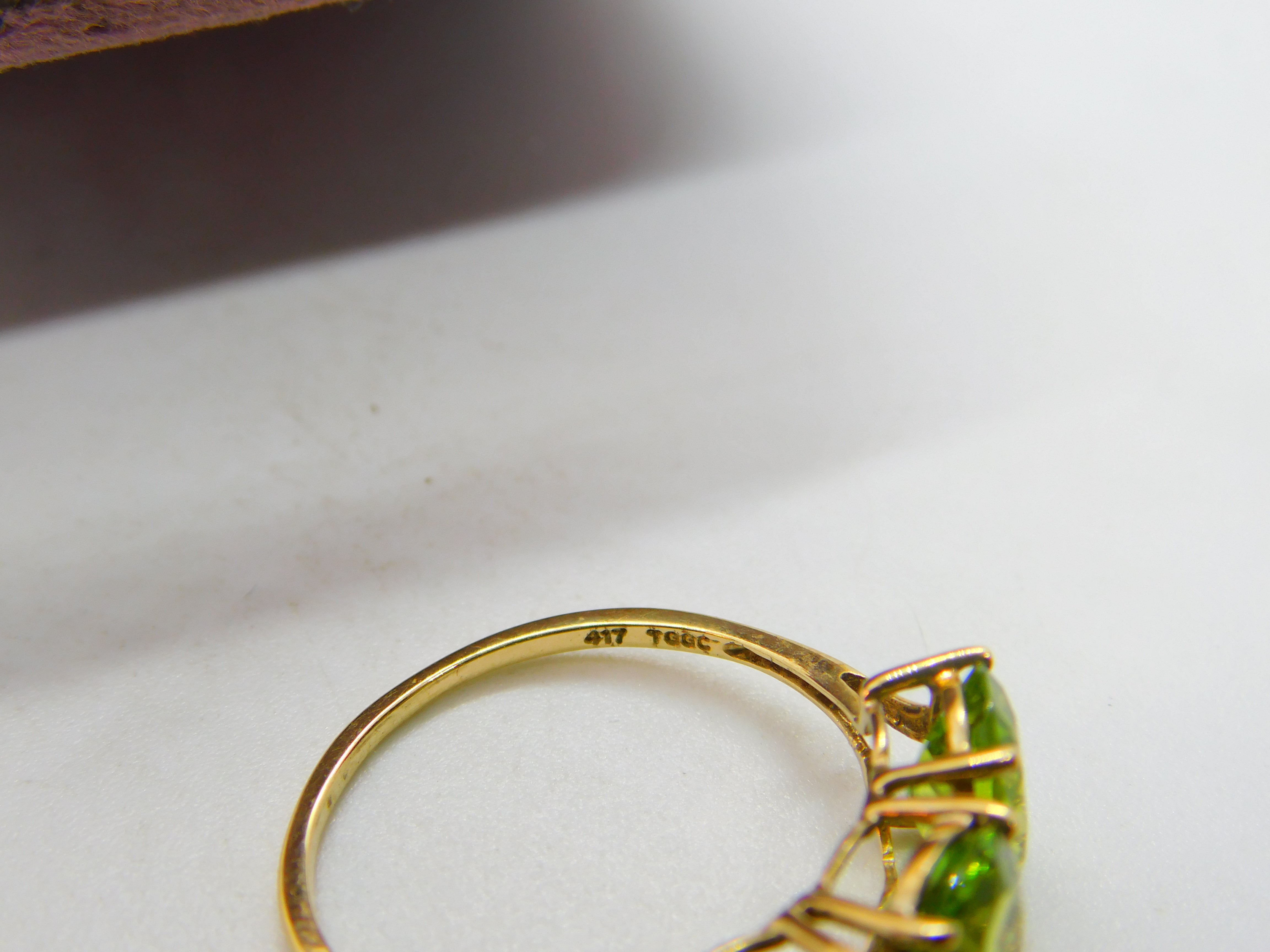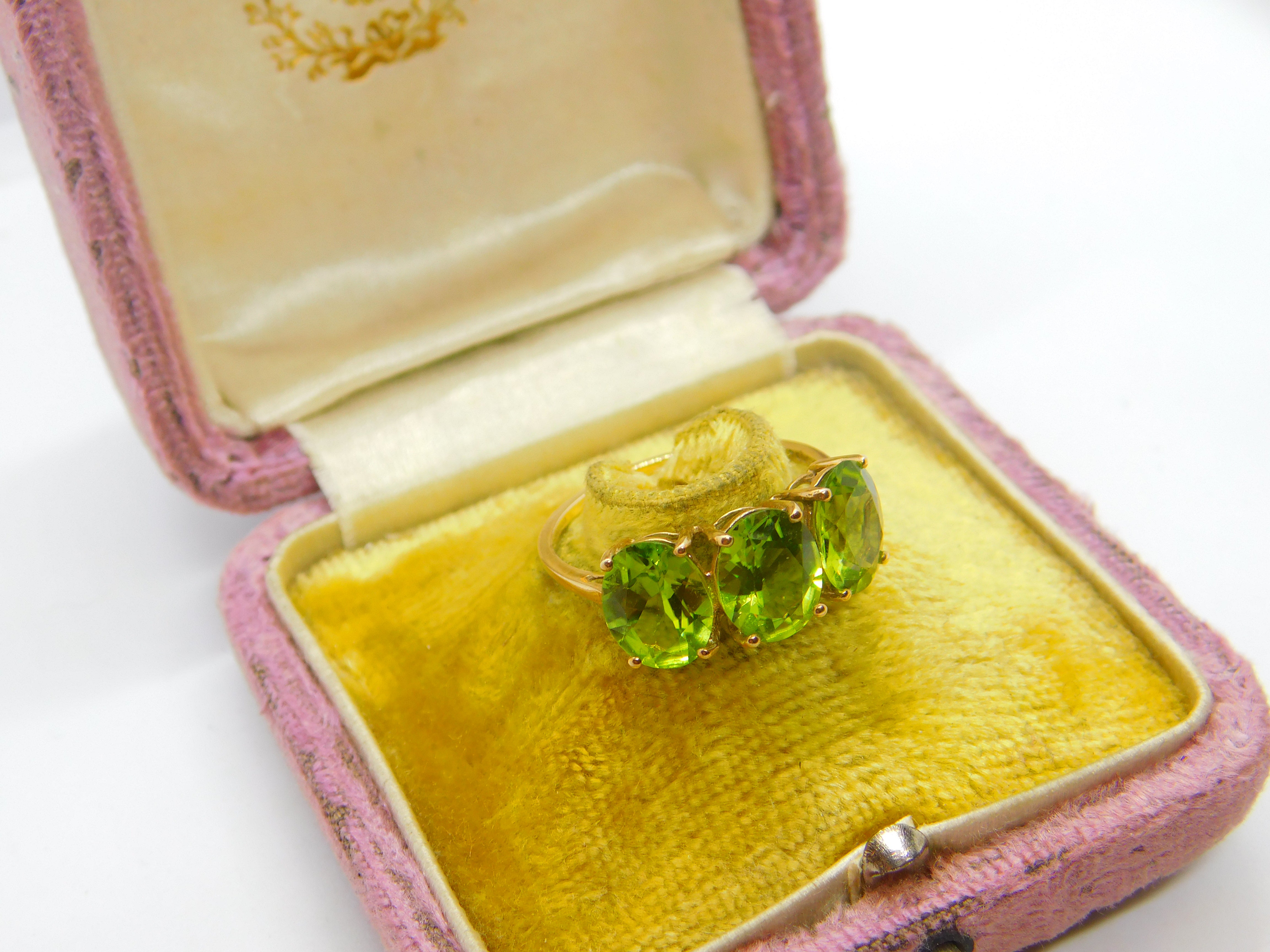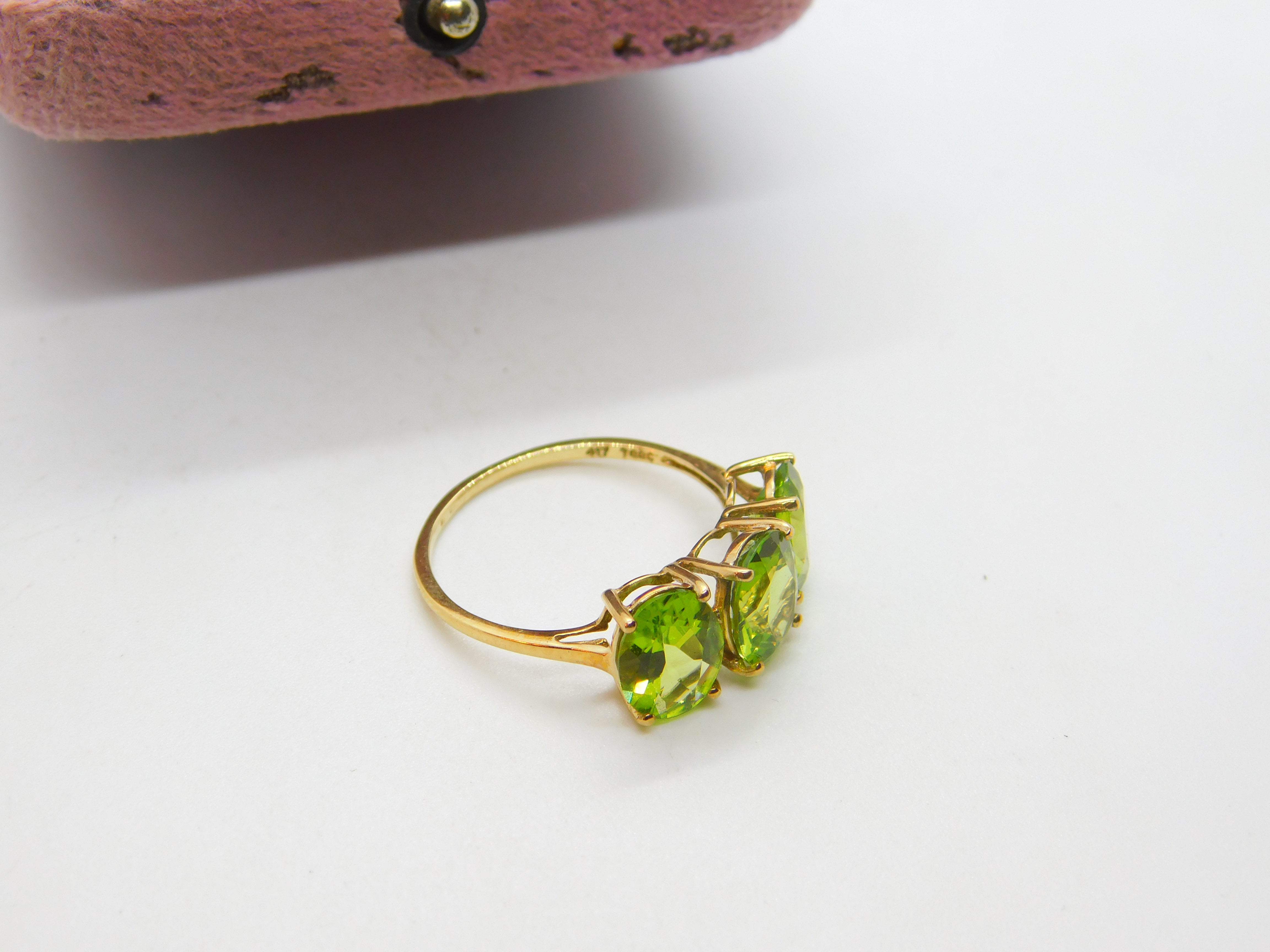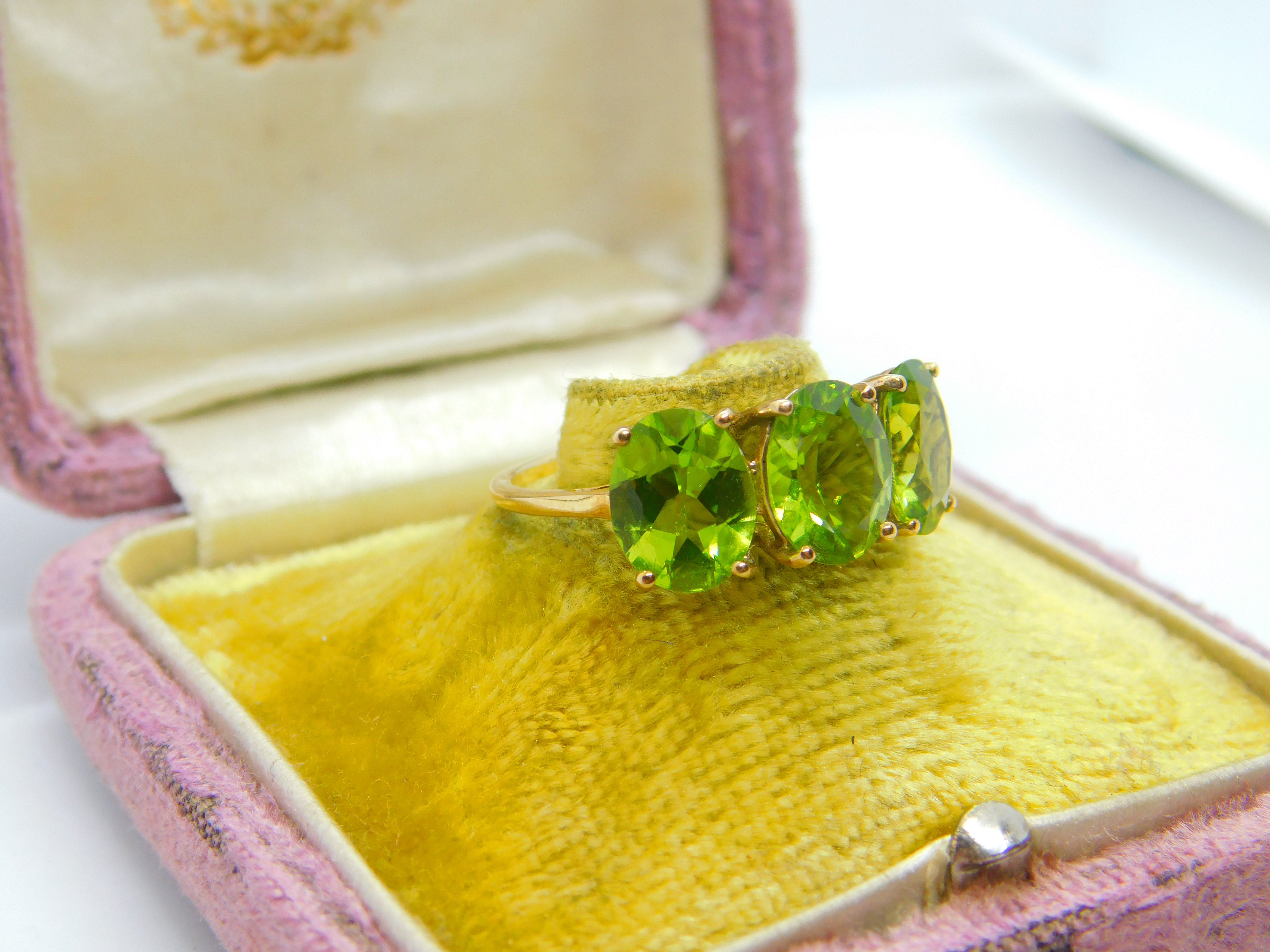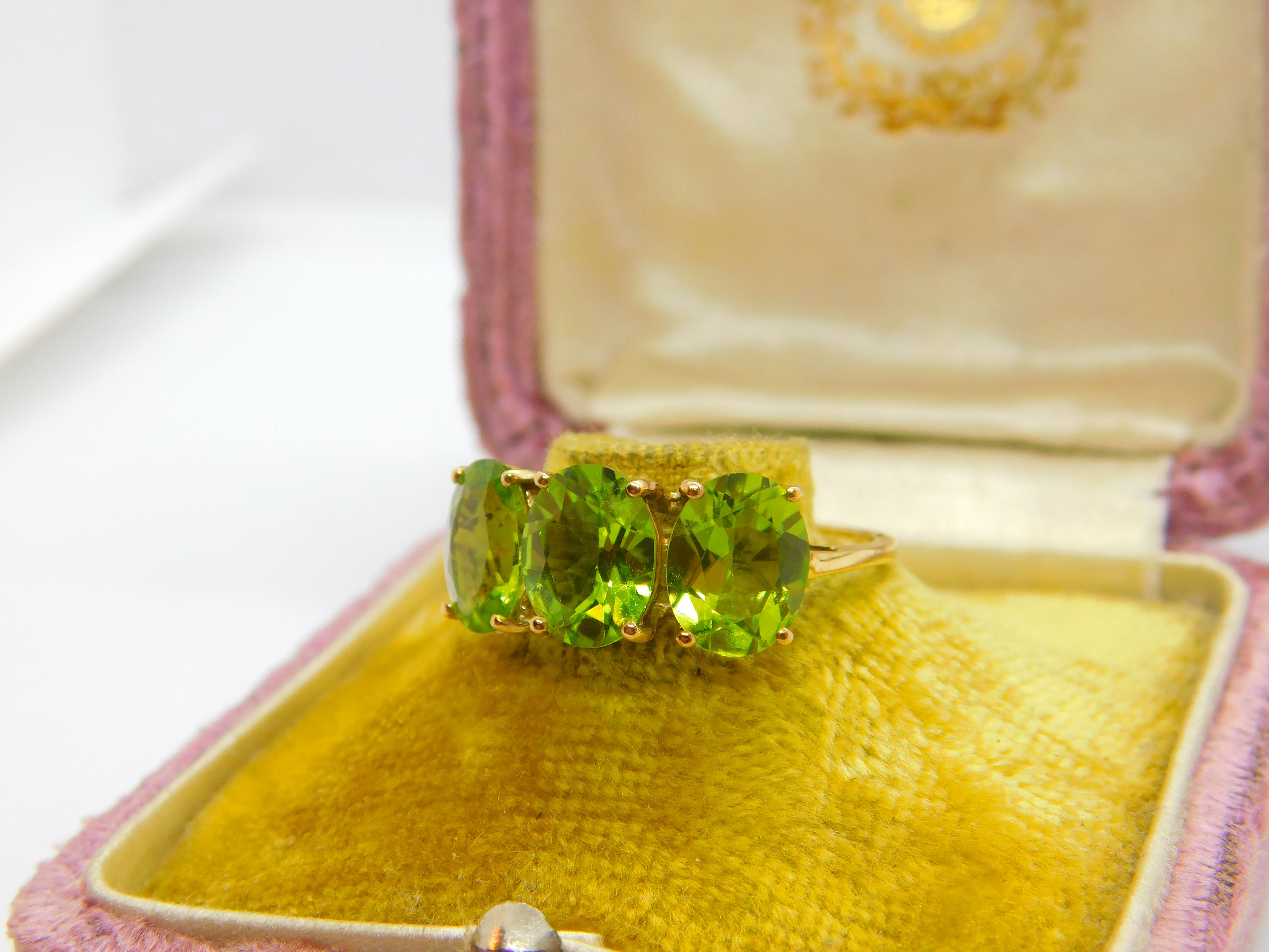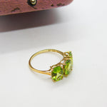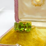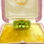 10ct Yellow Gold & Three Stone Peridot Band Ring Vintage c1990
