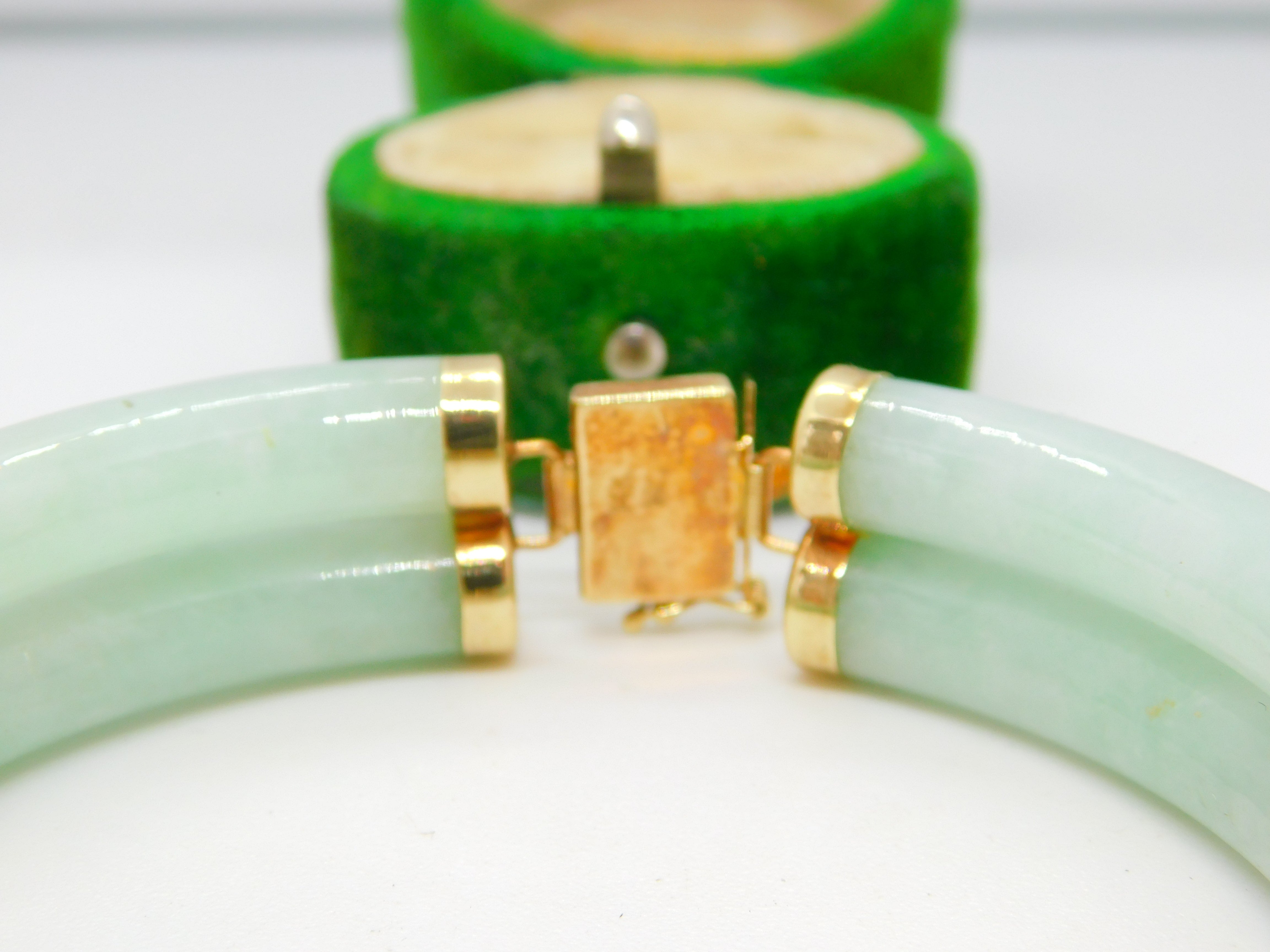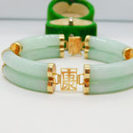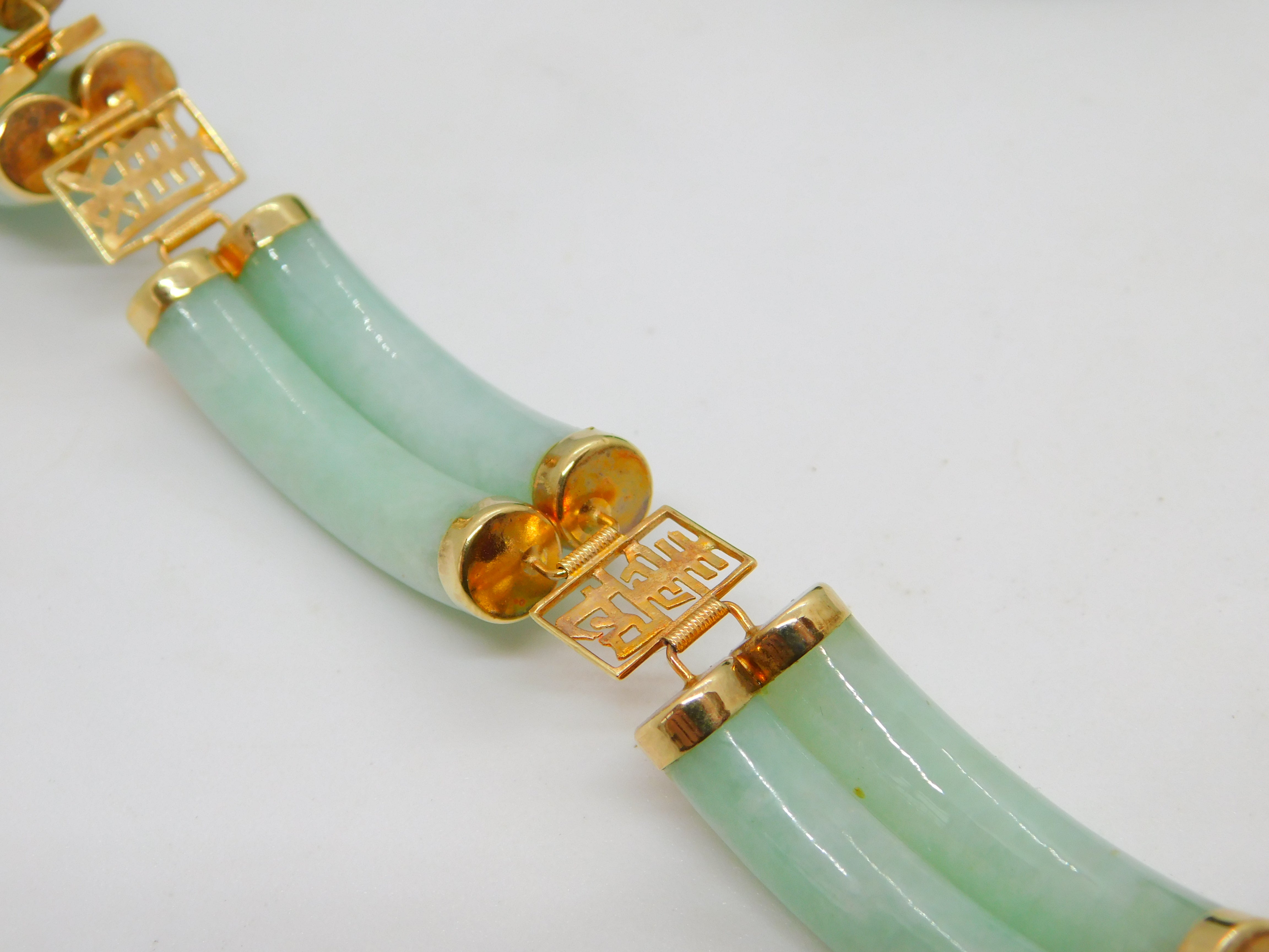 14ct Gold & Apple Green Jade Character Panel Bracelet Vintage 2001 Birmingham