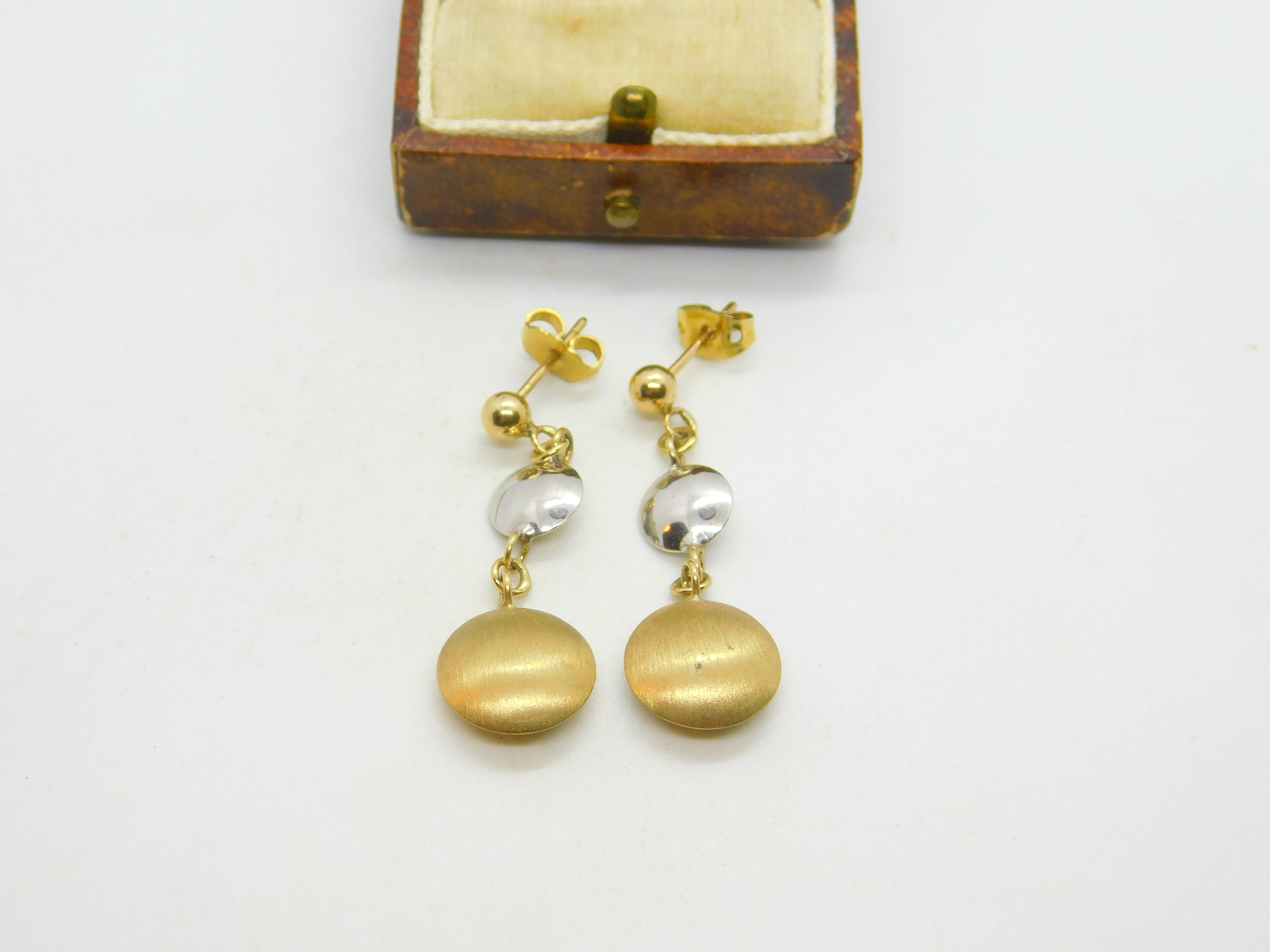14ct Two-Tone Gold Dangling Pendant Stud Earrings Vintage c1990