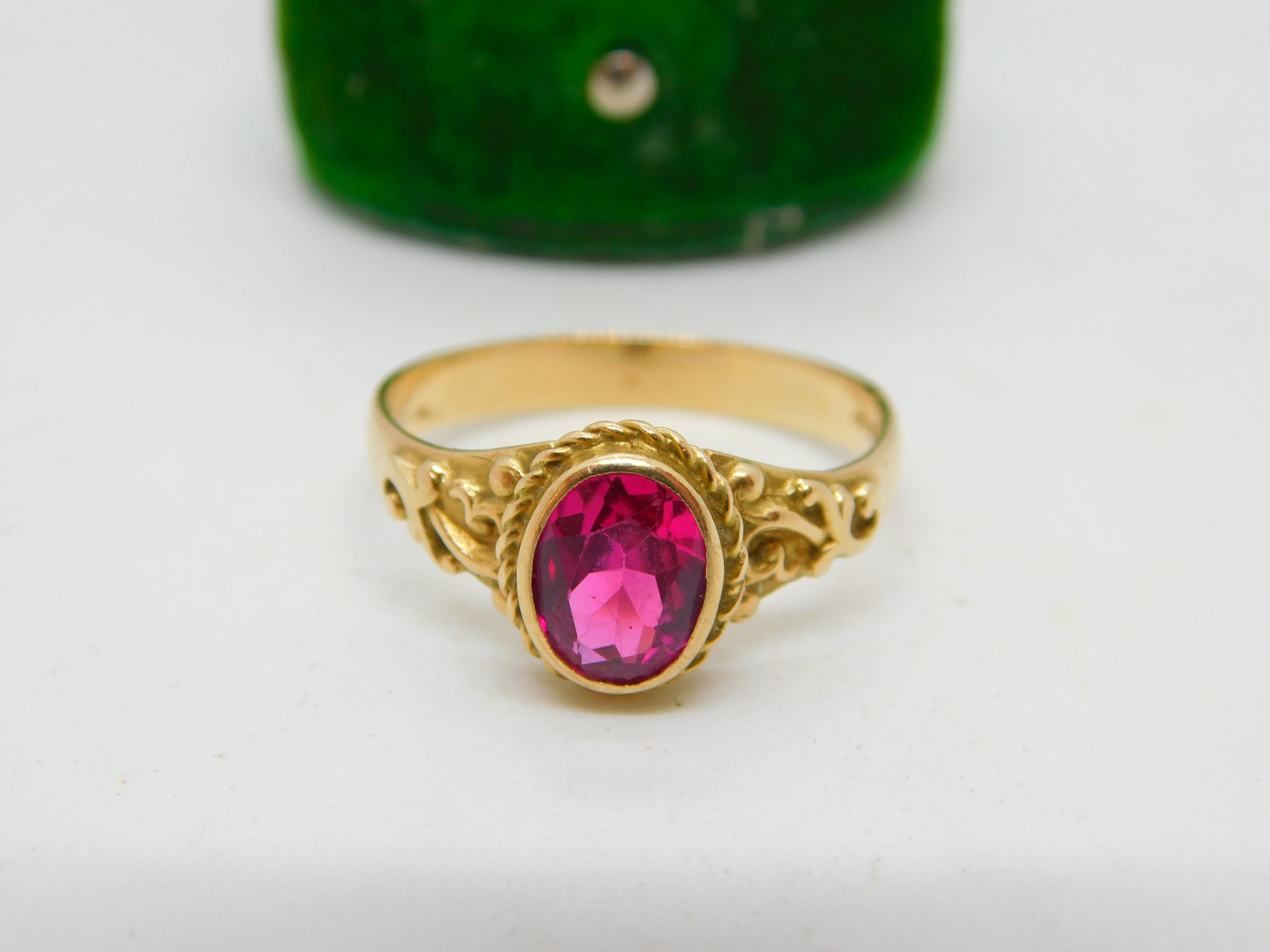 14ct Yellow Gold & 1ct Natural Ruby Dress Ring Vintage c1970