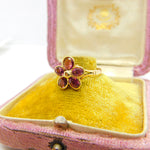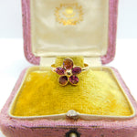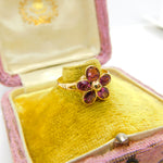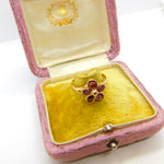 14ct Yellow Gold Almandine Garnet Floral Band Ring Antique c1920 Art Deco