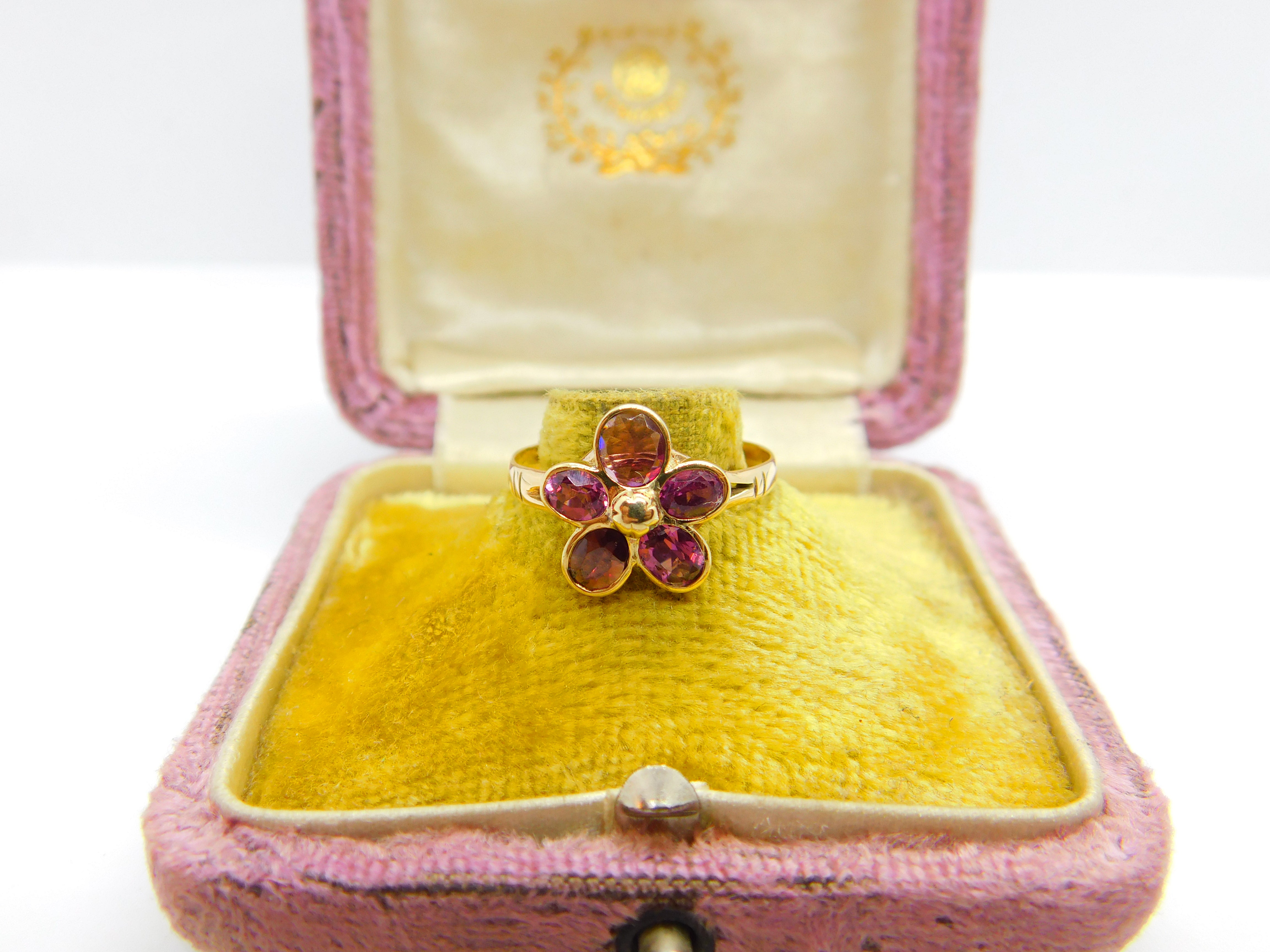 Details: A fantastic and wonderfully designed antique art deco 14ct yellow gold almandine garnet set floral ring c1920 almost certainly Austrian - the gold has been XRF tested. This is a wonderful item that would make a perfect gift or addition to any collection. The BOX pictured is for PRESENTATION ONLY and is NOT included in the listings but used to frame the pictures unless specifically stated otherwise.
