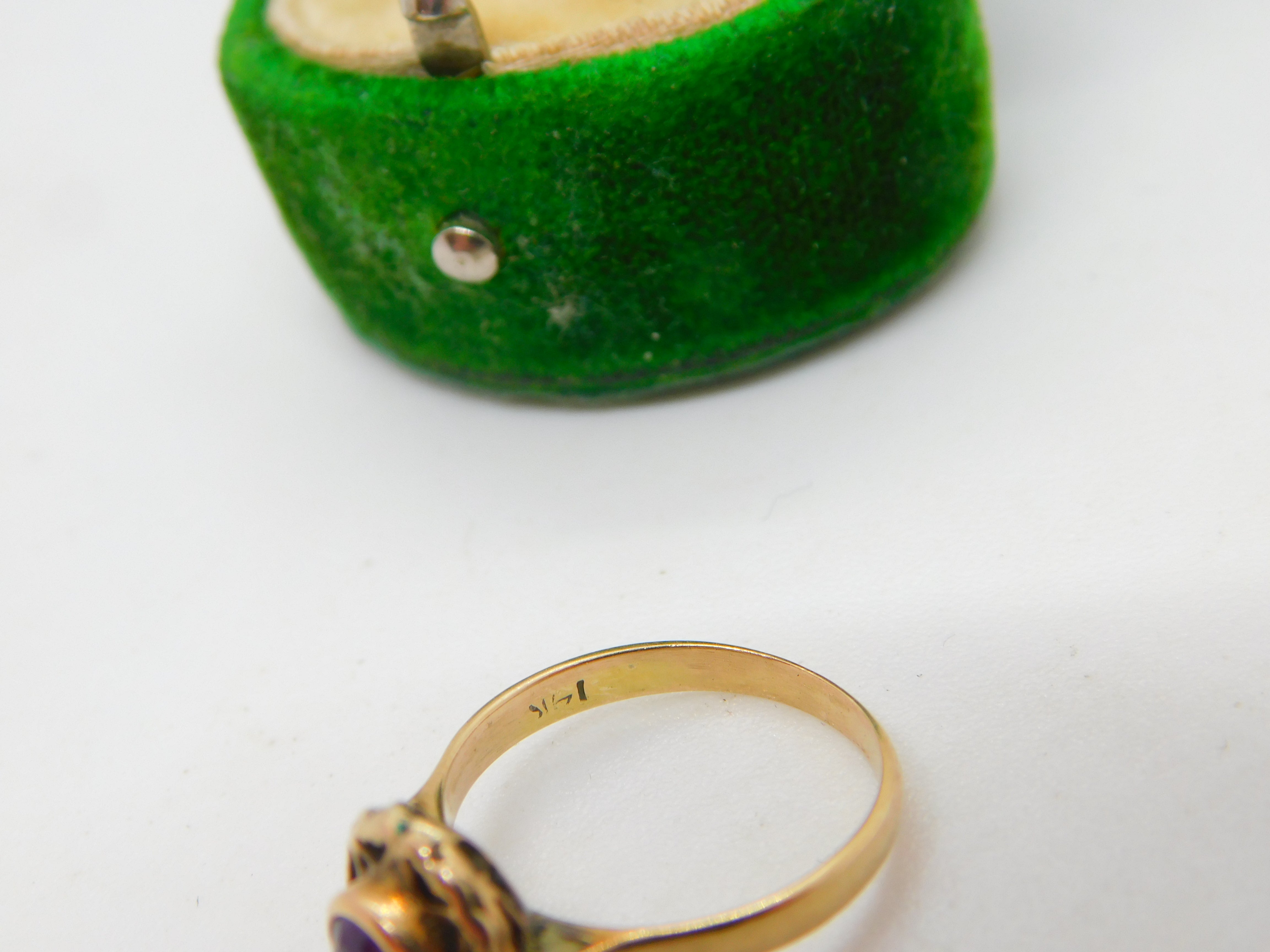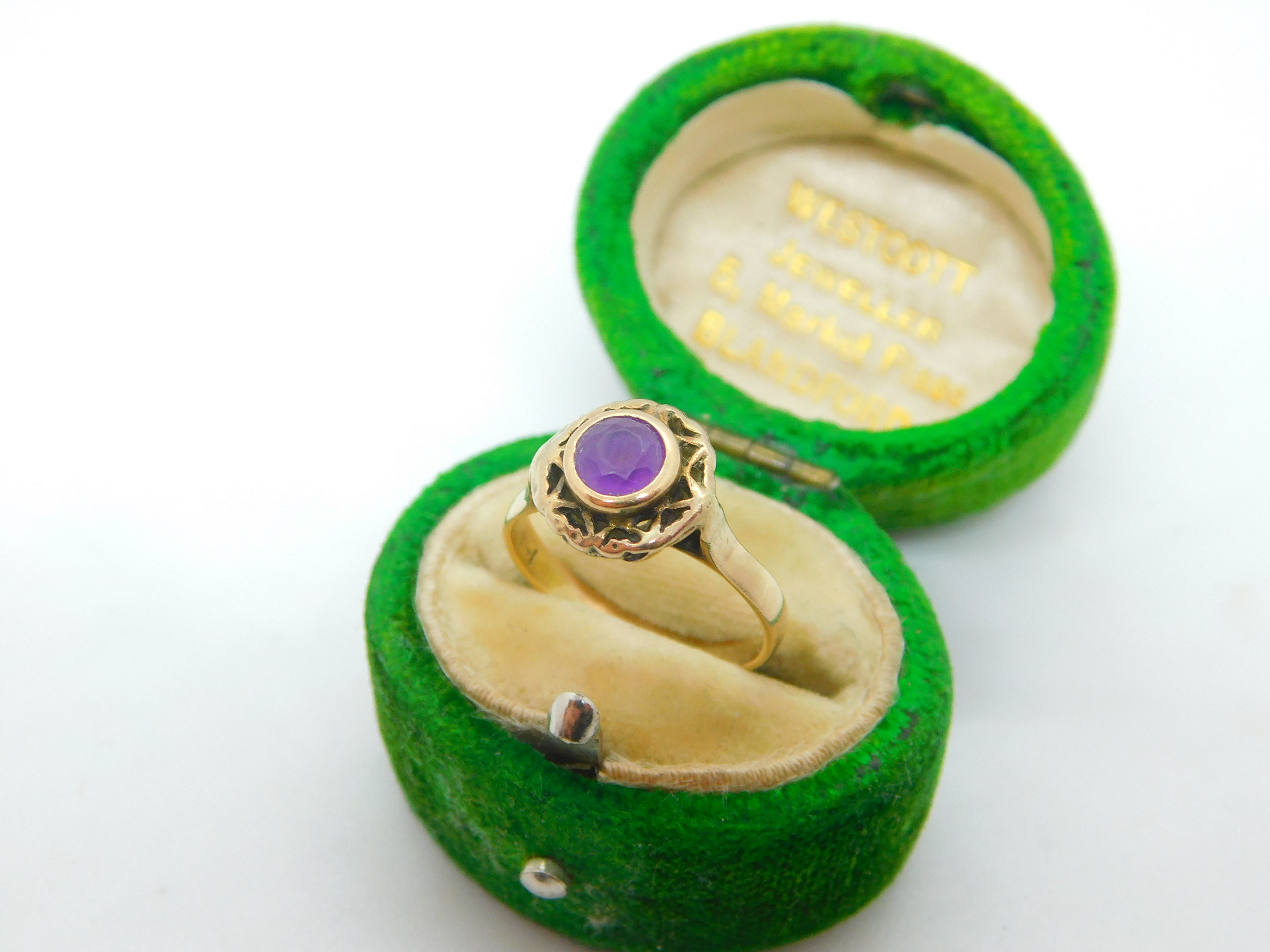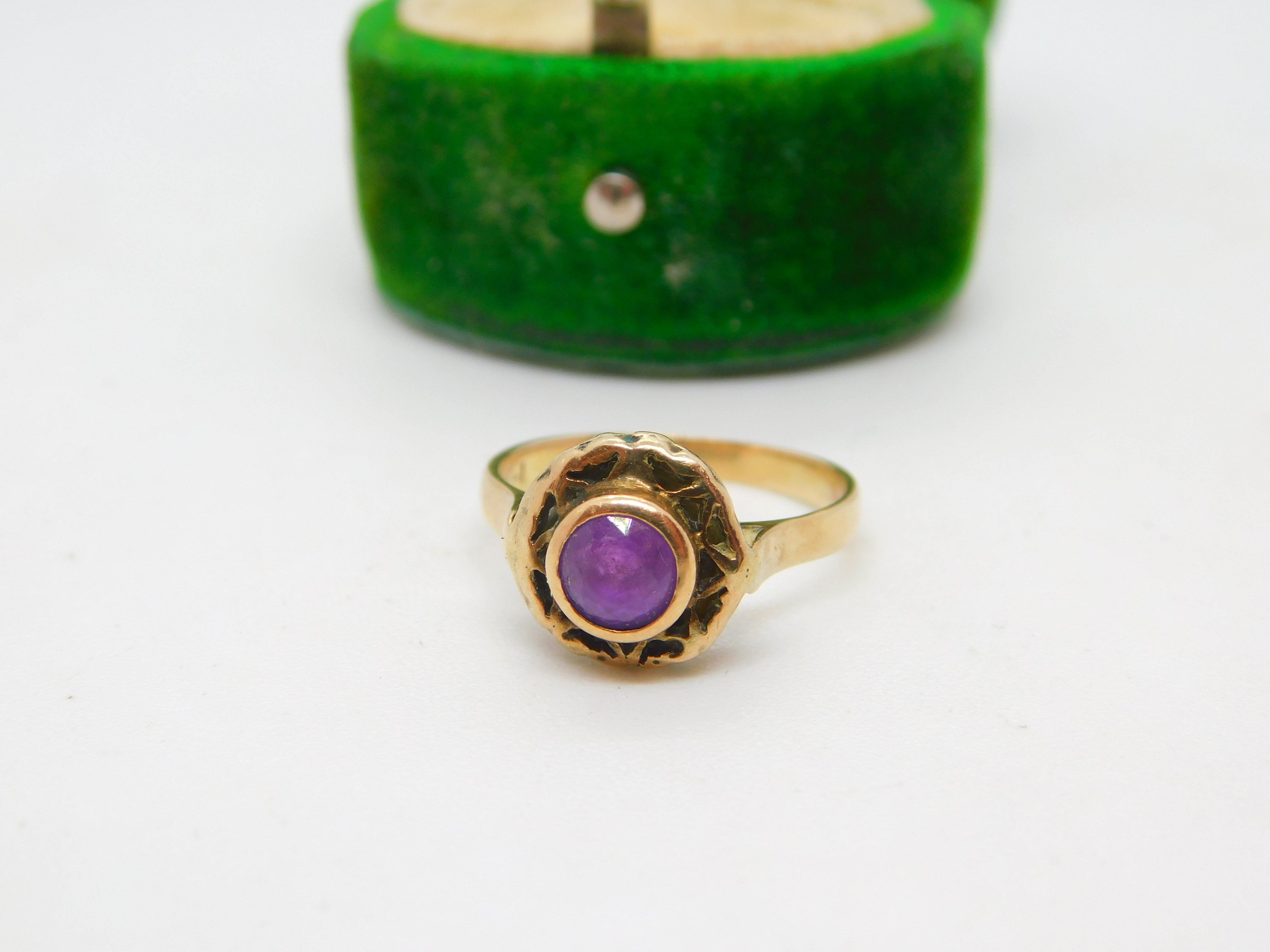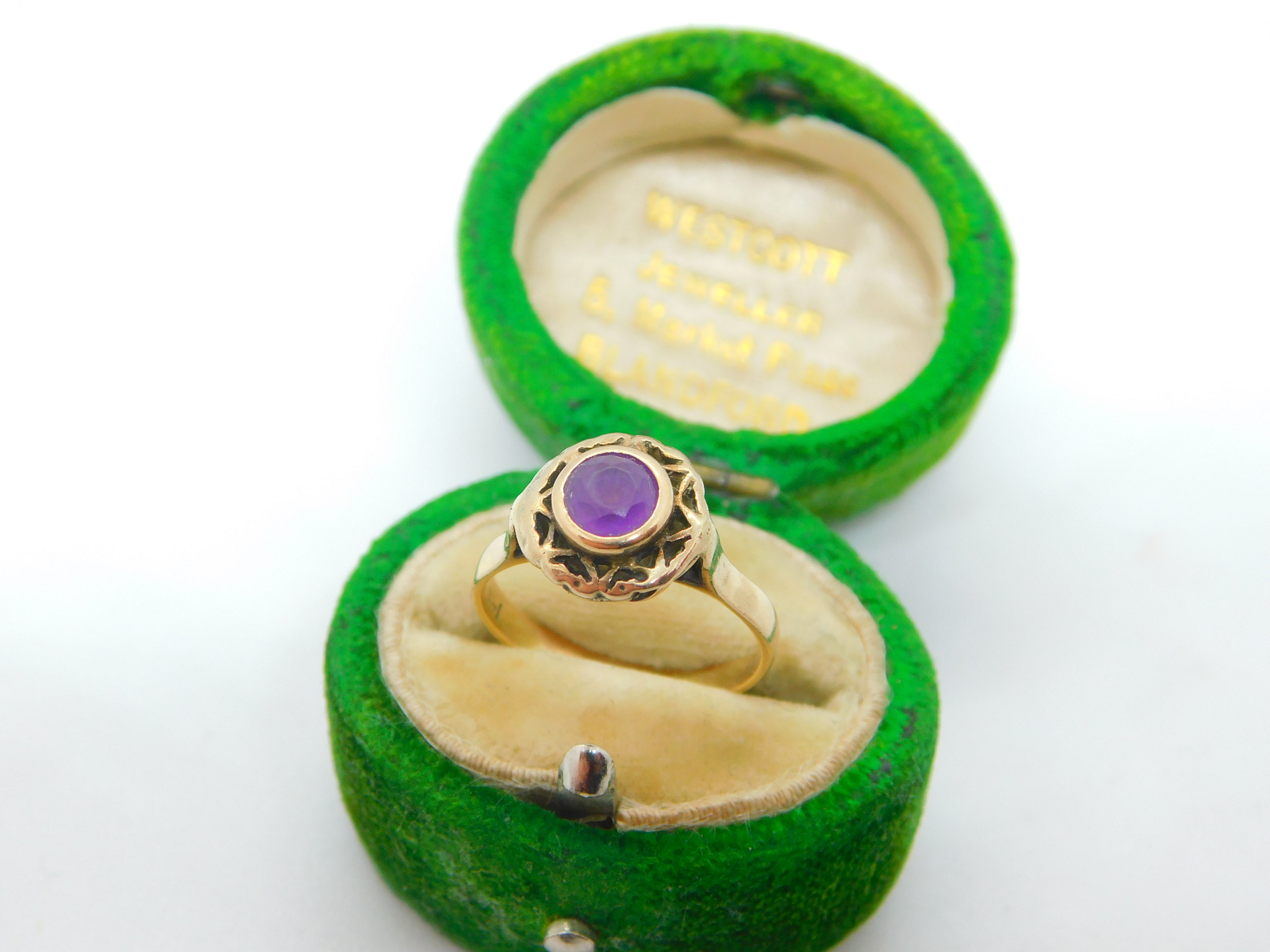 14ct Yellow Gold & Amethyst Set Floral Dress Ring Antique c1920 Art Deco