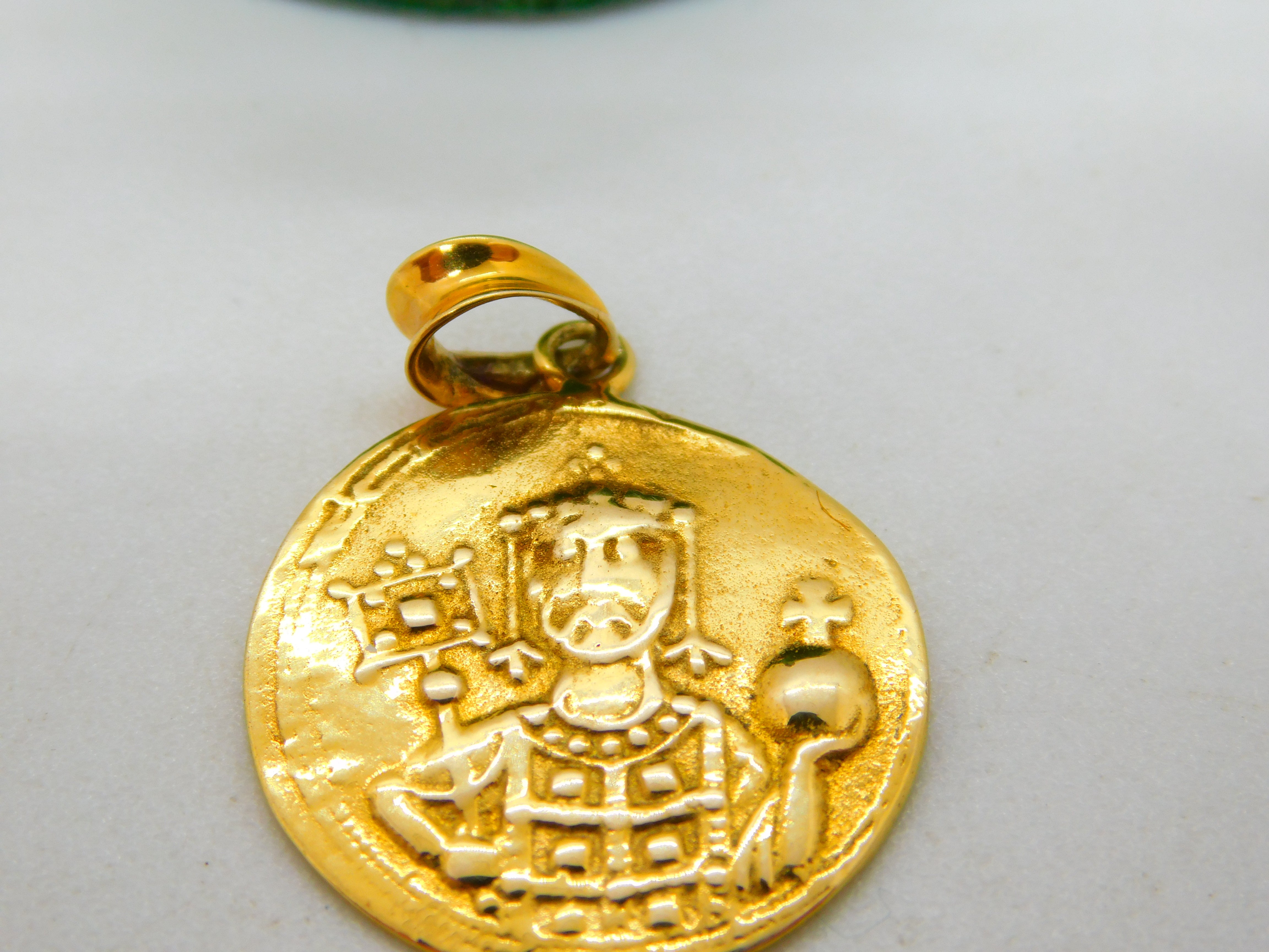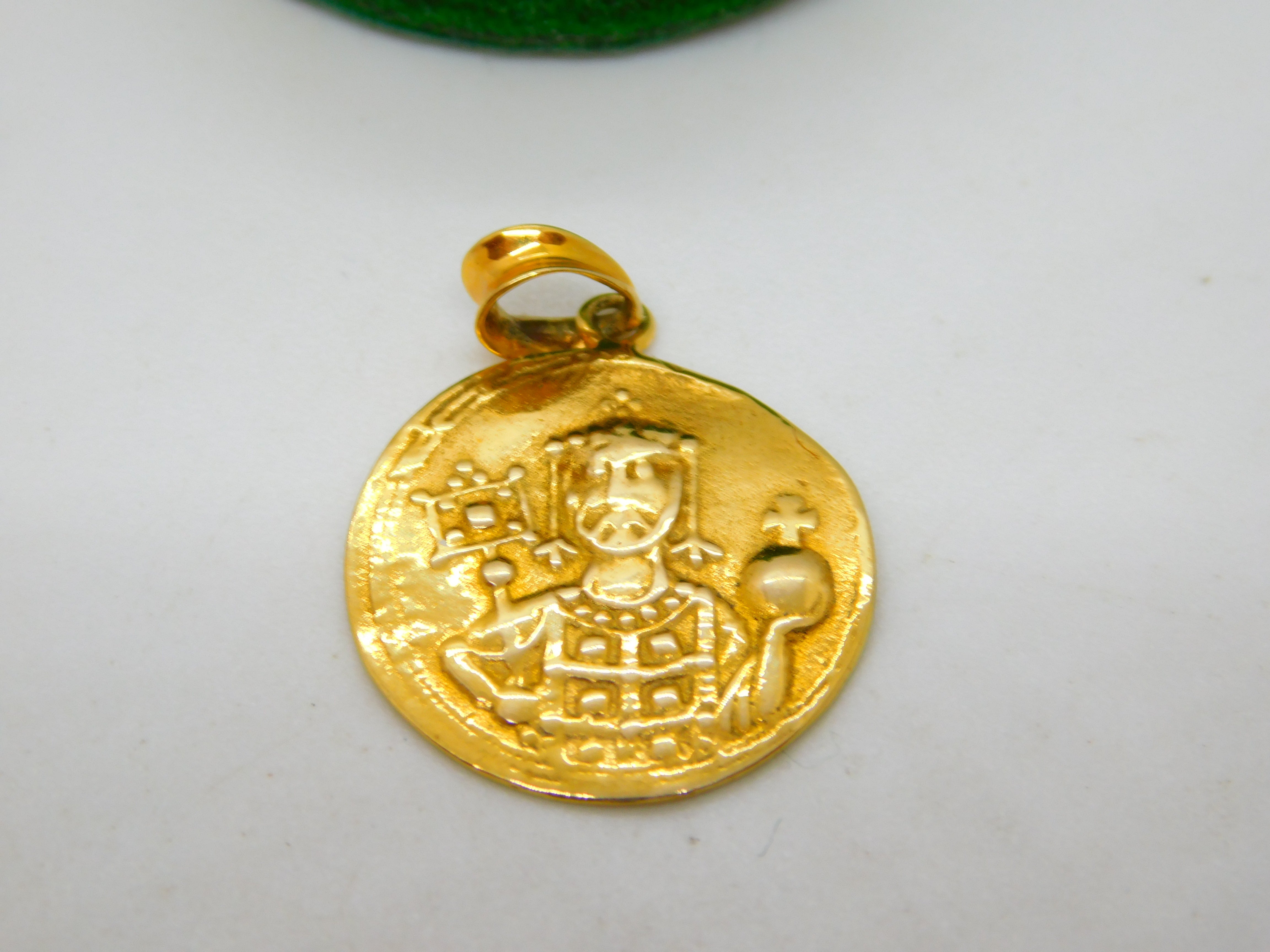 14ct Yellow Gold Ancient Byzantine Constantine Style Coin Pendant Vintage c1970