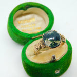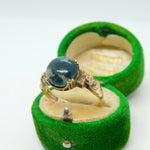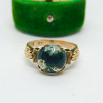 14ct Yellow Gold & Cabochon Moss Agate Floral Dress Ring Antique c1930 Art Deco