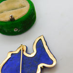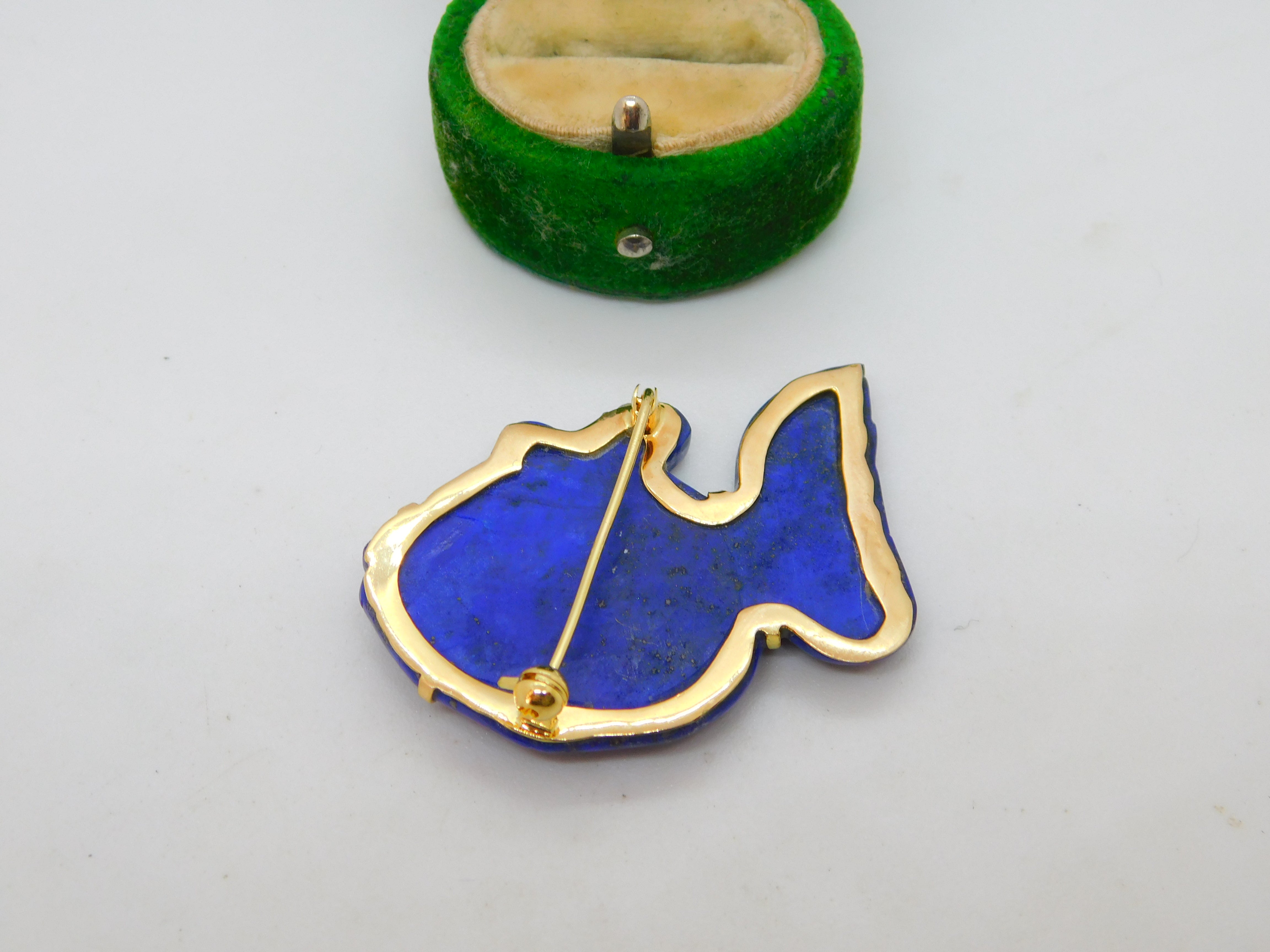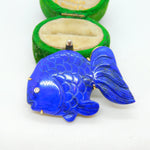 14ct Yellow Gold, Carved Lapis Lazuli & Diamond Fish Brooch Vintage c1980