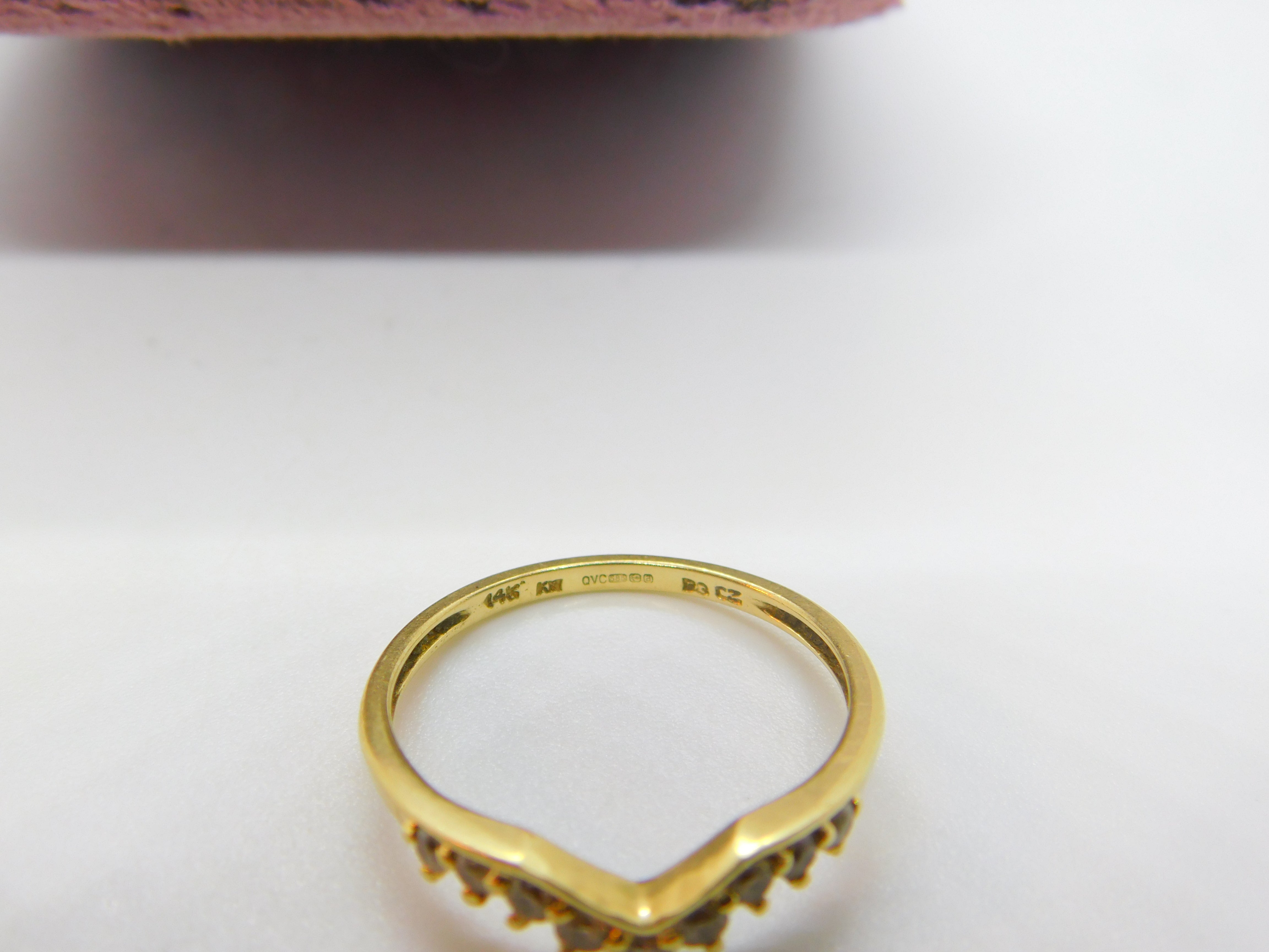 14ct Yellow Gold & Diamond Paste Wishbone Band Ring 2002 London Vintage