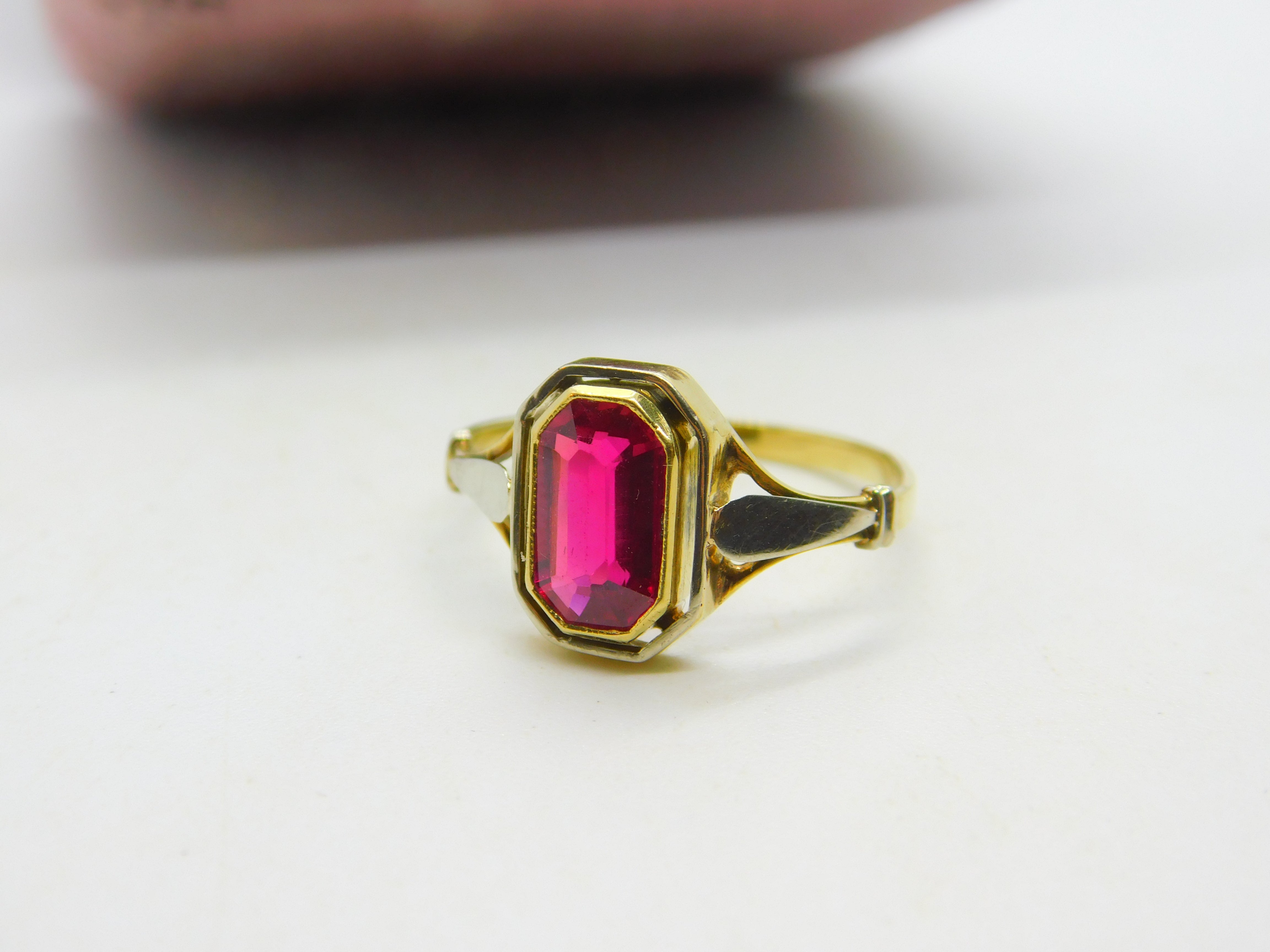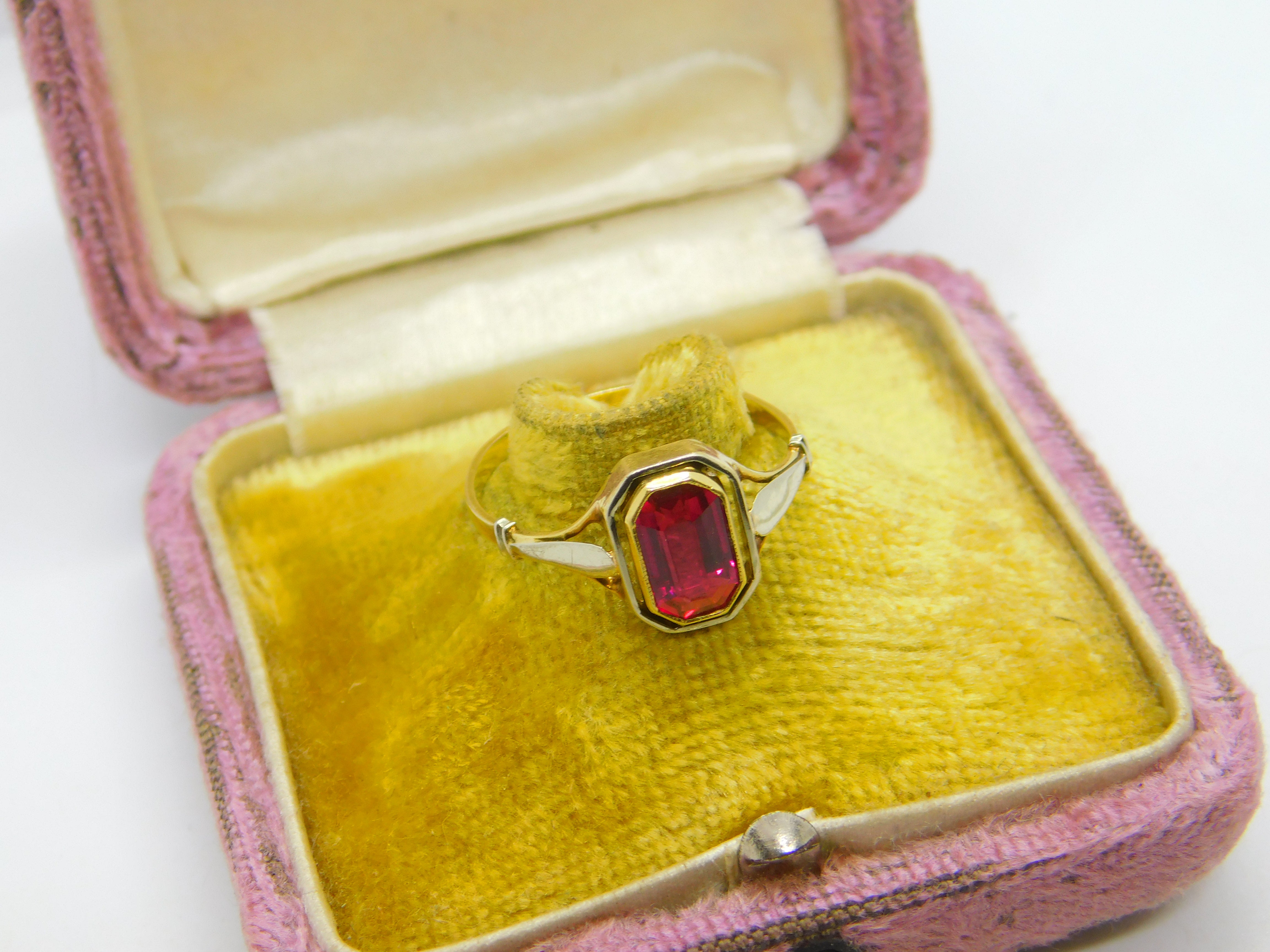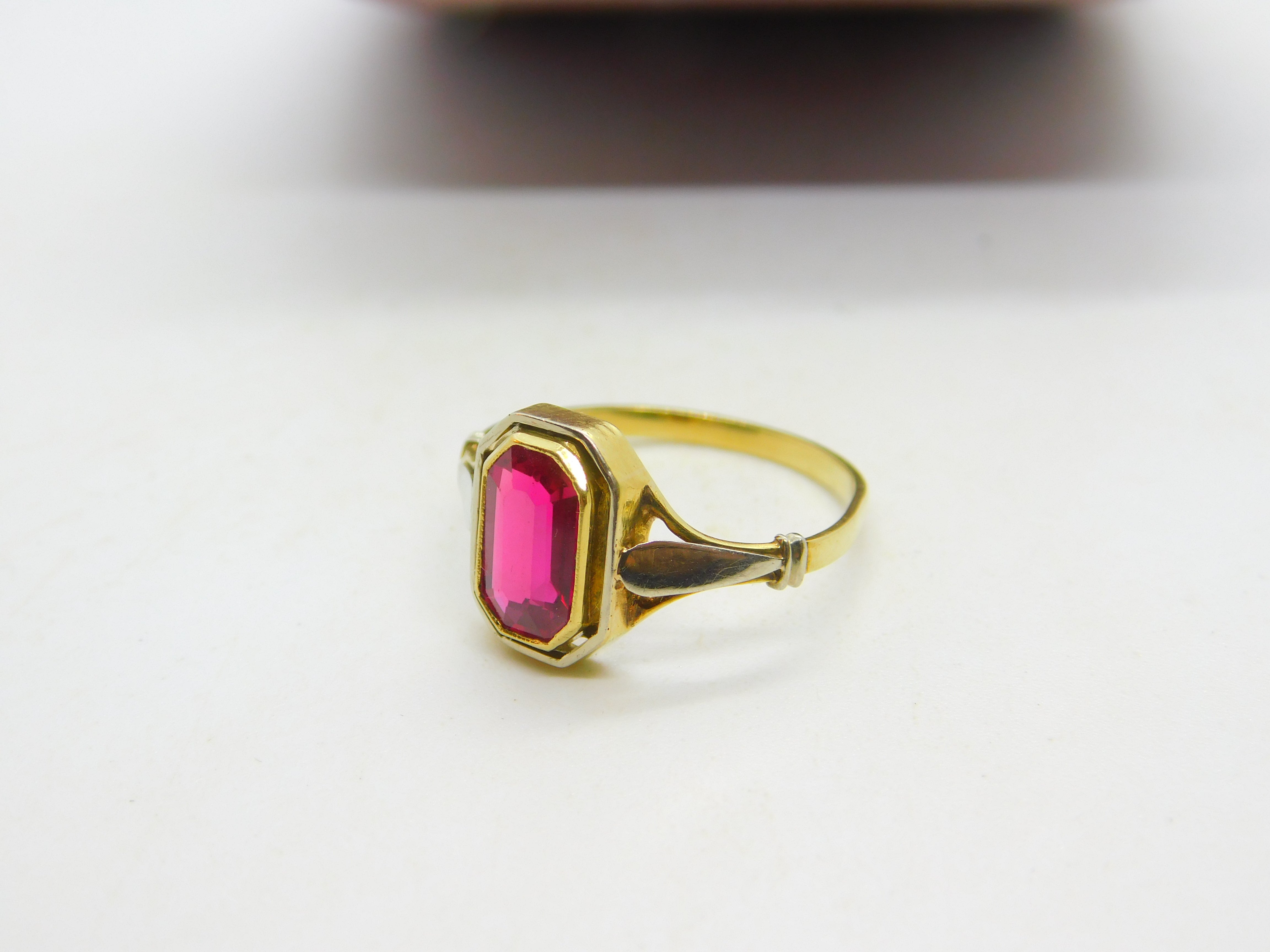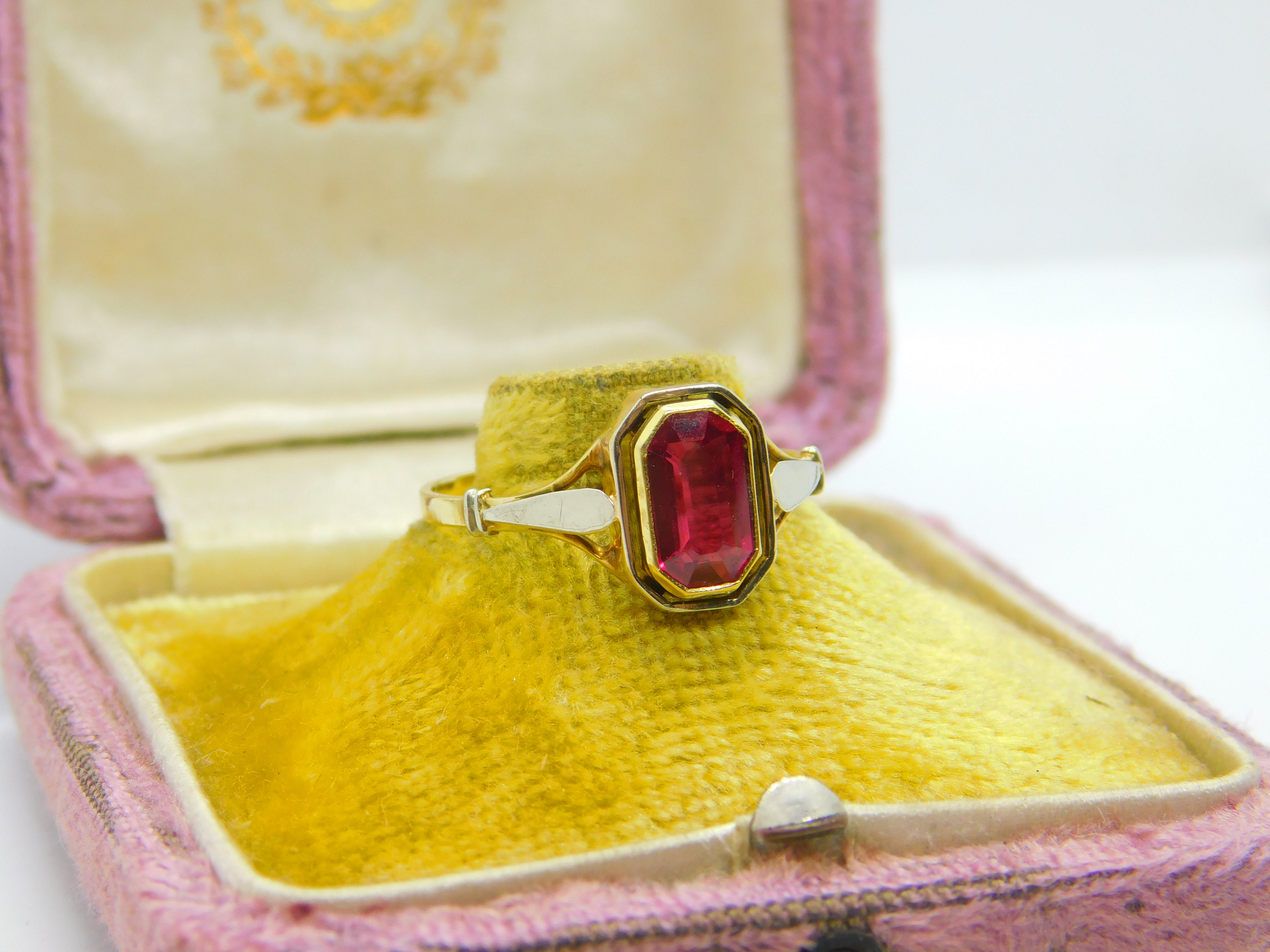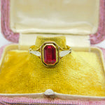 14ct Yellow Gold & Emerald Cut 1.75ct Ruby Set Dress Ring Antique c1930 Art Deco