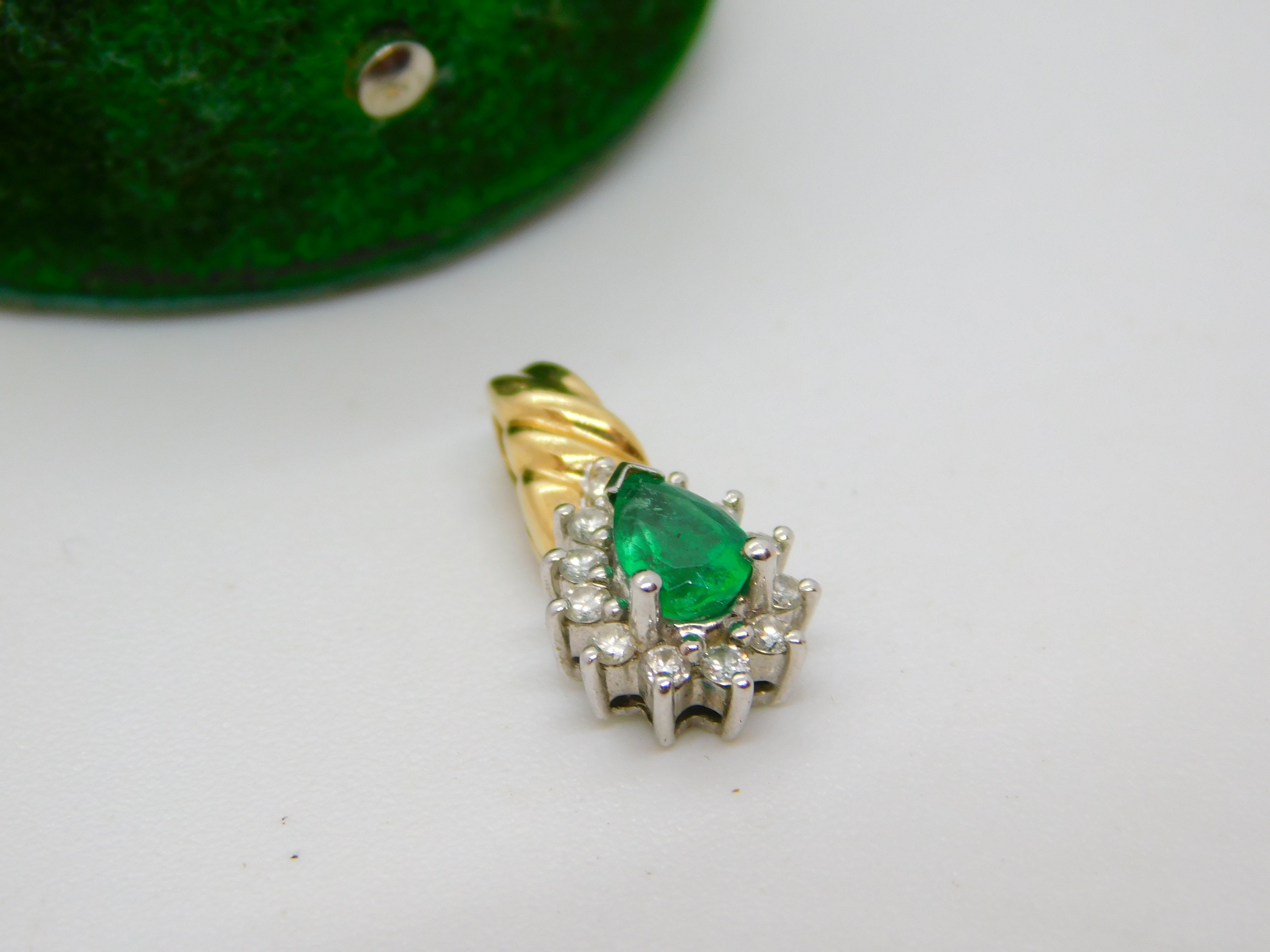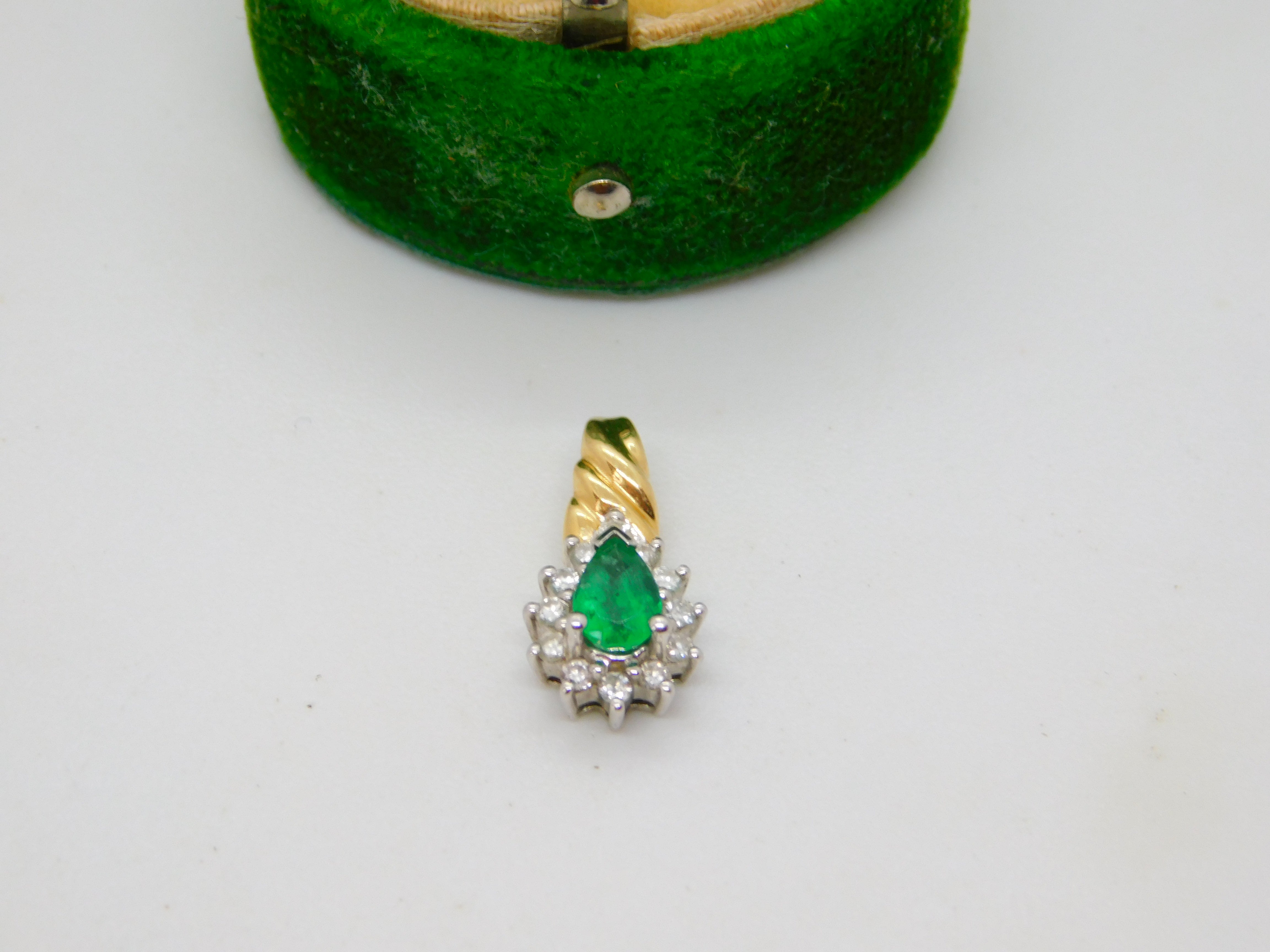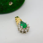 14ct Yellow Gold, Emerald & Diamond Pear Drop Pendant Vintage c1990