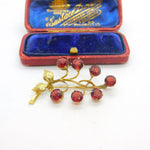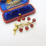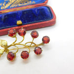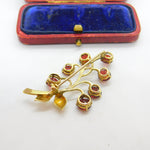 14ct Yellow Gold & Garnet Set Floral Sprig Brooch Antique c1930 Art Deco