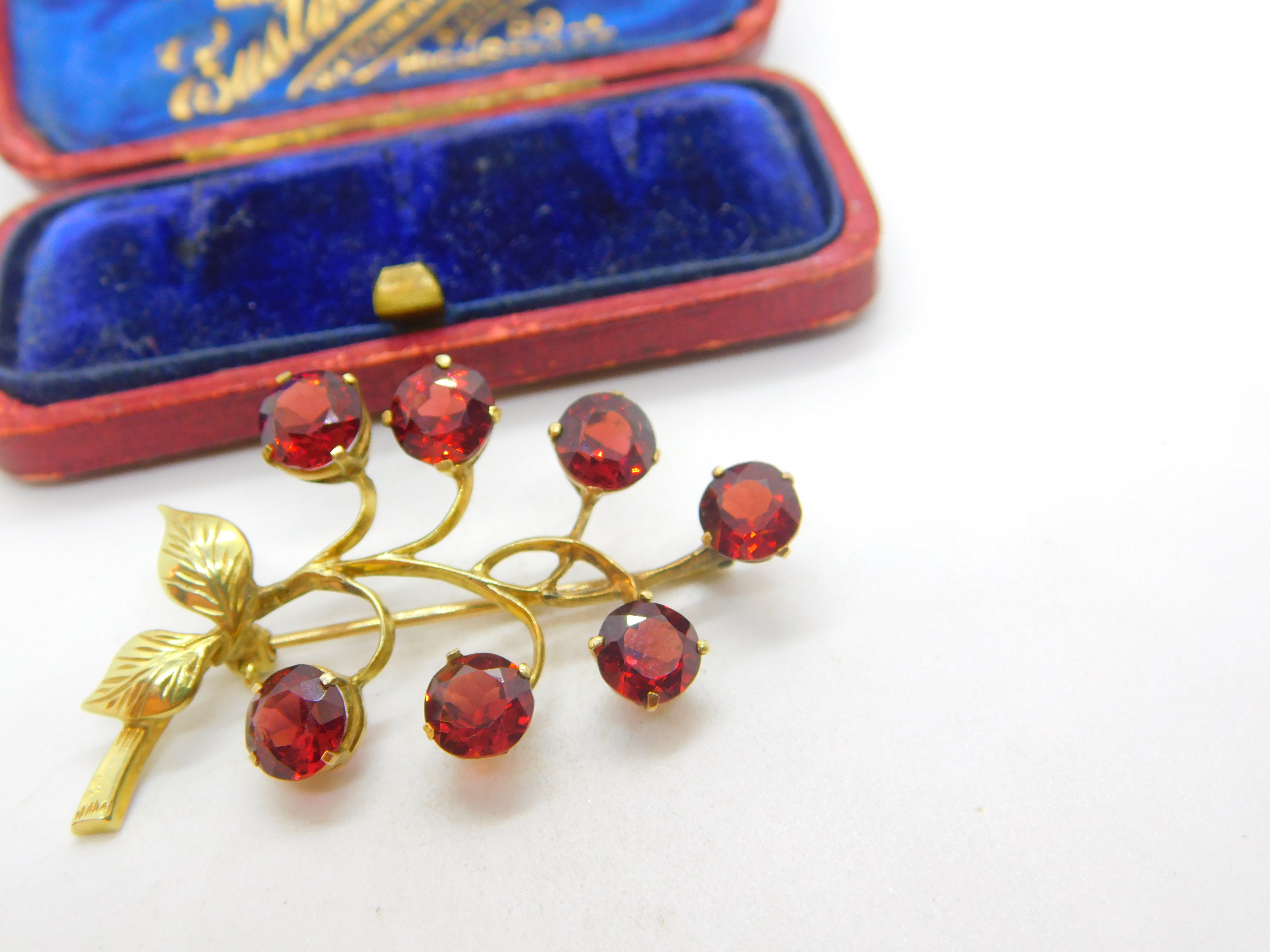 Details: A fantastic and wonderfully designed antique art deco 14ct yellow gold garnet set floral sprig brooch pin c1930 - the gold has been XRF tested. This is a wonderful item that would make a perfect gift or addition to any collection. The BOX pictured is for PRESENTATION ONLY and is NOT included in the listings but used to frame the pictures unless specifically stated otherwise.