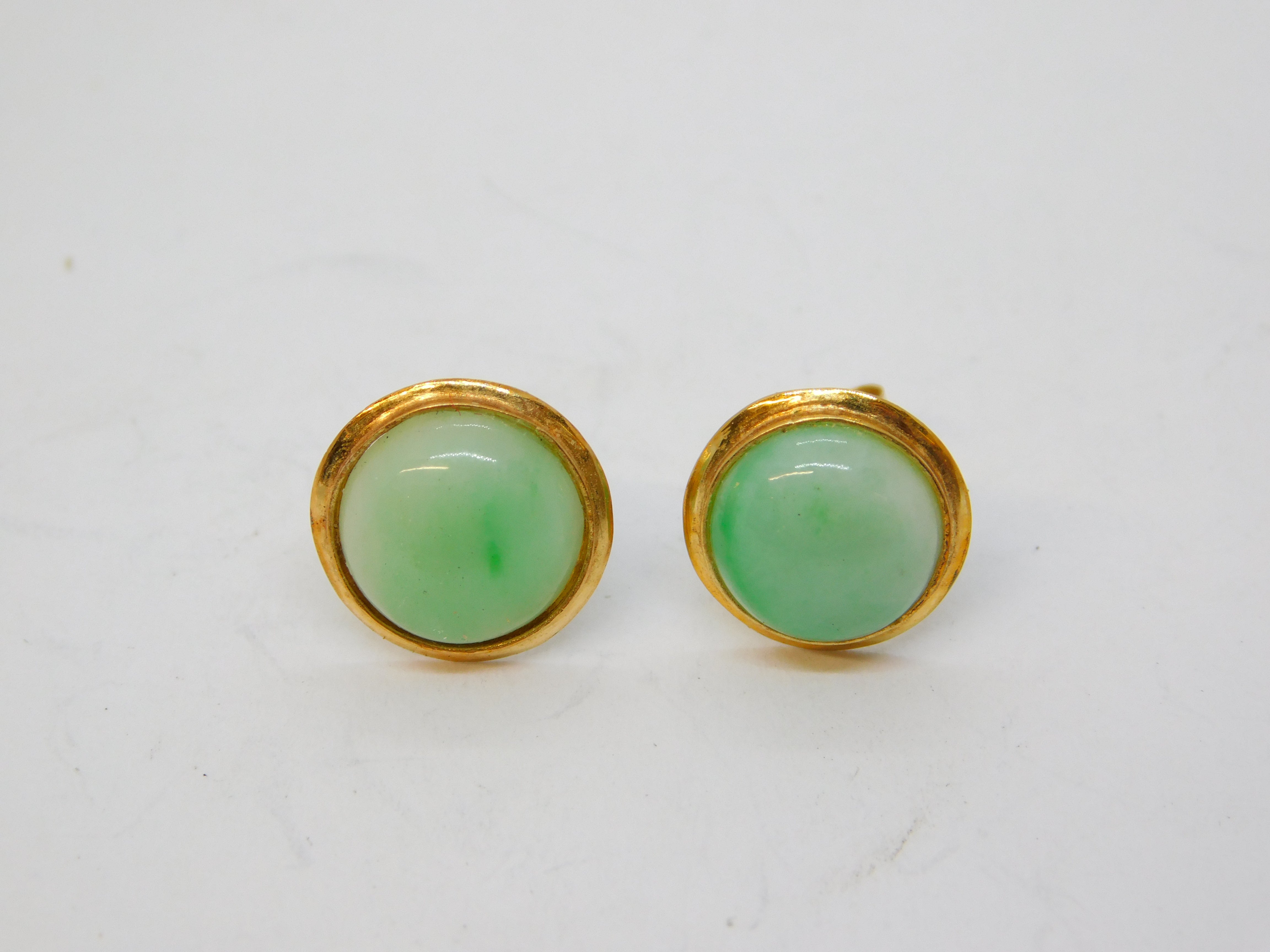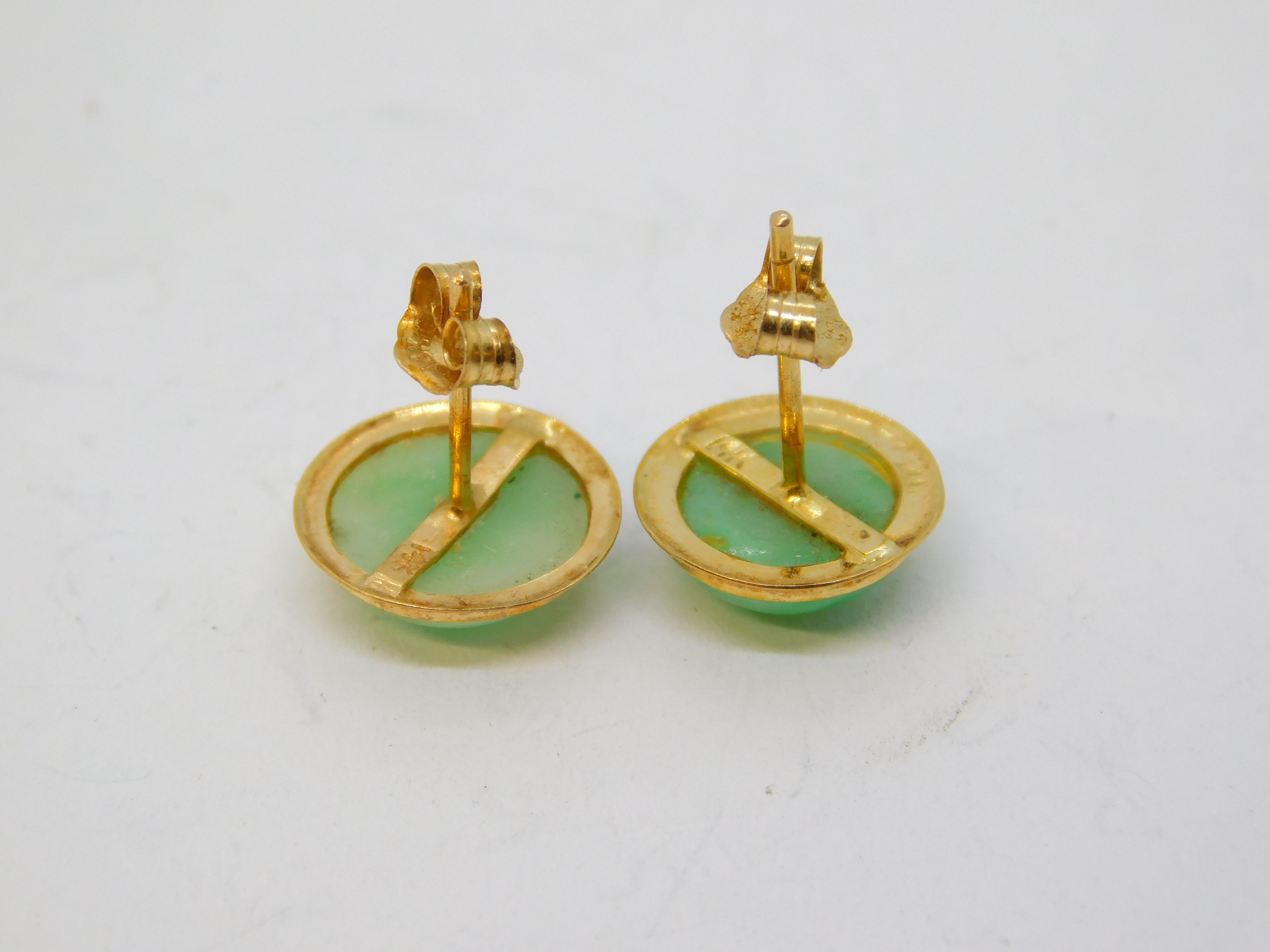 14ct Yellow Gold & Green Jade Stud Earrings Vintage c1970