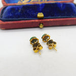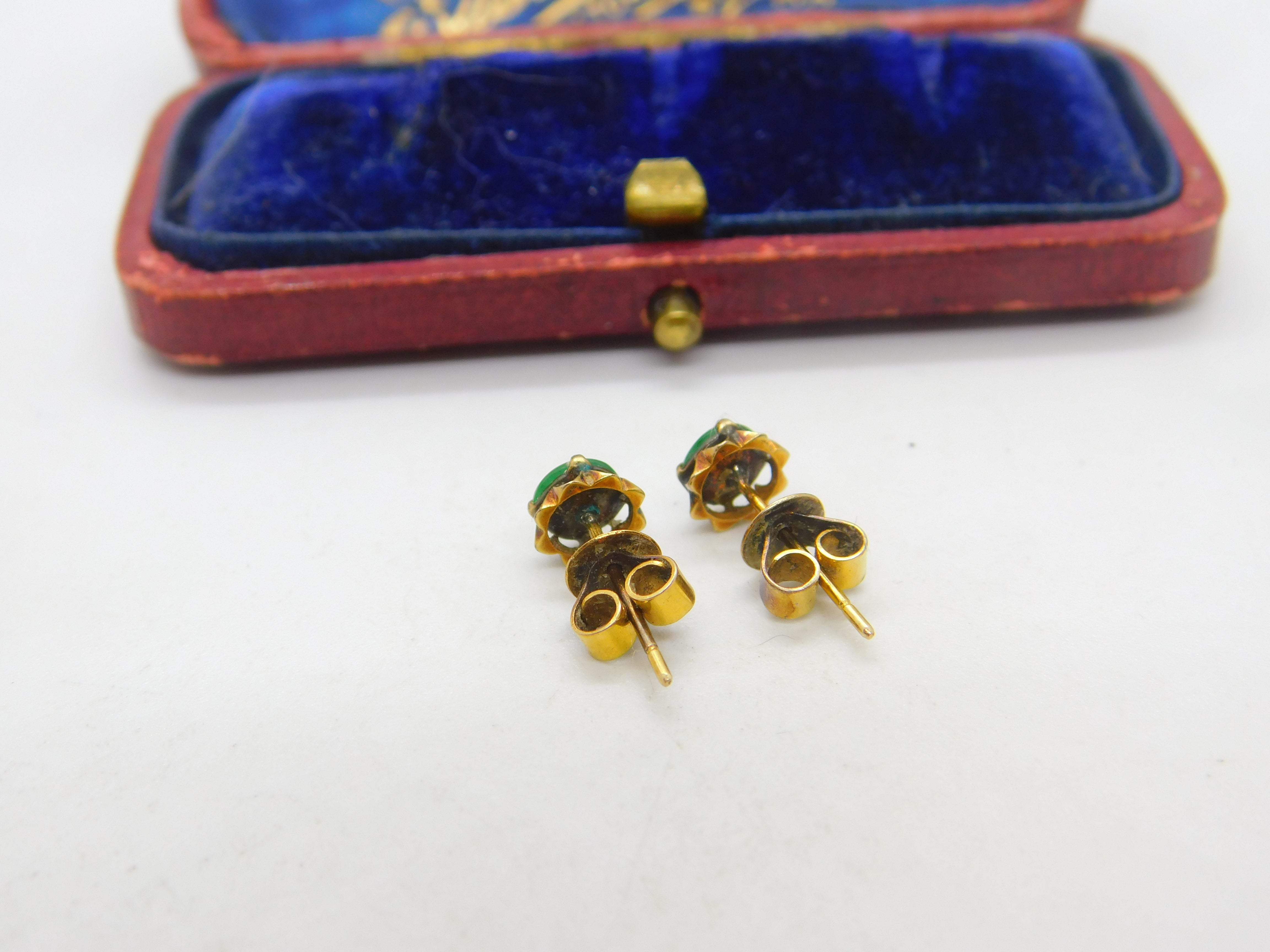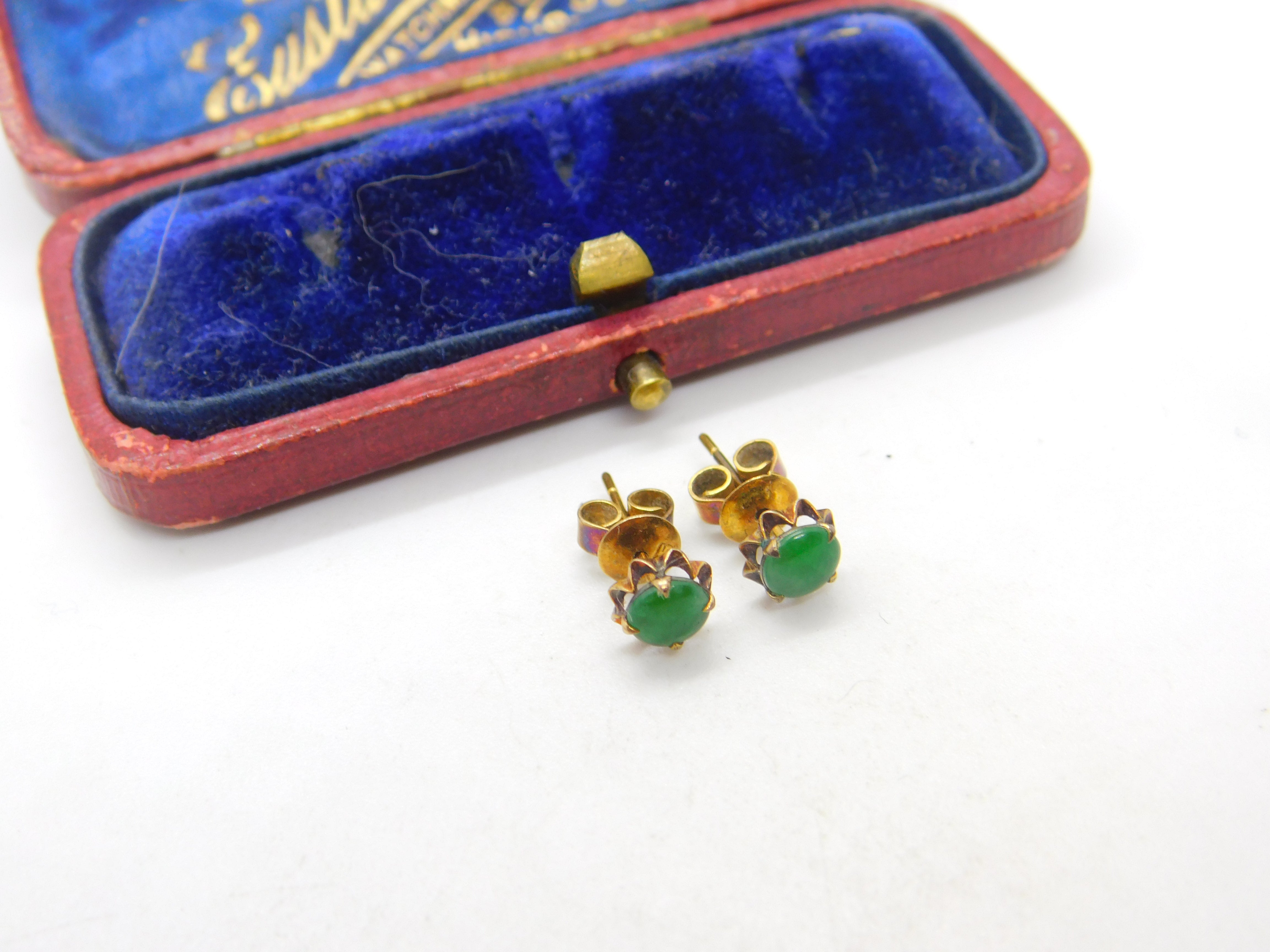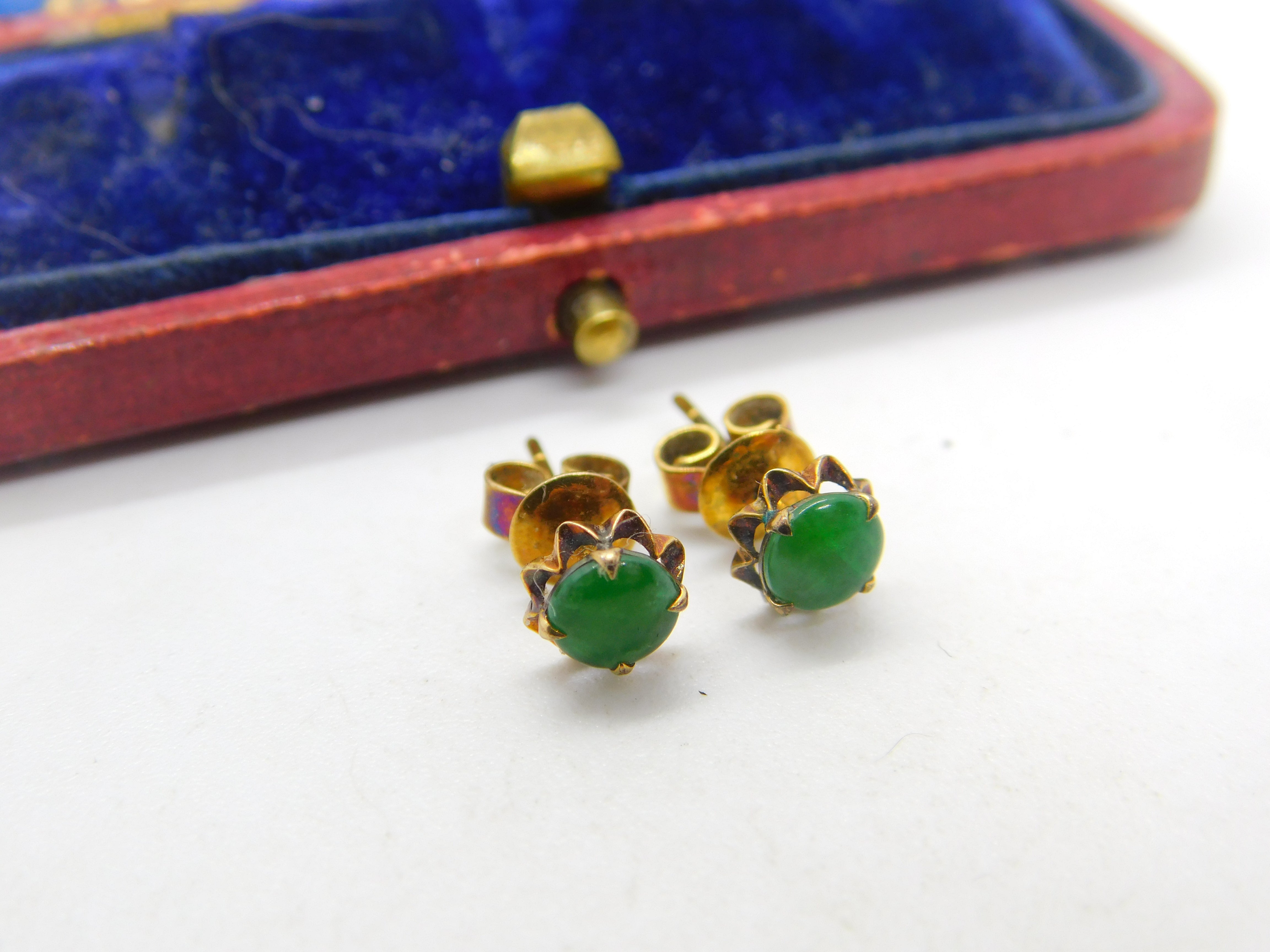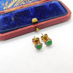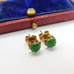 14ct Yellow Gold & Jade Set Stud Earrings Vintage c1960