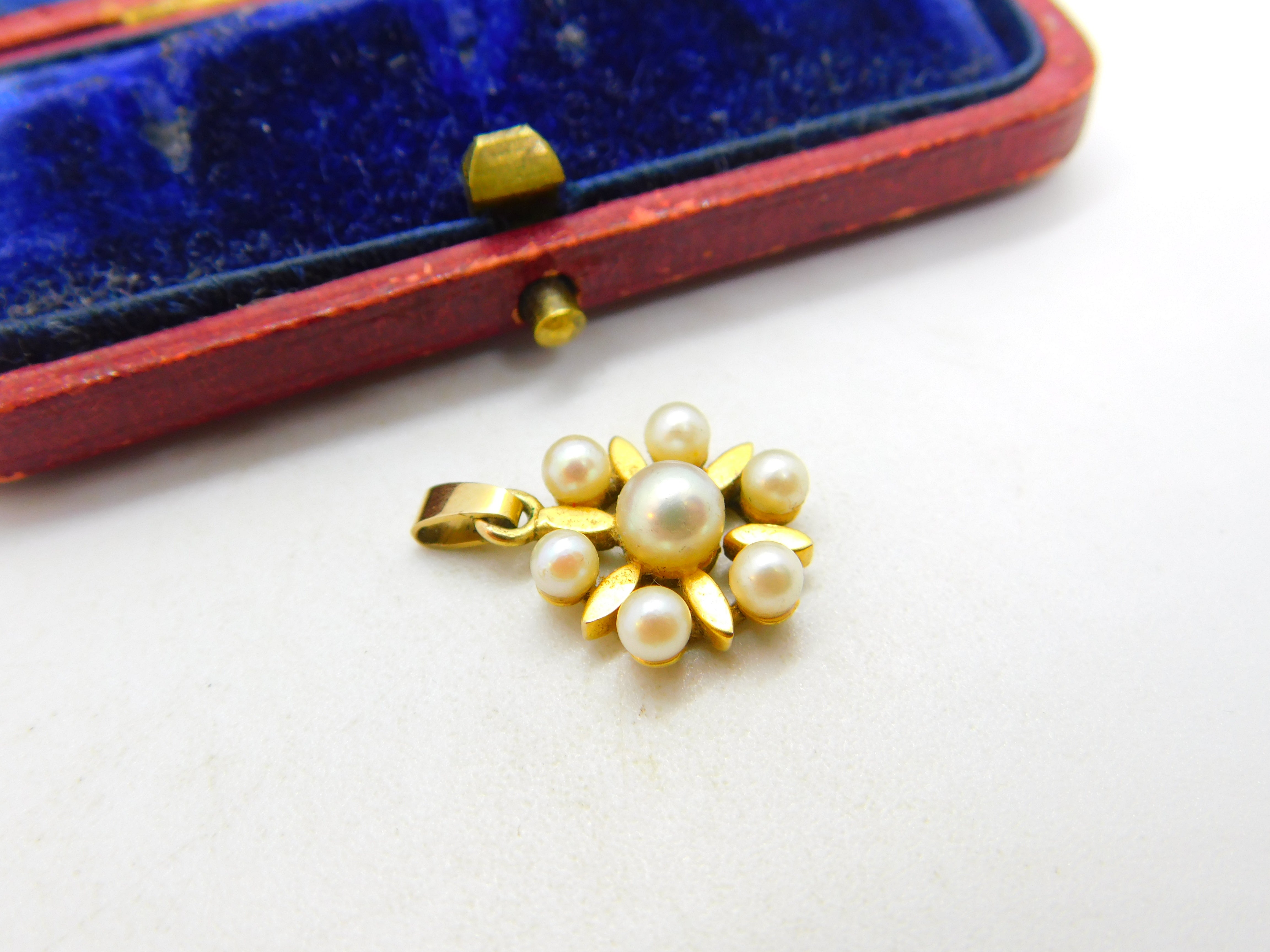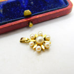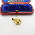 14ct Yellow Gold & Pearl Set Daisy Floral Pendant Antique c1920 Art Deco