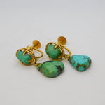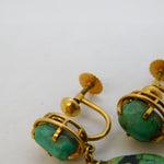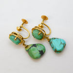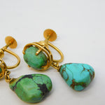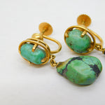 14ct Yellow Gold Raw Turquoise Screw-Back Earrings Antique c1920 Art Deco