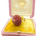 14ct Yellow Gold Ruby Set Pagoda Floral Cluster Ring Antique c1930 Art Deco