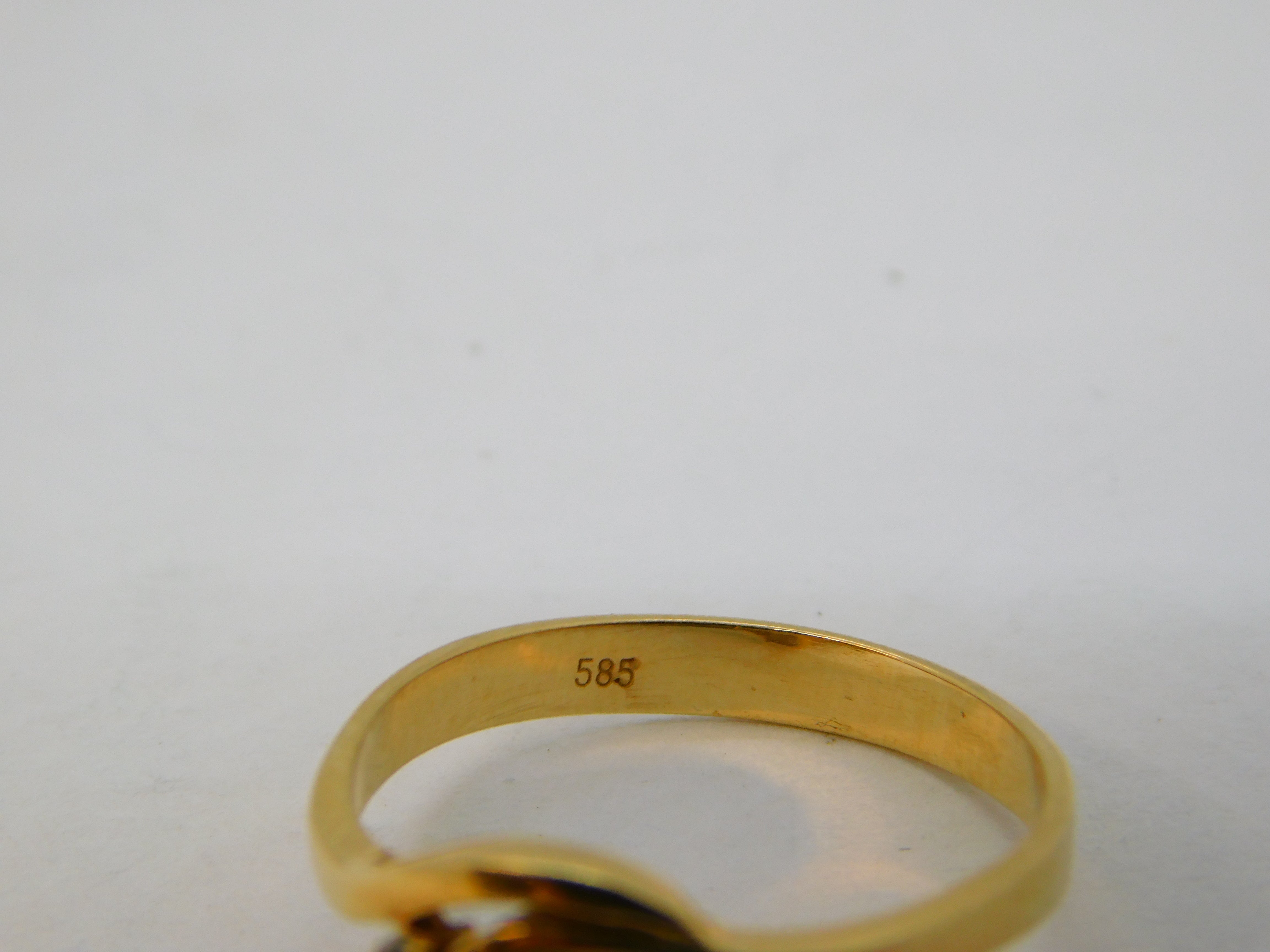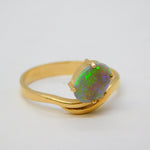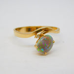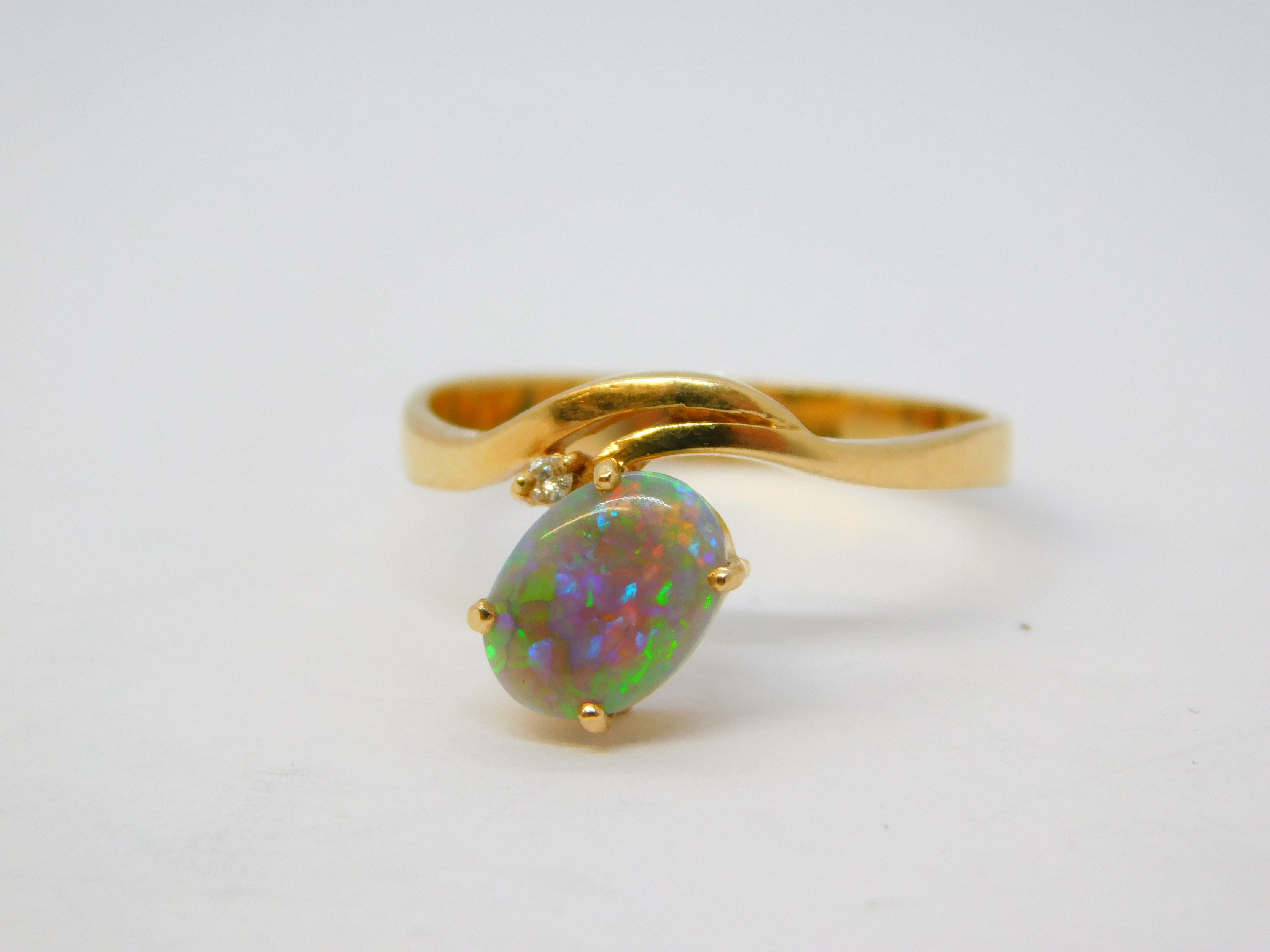 14ct Yellow Gold, White Opal & Diamond Crossover Ring Vintage c1970